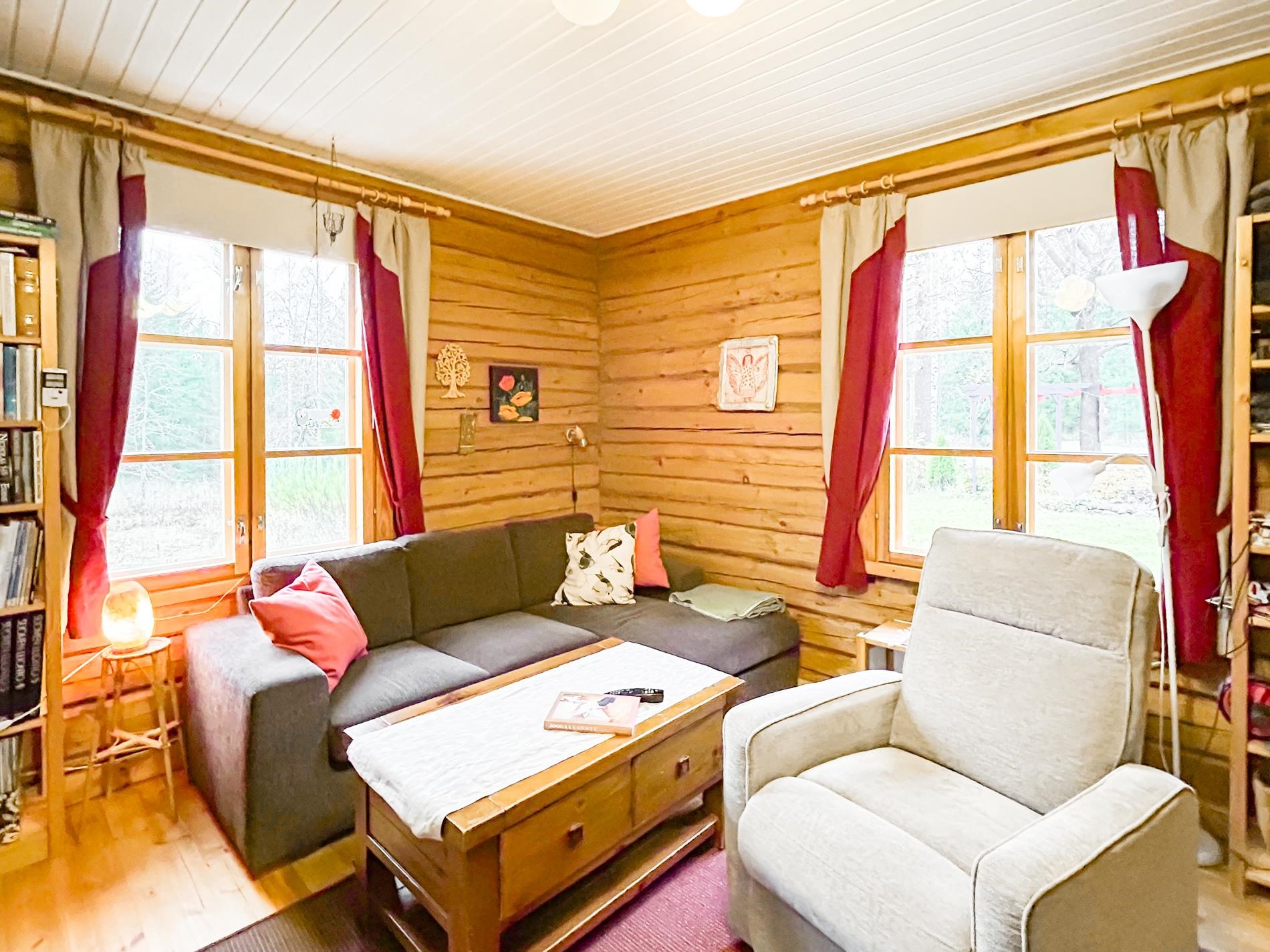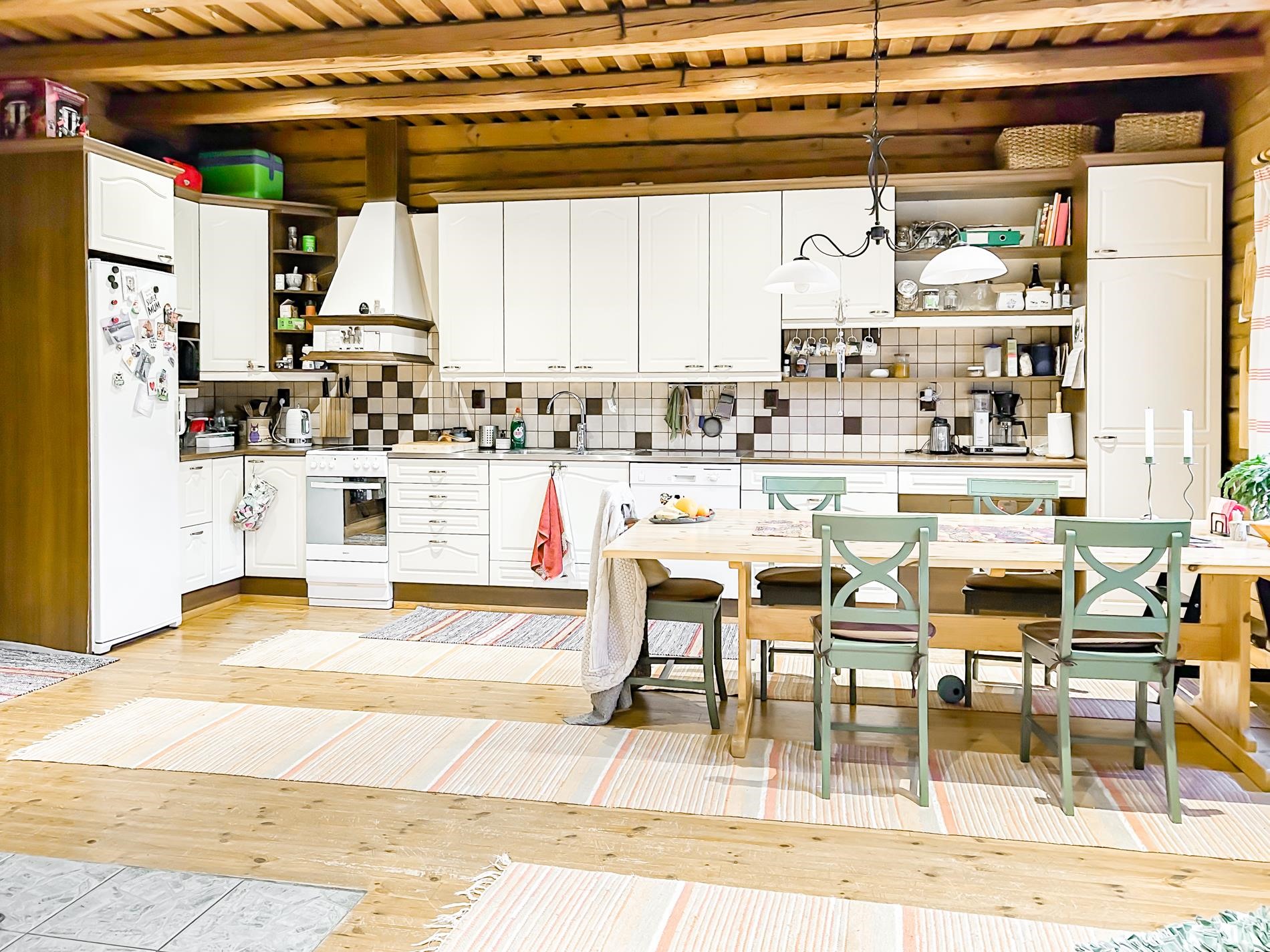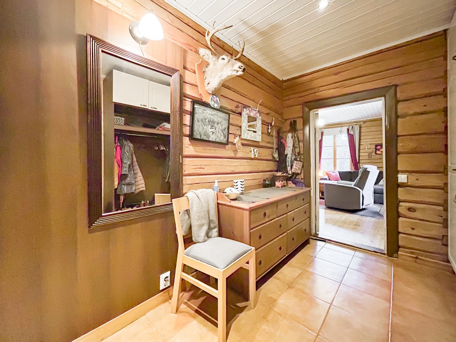 - Keittiö: puulattia, hirsiseinät. Olohuone: puulattia, hirsiseinät. Makuuhuone 1: puulattia, tapetoidut seinät. Makuuhuone 2: puulattia, tapetoidut seinät. Makuuhuone 3: puulattia, tapetoidut seinät. Kodinhoitohuone: laattalattia, maalatut seinät. Sauna: laattalattia paneloidut seinät. Kylpyhuone: laatoitettu. työhuone: puulattialattia, hirsiseinät. takkahuone: laattalattia, paneloidut seinät. aula: puulattia, tapetoidut seinät.