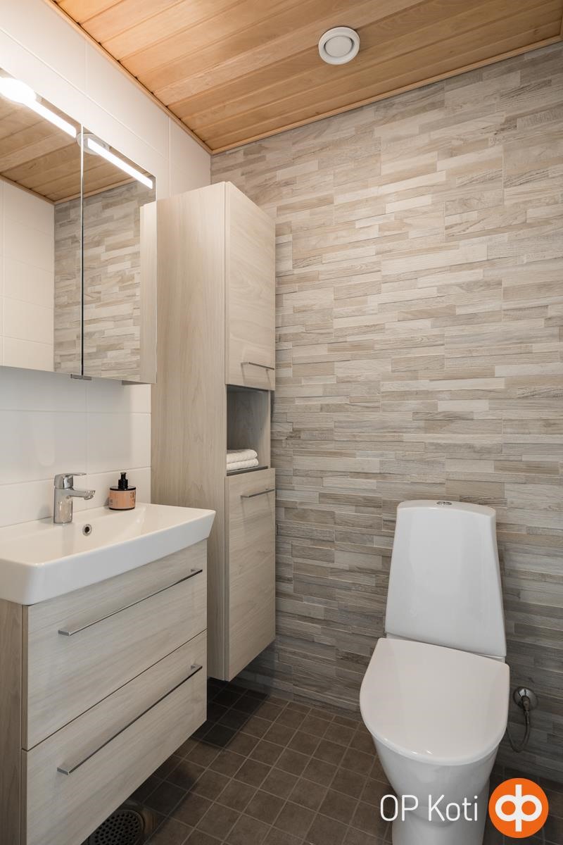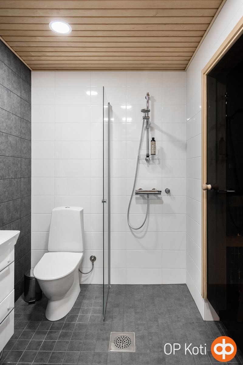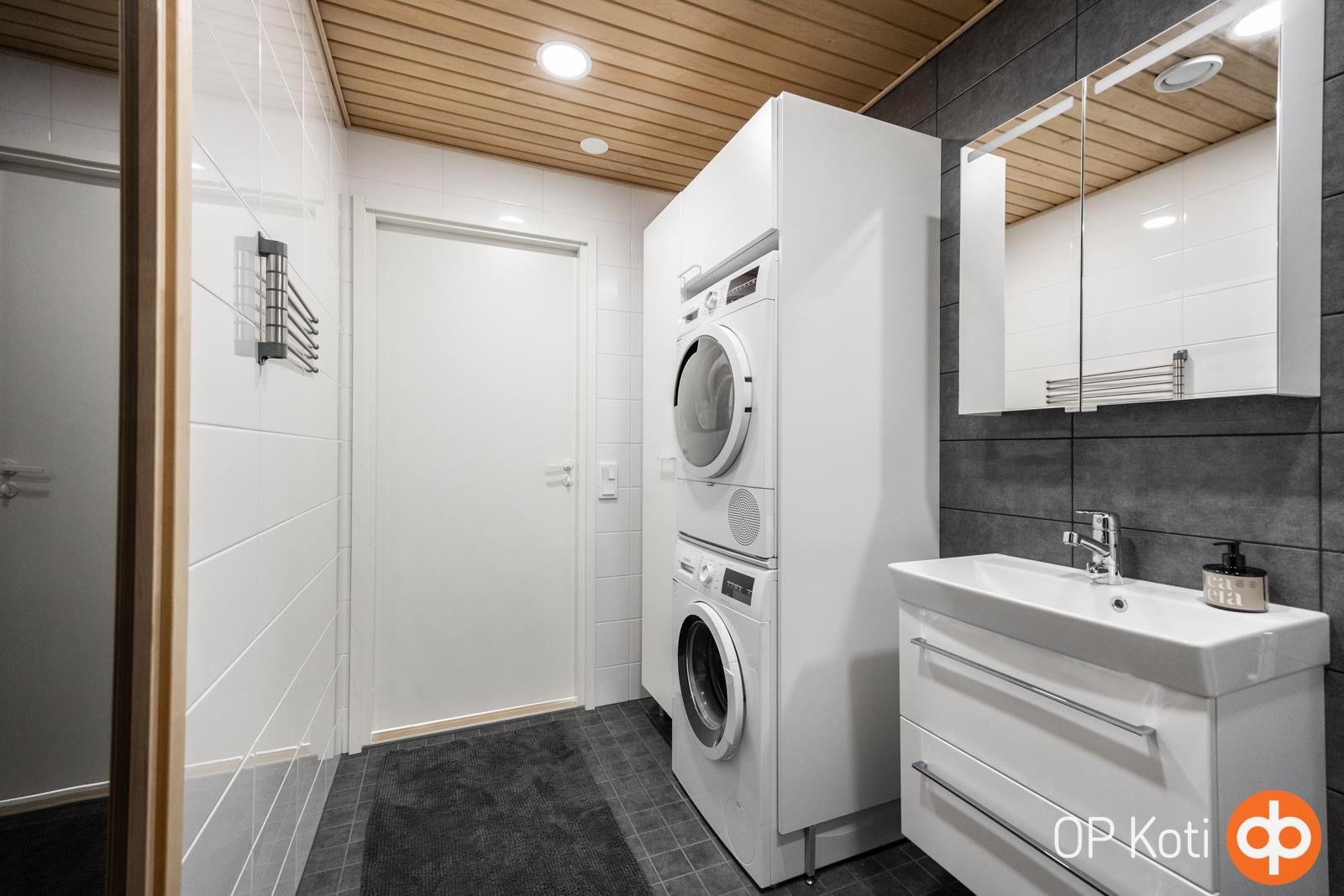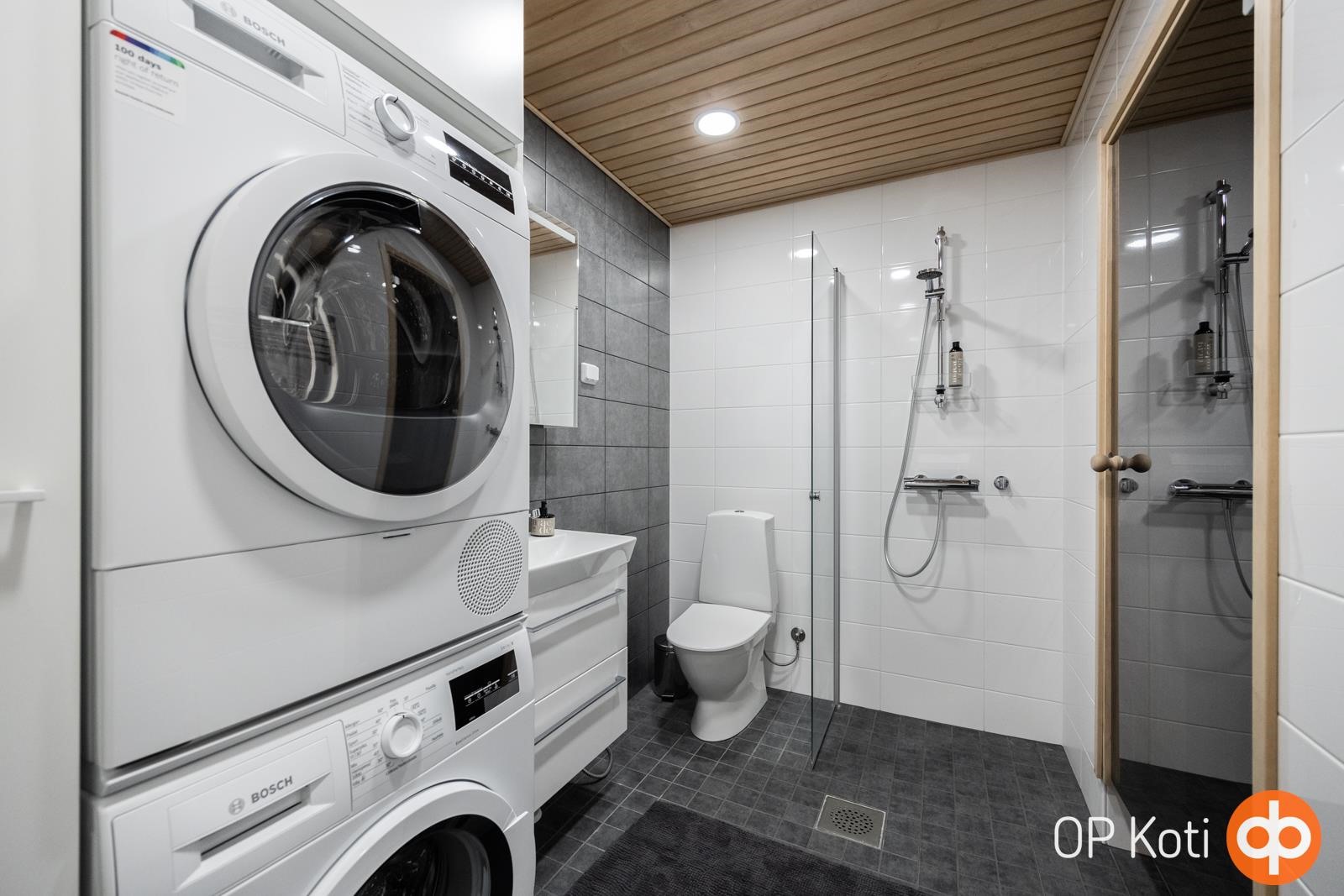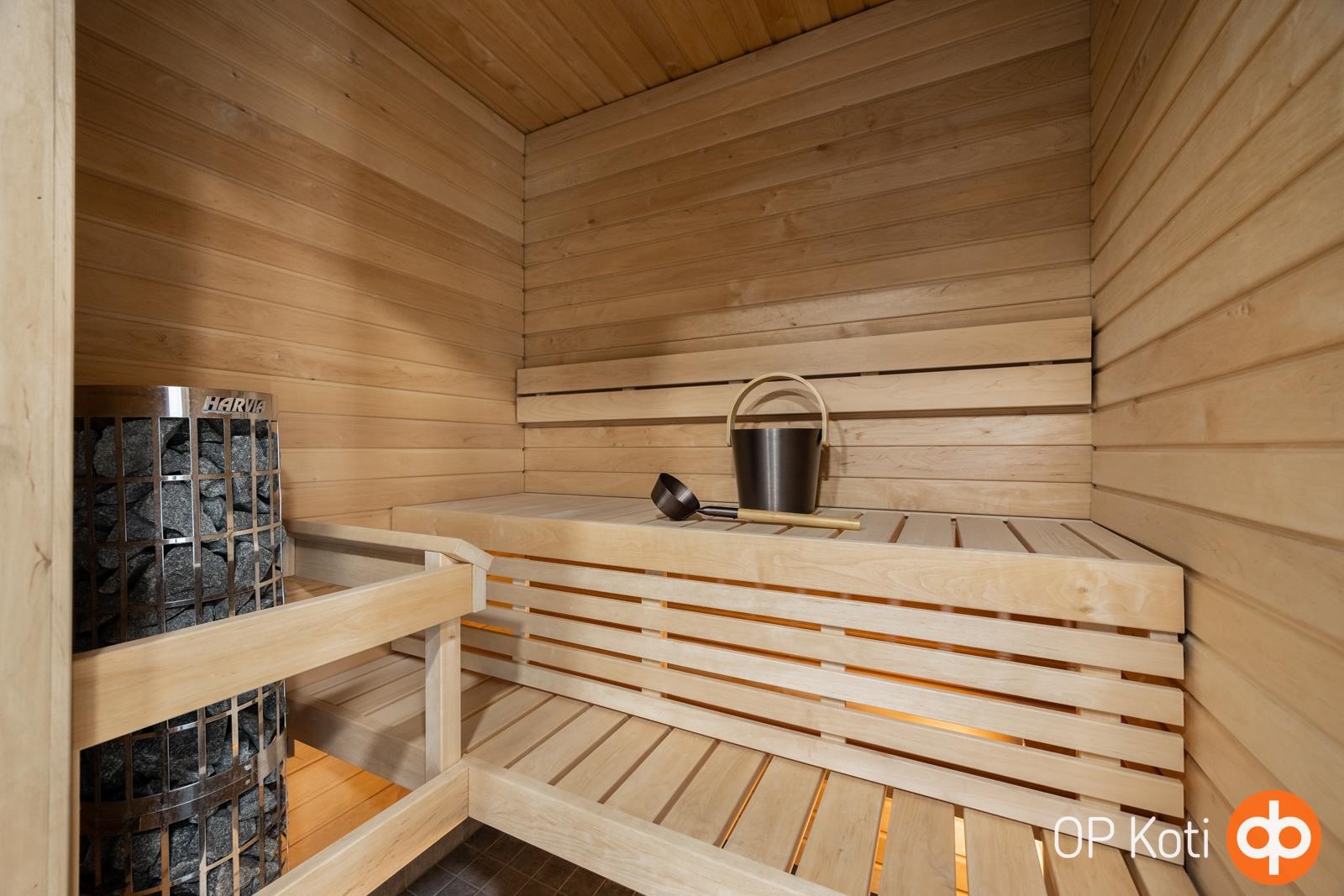 - Sauna, sähkökiuas, kylpyhuone, erillinen wc, suihku, peilikaappi, kaapit, allaskaappi, pesukoneliitäntä, lattialämmitys, kiinteät valaisimet.