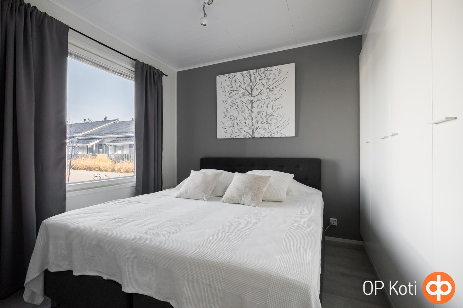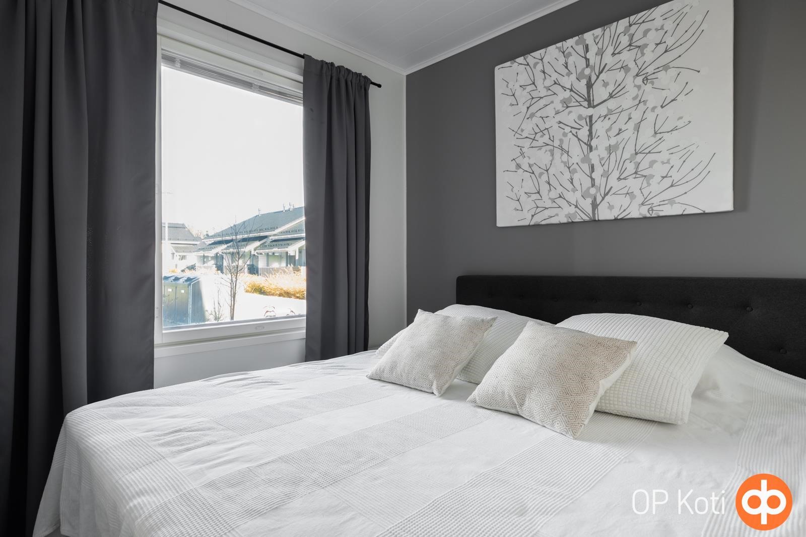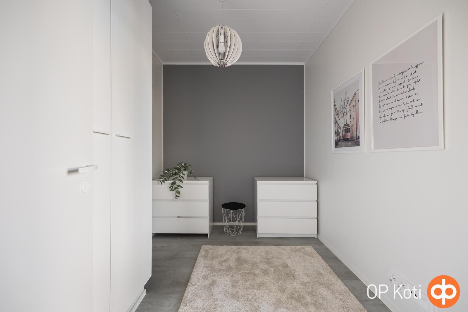 - Makuuhuone 1: lattiat vaalenharmaata vinyylilankkua, seinät maalattu valkoiseksi/harmaaksi. Kylpyhuone: laatoitettu. Keittiö / olohuone: lattiat vaalenharmaata vinyylilankkua, seinät on maalattu valkoiseksi/yksi päätyseinä on tapetoitu.