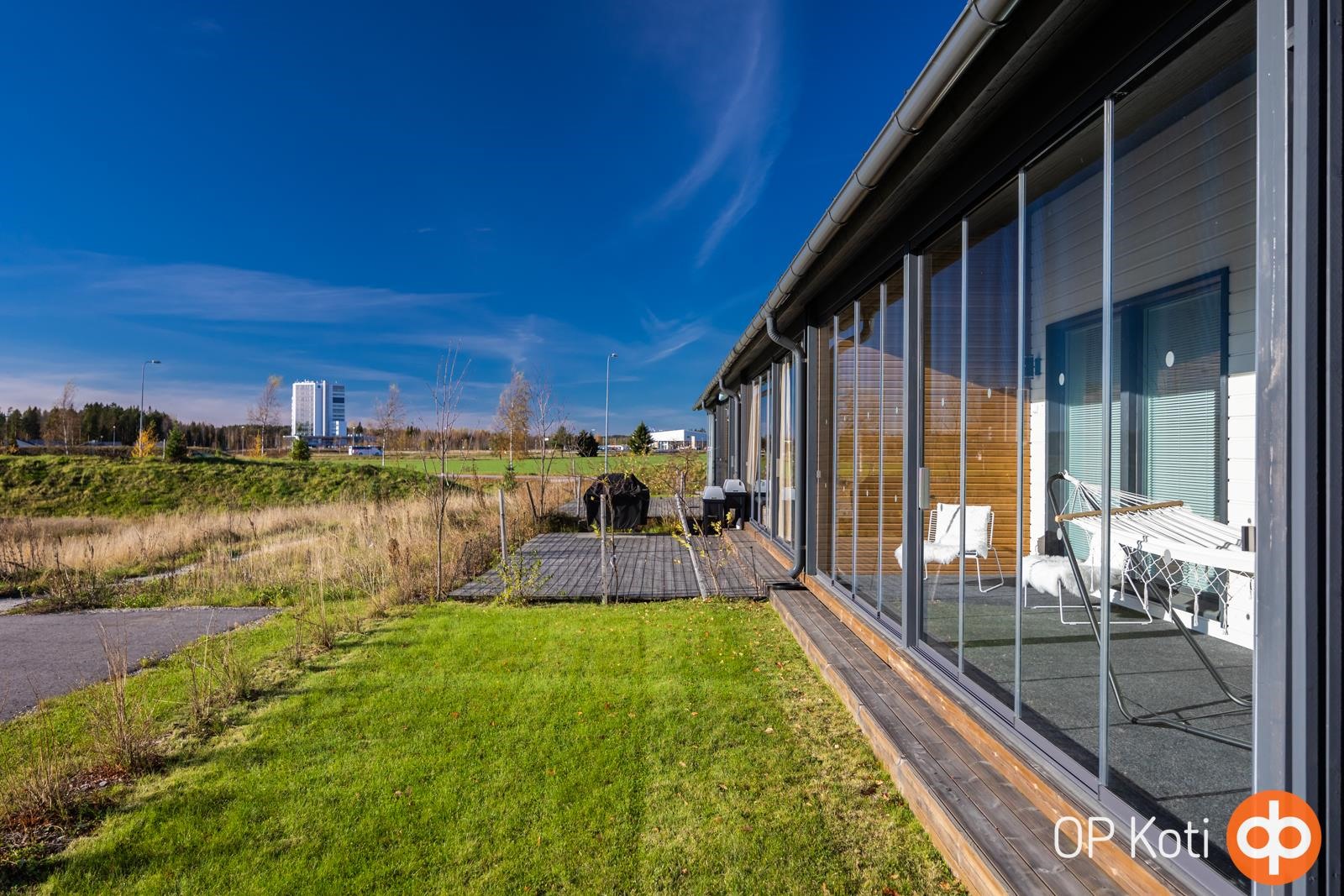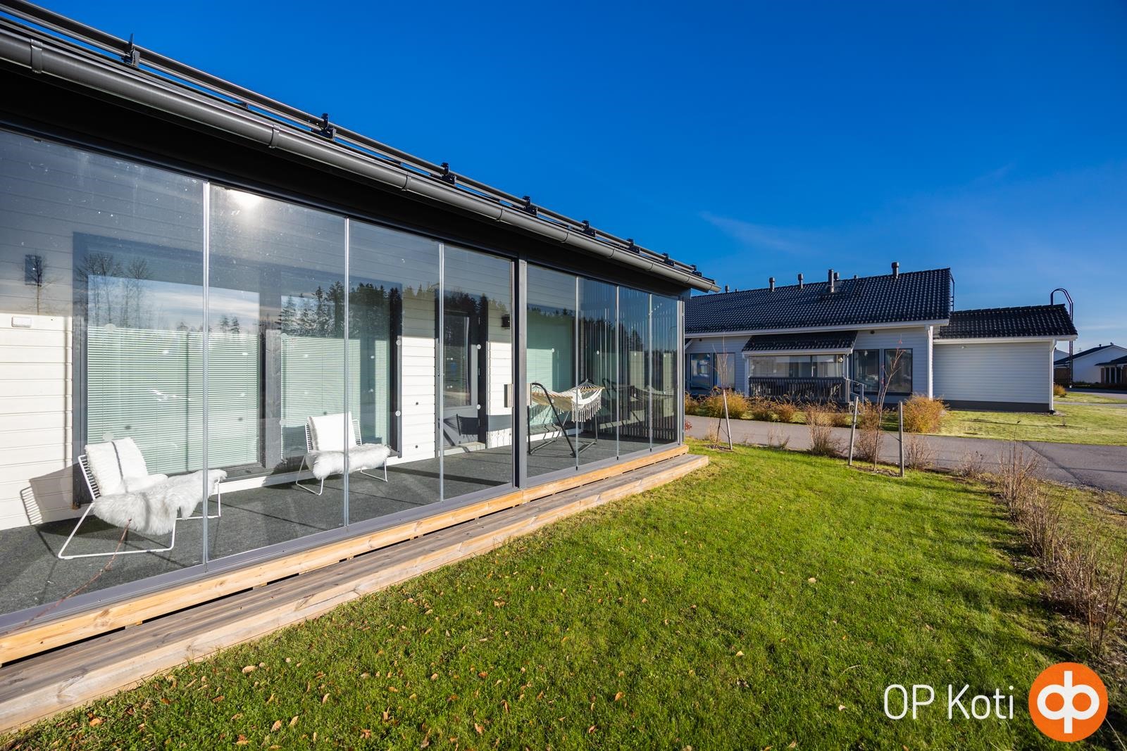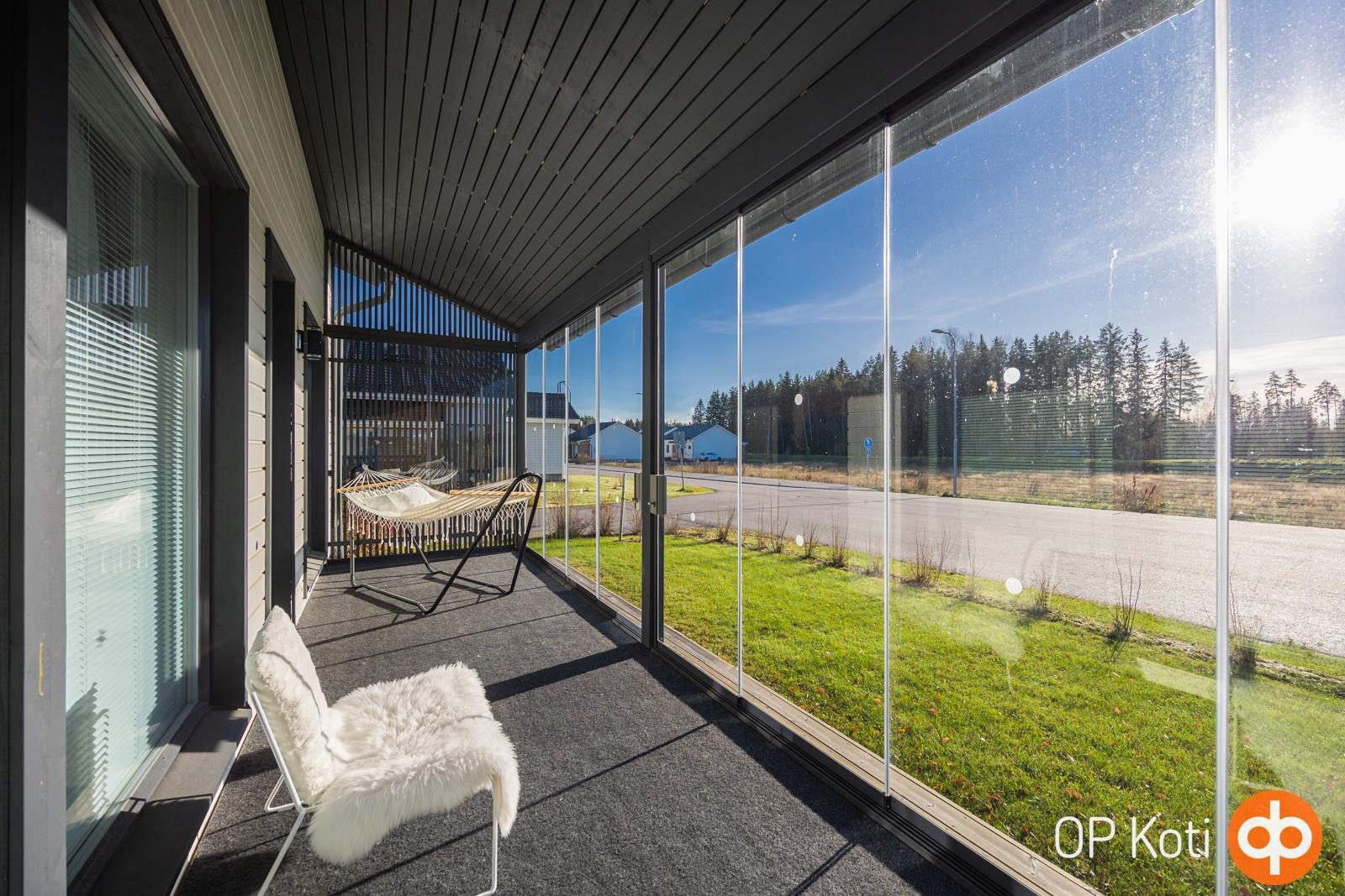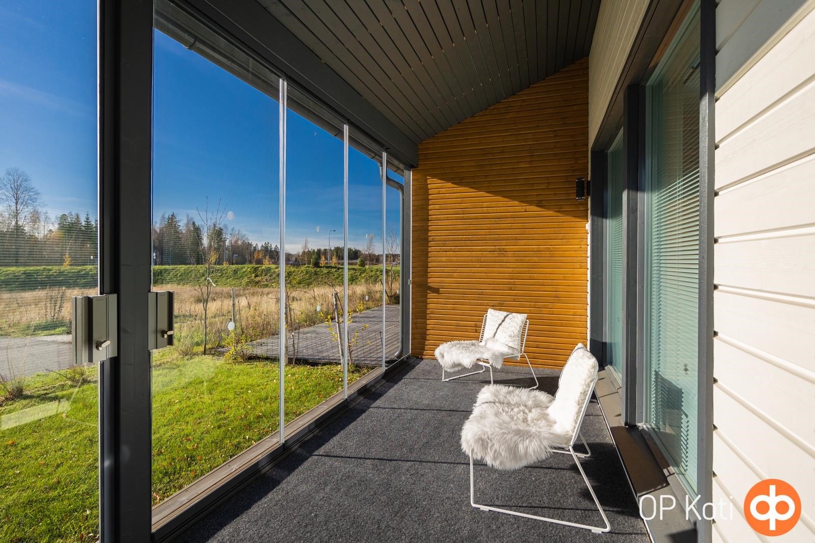 Rakennusvaiheessa valittu laadukas suomalainen Topi keittiö sekä teetetty terassille lasitukset.