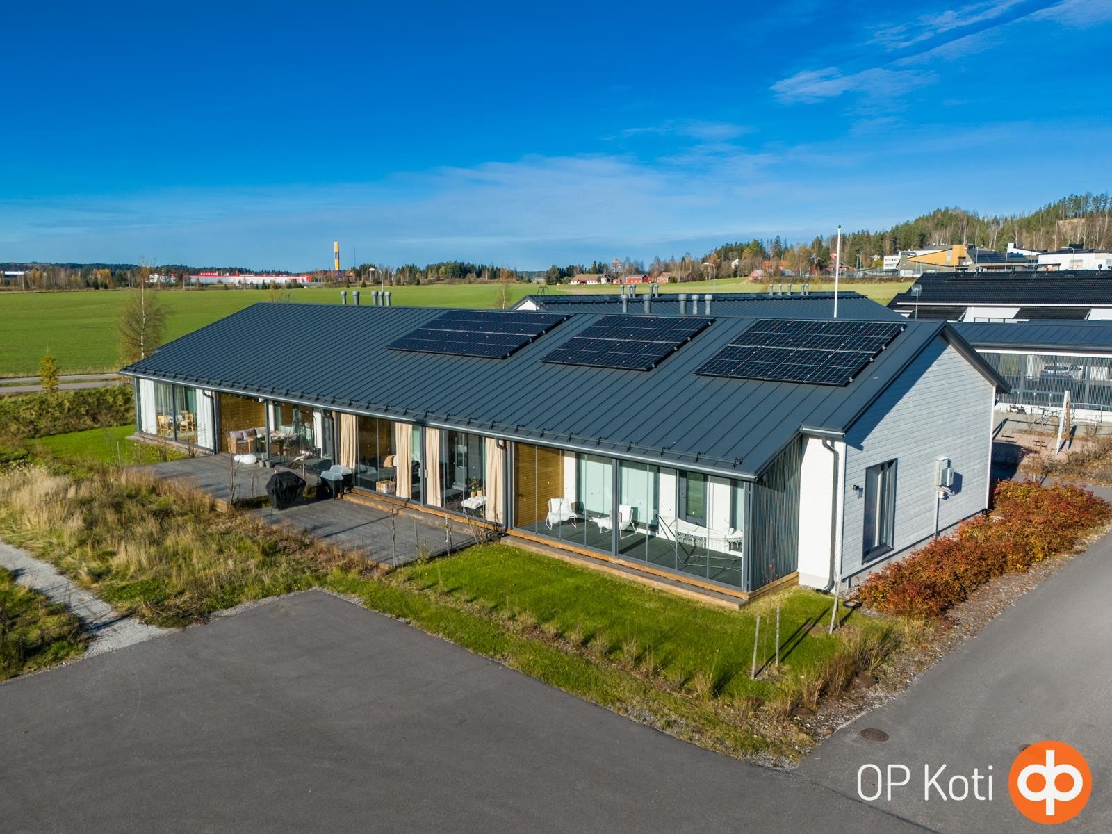 Tervetuloa tutustumaan upeaan, lähes uuteen kahden makuuhuoneen kotiin rauhallisella ja suositulla Renkomäen alueella Lahdessa! Olohuone ja keittiö muodostavat avaran yhtenäisen tilan, jonka valkoiset kaapistot, harmaat tasot ja tummat vetimet tuovat tyylikästä kontrastia. Keittiön suuri saareke tarjoaa runsaasti laskutilaa ja toimii täydellisesti sekä arjen keskuksena että juhlien tarjoilupisteenä. Kylpyhuone on kauniin ajaton ja tyylikäs. Saunan panelointi on tervaleppää ja lauteet apassia. Erillinen wc tuo arkeen lisämukavuutta. Olohuoneesta on käynti tilavalle lasitetulle terassille, joka tarjoaa mukavan oleskelupaikan aikaisin keväästä myöhäiseen syksyyn. Lisäksi sisääntulon yhteydessä on toinen terassi sekä käynti omaan lämpimään varastoon. Renkomäki on lapsiperheiden suosima ja viihtyisä asuinalue. Alueella on uusi koulu sekä päiväkoti. Läheltä löytyvät myös leikkipuistot ja ulkoilumaastot: luonnon helmassa pääsee liikkumaan ympäri vuoden. Työssäkäyvälle sijainti on erinomainen: yhteys moottoritielle on nopea, mikä tekee työmatkoista Helsinkiin tai muualle pääkaupunkiseudulle vaivattomia. Samalla Lahden keskustan palvelut ovat lyhyen ajomatkan päässä. Tämä koti yhdistää modernin asumisen, toimivan arjen ja luonnonläheisen ympäristön. Täydellinen vaihtoehto sinulle, joka etsit rauhallista mutta hyvin saavutettavaa kotia.