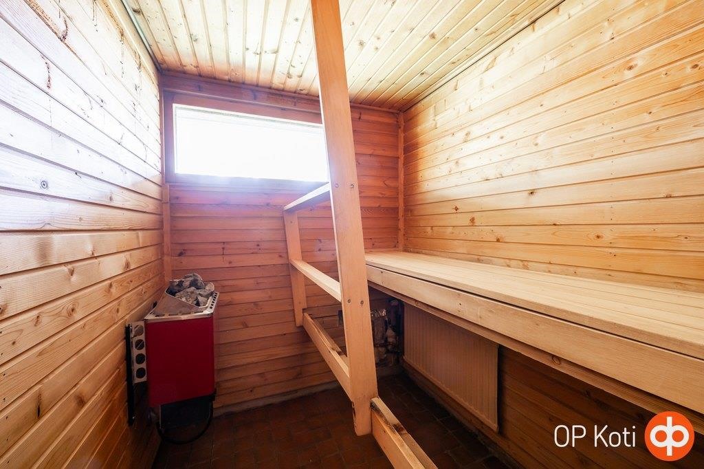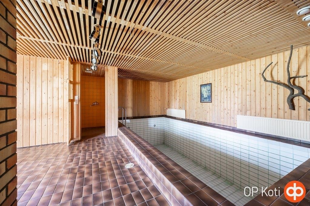 - Sauna, sähkökiuas, kylpyhuone, erillinen wc, suihku, pesukoneliitäntä. Uima-allas tyhjä