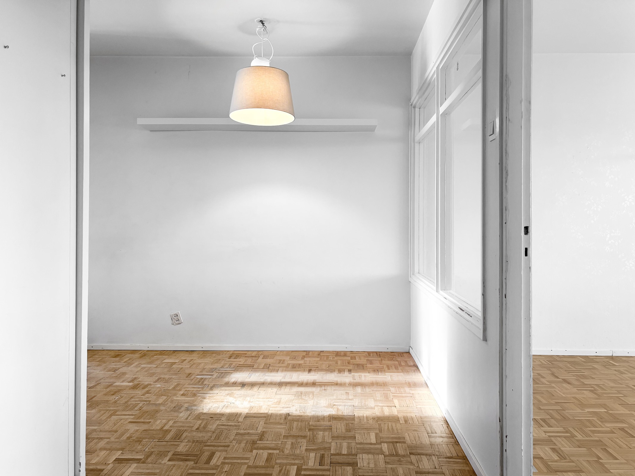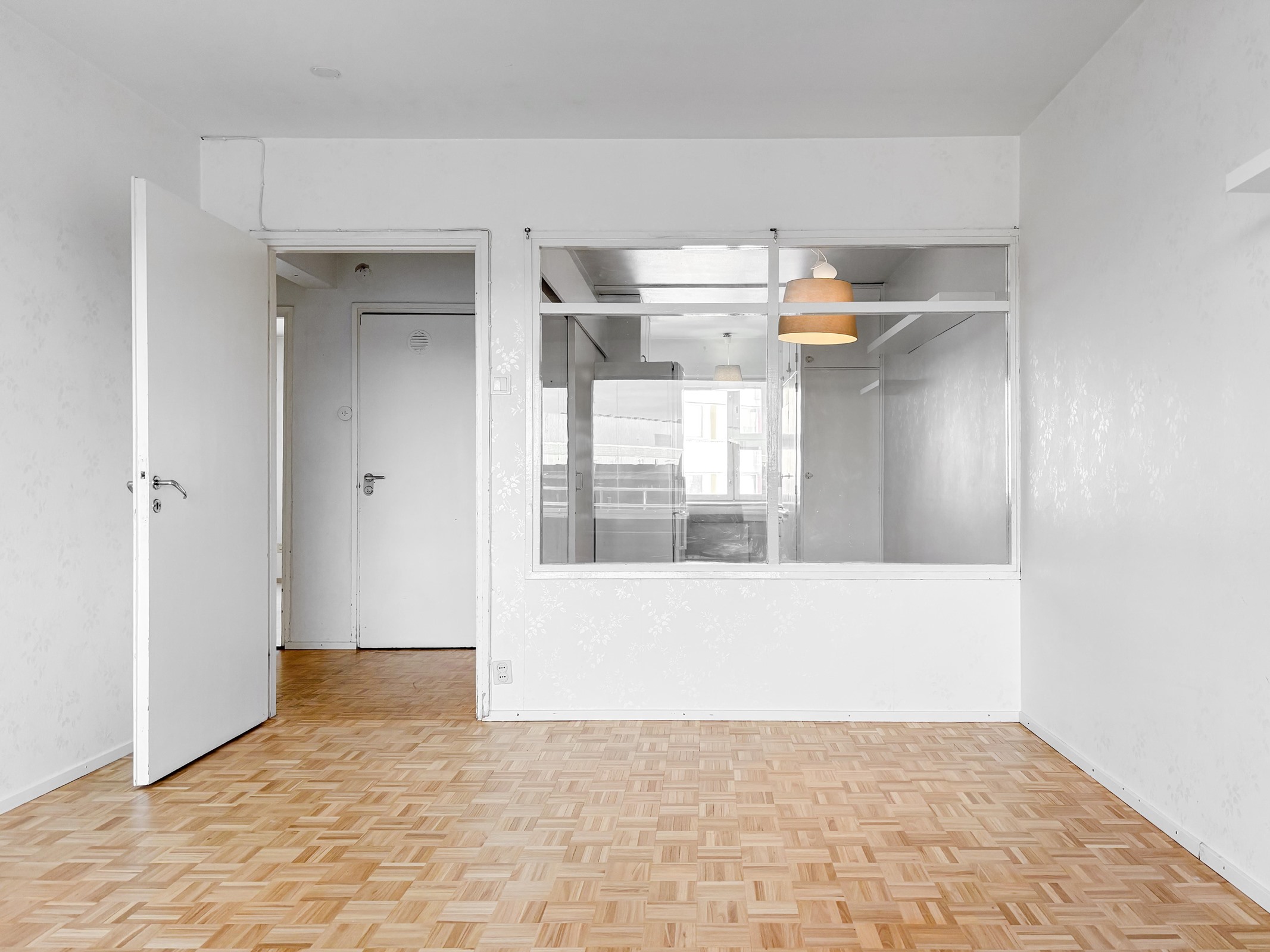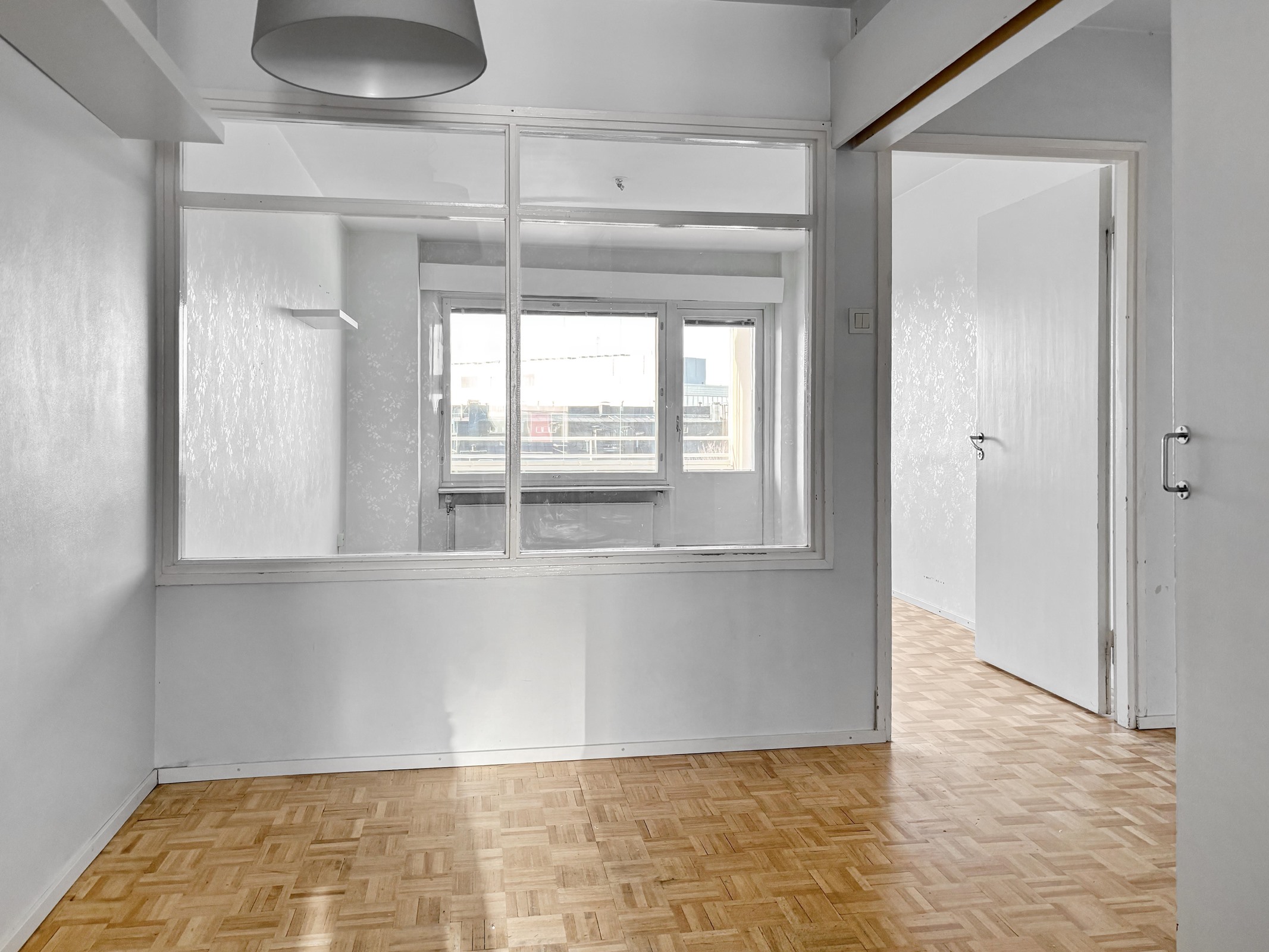 - olohuone, eteinen, keittiö: mosaikkiparketti, seinät maalattu. makuuhuoneet: parketti, seinät maalattu. kylpyhuone: laatoitettu.