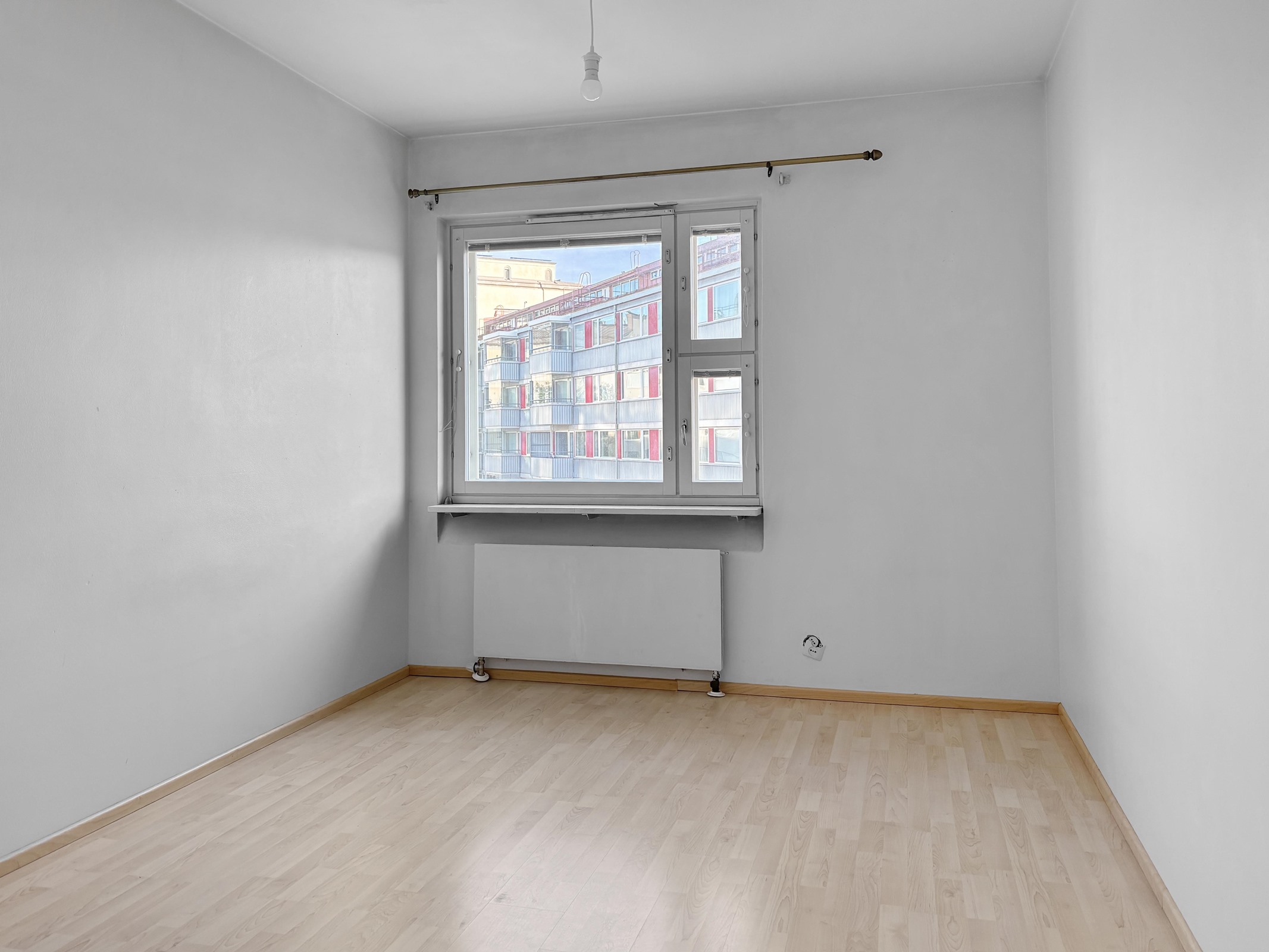 - Läpitalon huoneisto. Olohuoneen ikkuna sisäpihalle noin lounaaseen, makuuhuoneiden ja keittiön ikkunat noin koilliseen