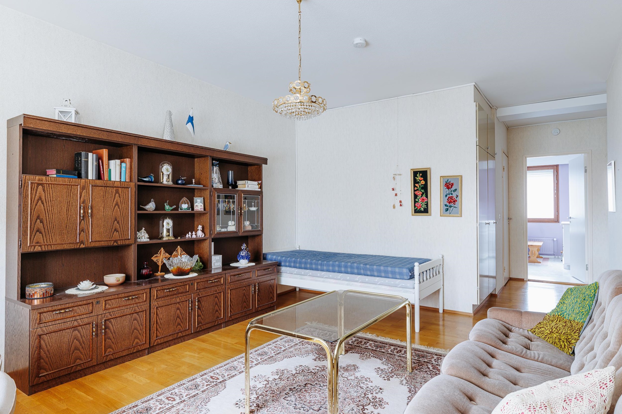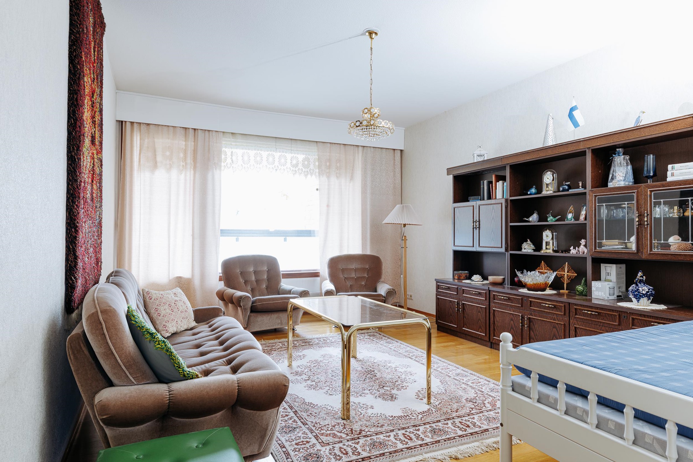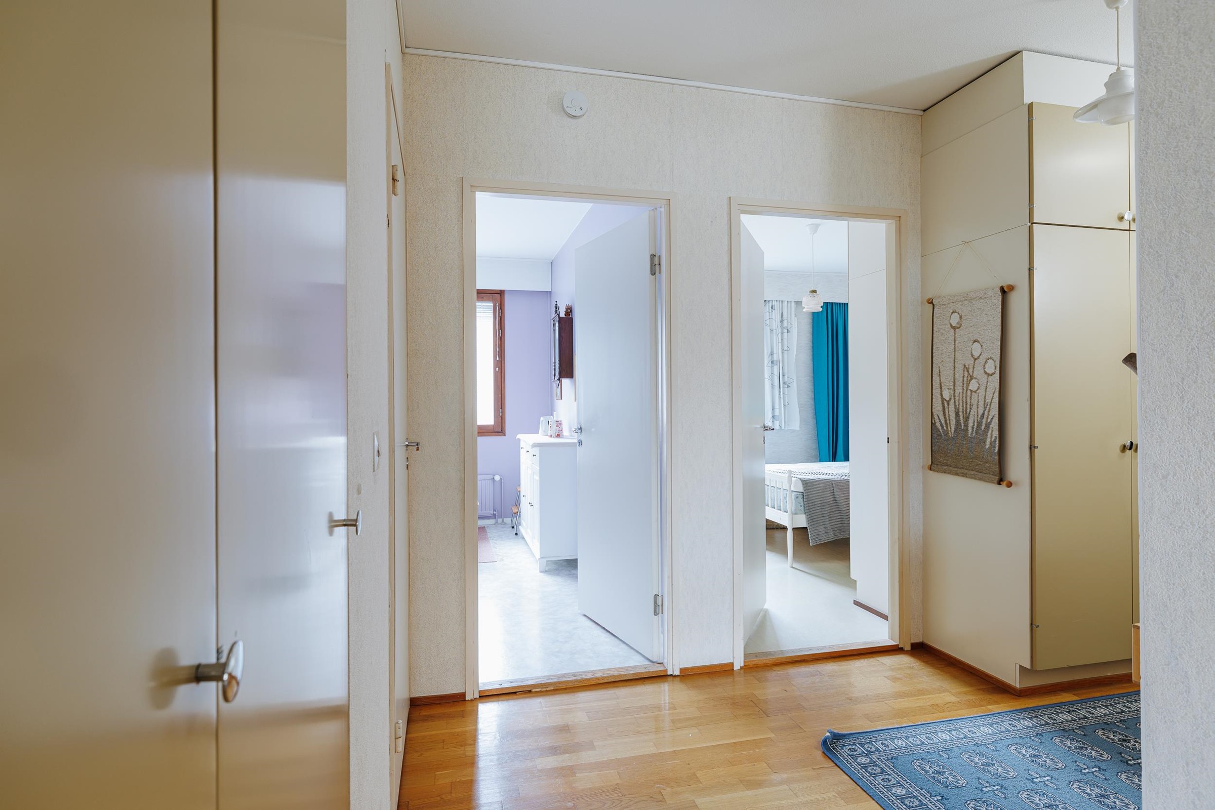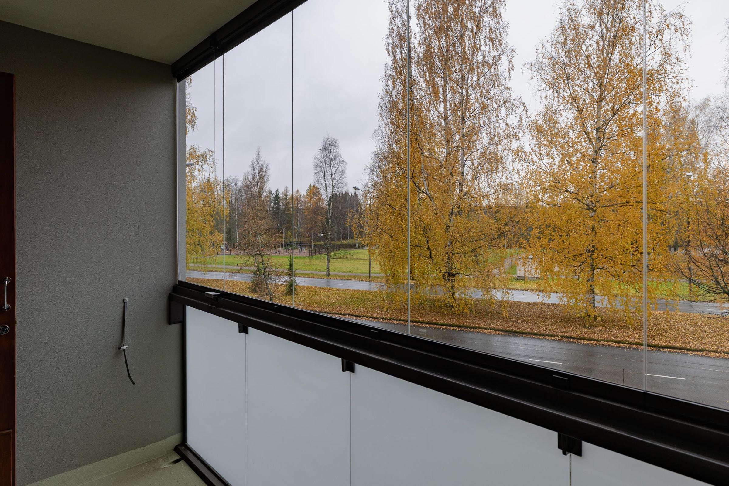 Asunnon pinnat ovat peruskuntoiset, mutta siistit - tästä on helppo tehdä omaan makuun sopiva koti. Valoisa olohuone ja lasitettu parveke Sahalammen uimarannan suuntaan tarjoavat mukavat puitteet arkeen ja rentoutumiseen. Asunnossa on oma sauna, ja kylpyhuone on uusittu 2000-luvulla vesieristeineen.