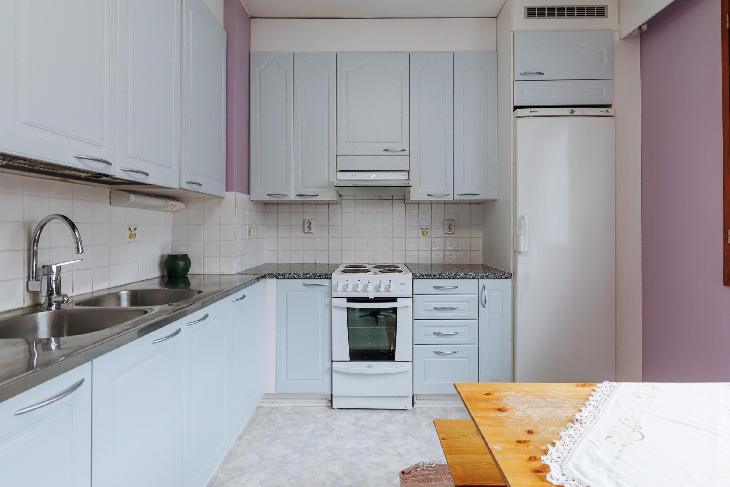 - Jääkaappi, sähköliesi, liesituuletin, kaapistot, kiinteät valaisimet.