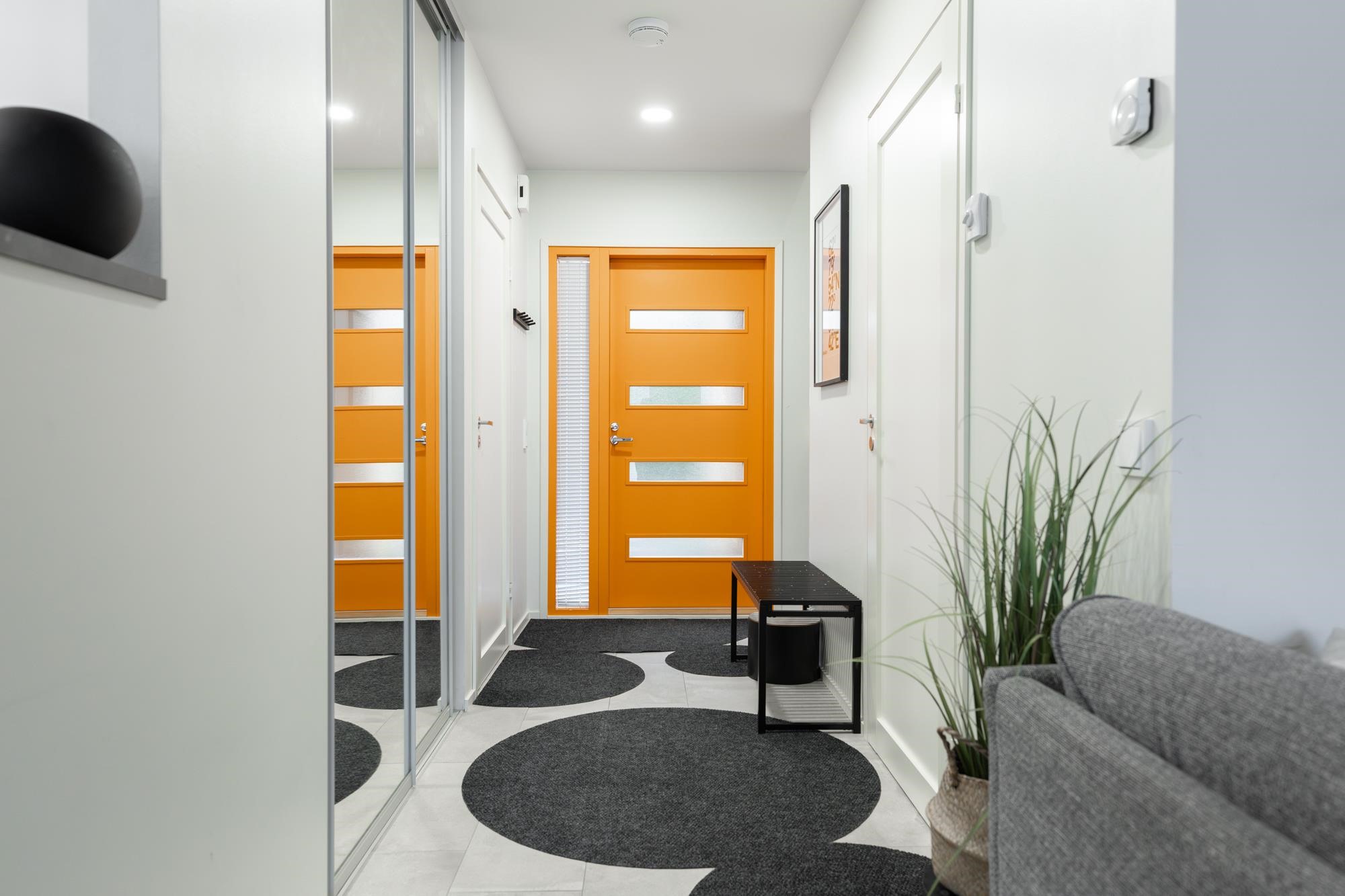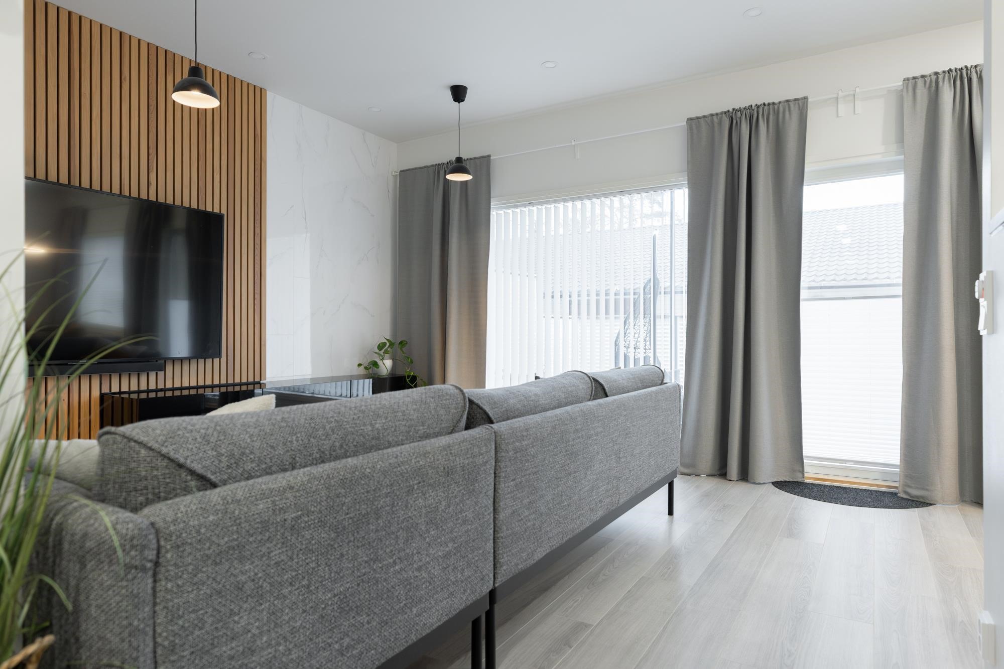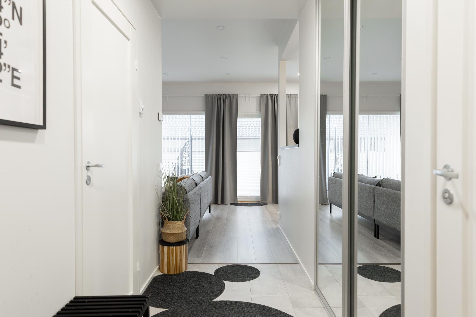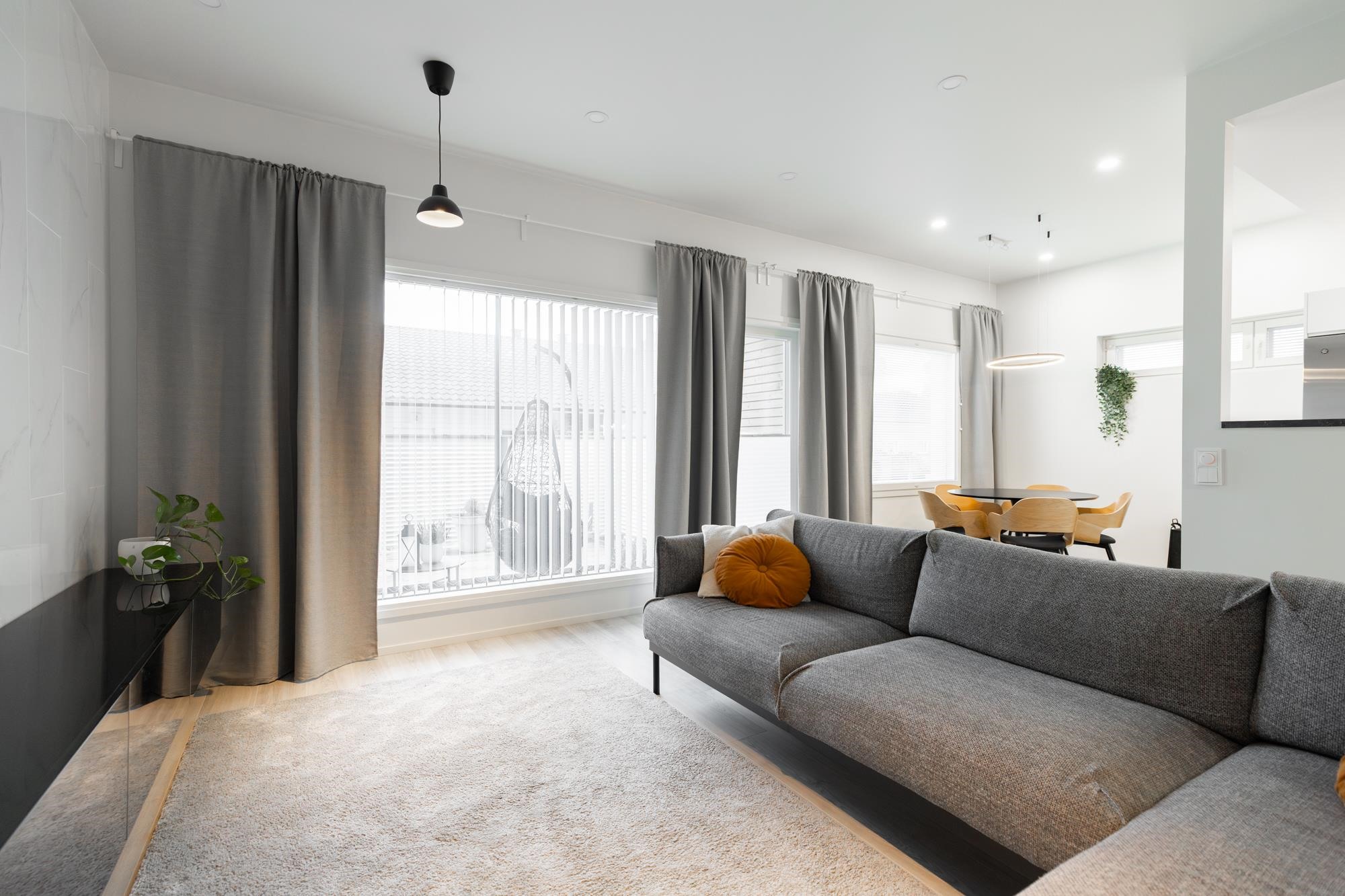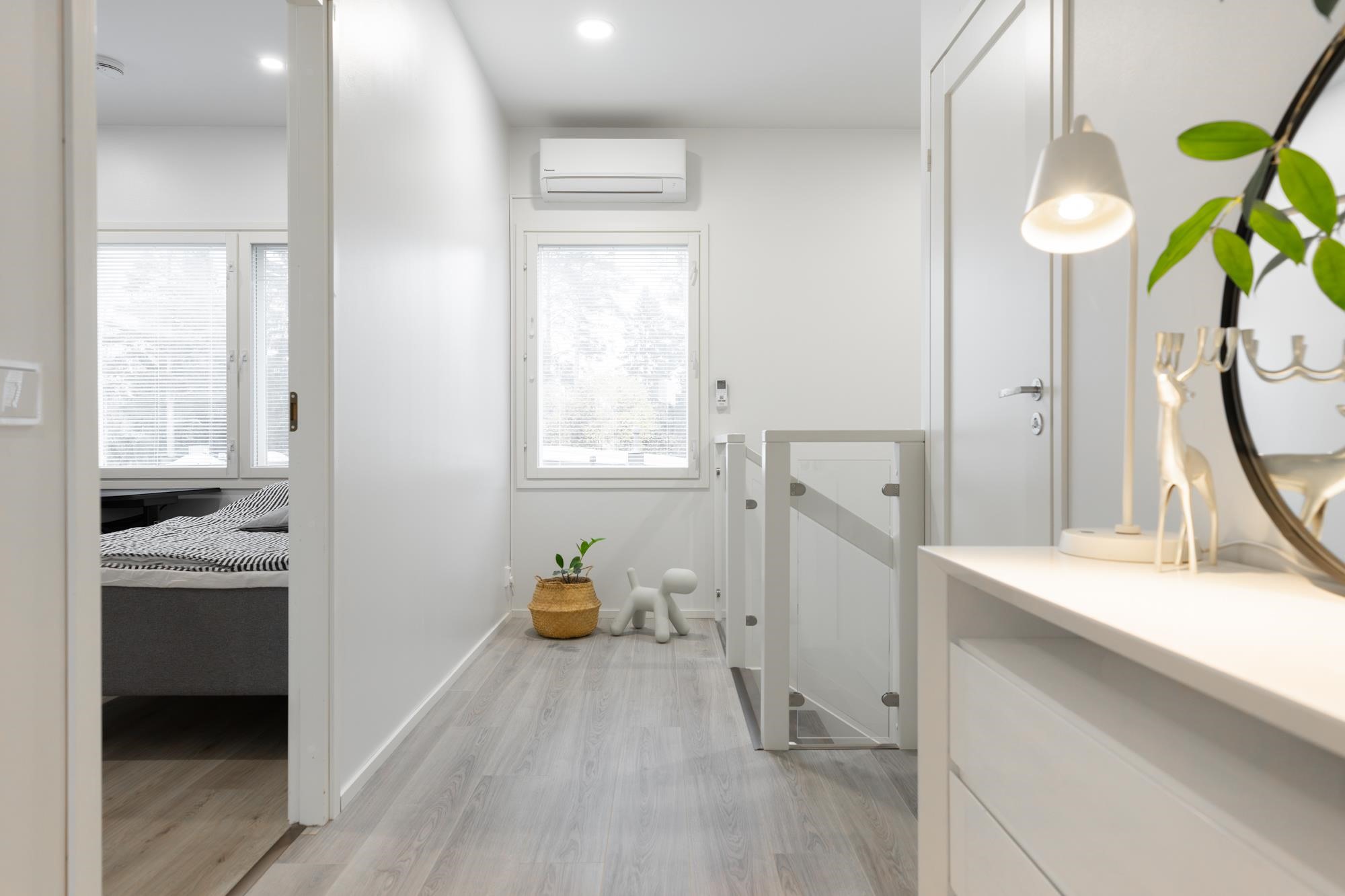 Tyylikkyyttä yleisilmeeseen tuovat muun muassa keittiön integroidut kodinkoneet. Kesähelteille helpoitusta tuo ilmalämpöpumppu. Lämmitysmuotona on miellyttävä vesikiertoinen lattialämmitys kaukolämmöllä, joka takaa tasaisen ja miellyttävän lämmityksen ympäri vuoden. Taloyhtiö on omalla rauhallisella tontilla, päättyvän kadun varressa.