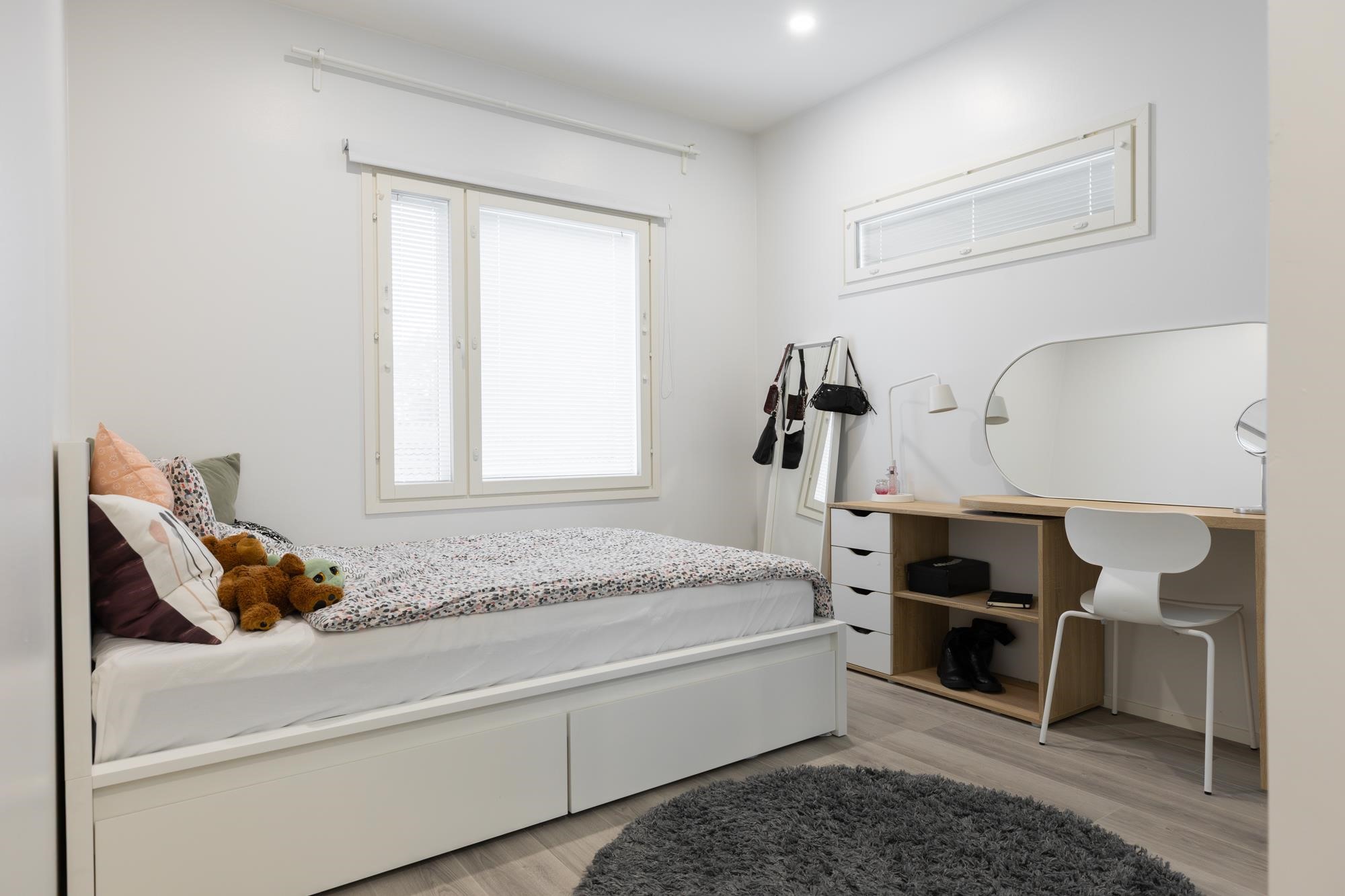 Tämän kolmen makuuhuoneen asunnon pohjaratkaisussa on onnistuttu yhdistämään avaruutta ja valoisuutta sekä arkea helpottavia elementtejä. Lisäksi huoneet ja niiden varustelu mukautuvat moneen eri tarpeeseen. Kodinhoitotilasta ei ole tingitty, ja säilytysratkaisujakin löytyy sopivasti. Ilta-auringosta pääset nauttimaan länteen suunnatulta terassialueelta.