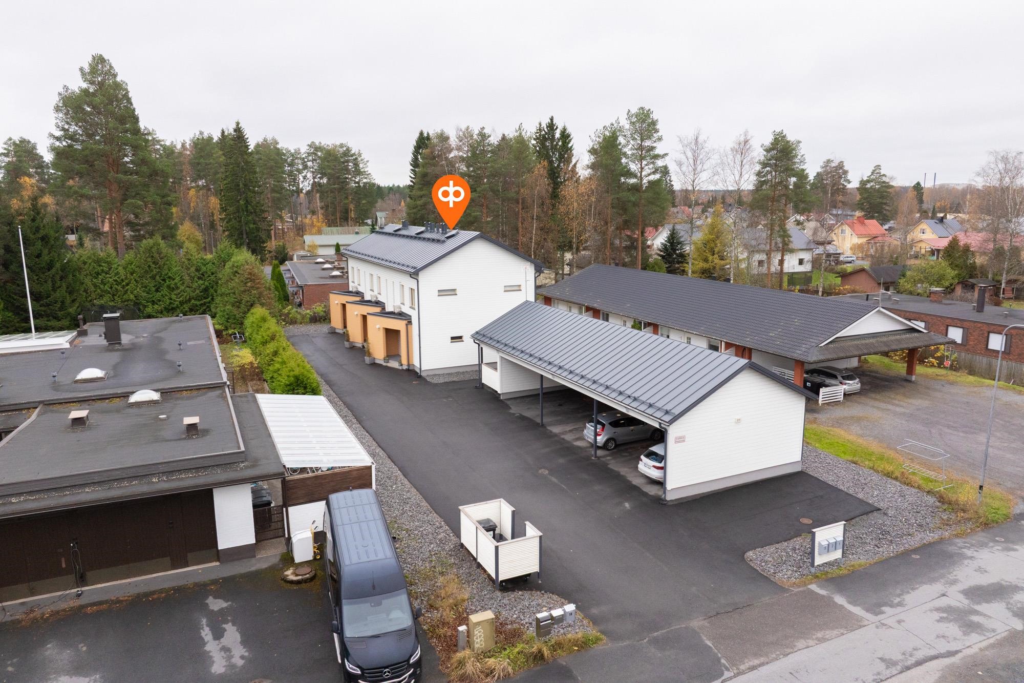Asunnolle kuuluu kaksi autokatospaikkaa. Pihapiiri on asfaltoitu/kivetetty kokonaan, tehden siitä siistin ja huolitellun. Autokatoksen yhteydessä olevaan varastotilaan säilöt kätevästi vaikkapa ulkoliikuntavälineet tai kausivarusteet.