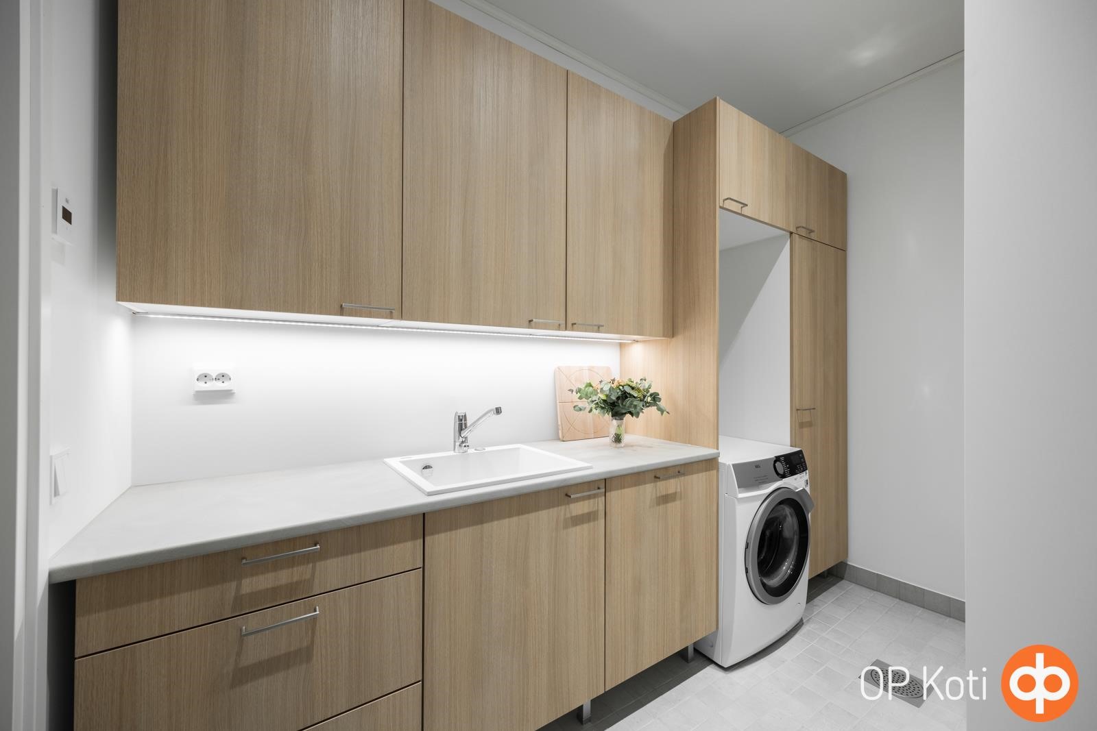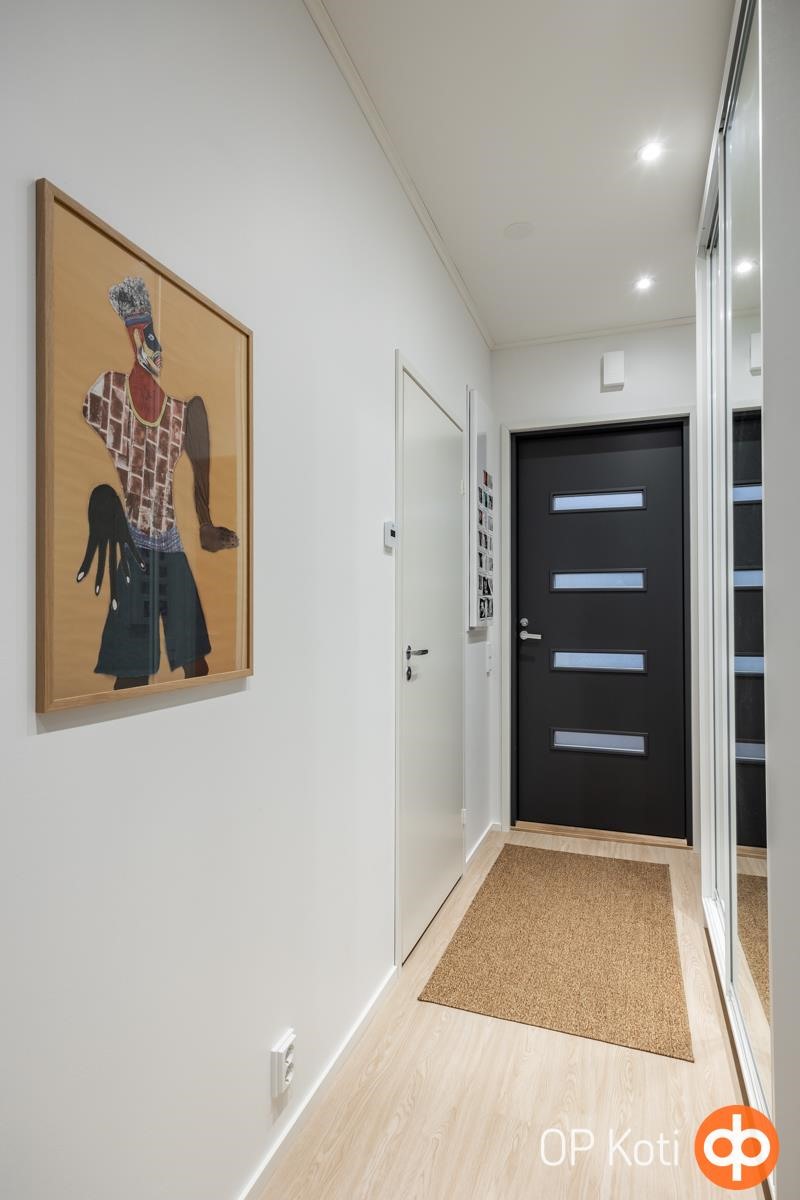 Asunnon pohjaratkaisu on suunniteltu toimivuutta ajatellen: kolme makuuhuonetta, viihtyisä olohuone ja kaunis, integroiduilla kodinkoneilla varustettu keittiö muodostavat yhtenäisen ja valoisan kokonaisuuden. Tilava kodinhoitohuone helpottaa arkea ja erillinen wc tuo mukavuutta kiireisiin aamuihin. Oman saunan löylyistä pääset nauttimaan silloin kun se sinulle sopii. Tähän asuntoon on laitettu arkea helpottavia, sähkökäyttöisiä kaihtimia.
