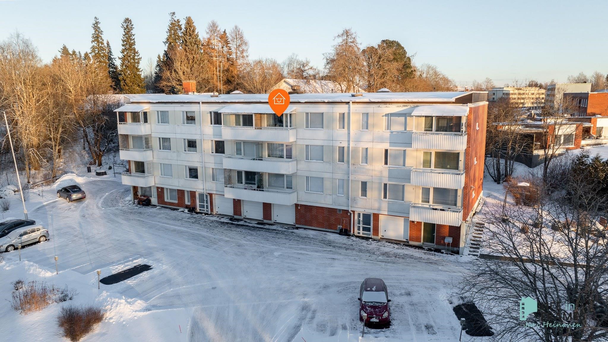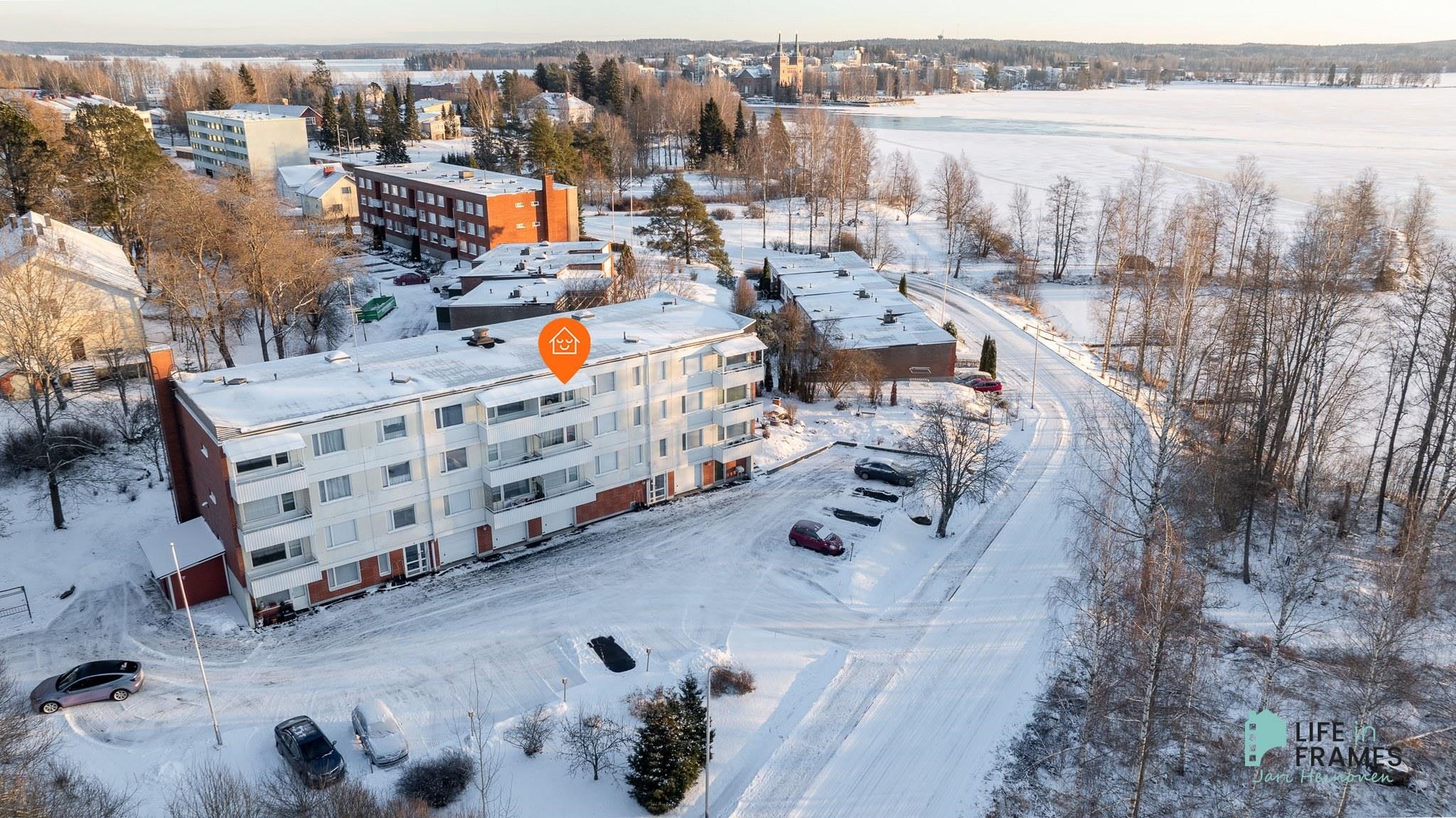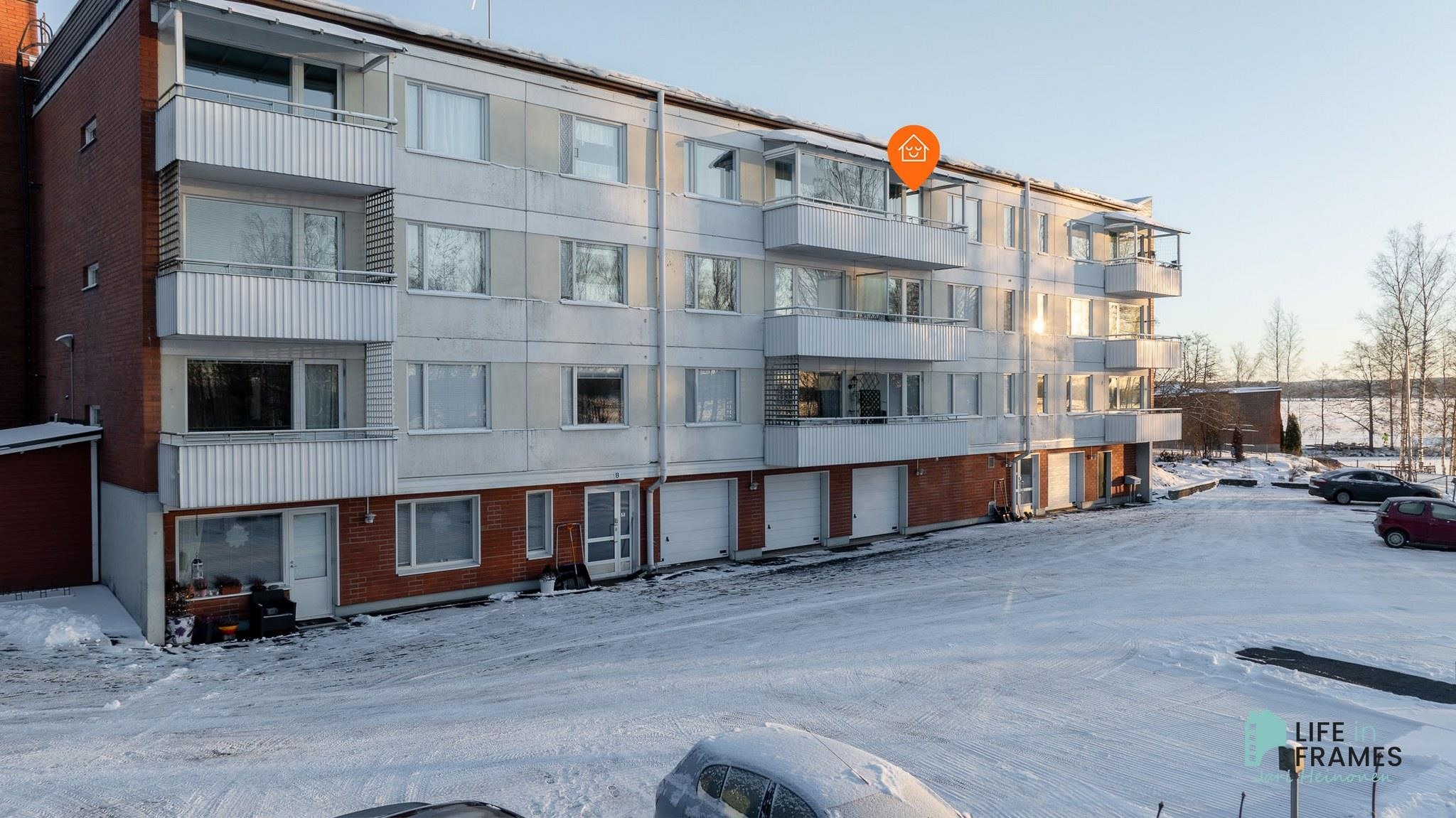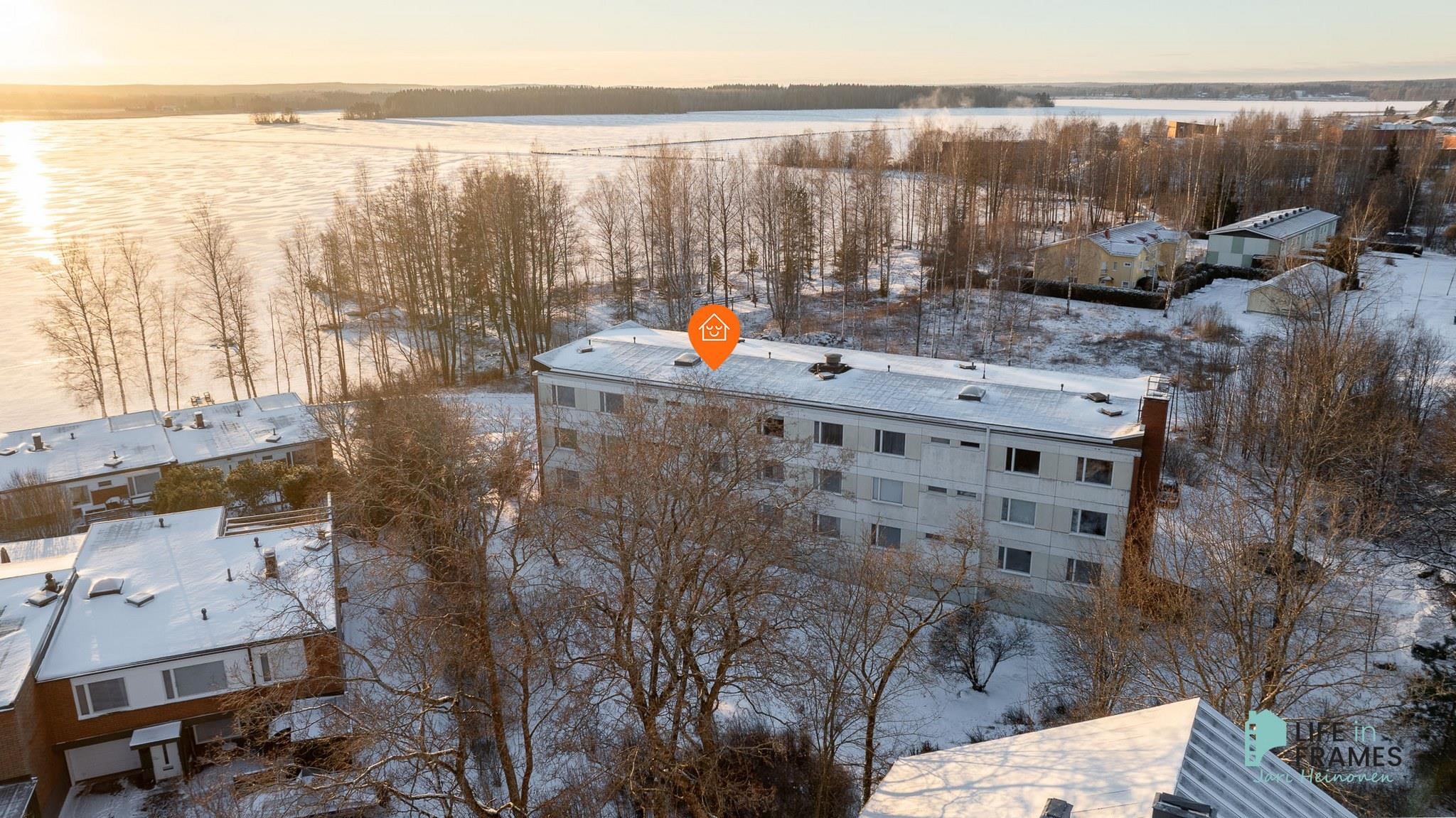 Tässä läpitalon asunnossa on hyvänkokoiset huoneet ja mukavasti säilytystilaa. Katetulta parvekkeelta on osittain näkymät Liekovedelle.