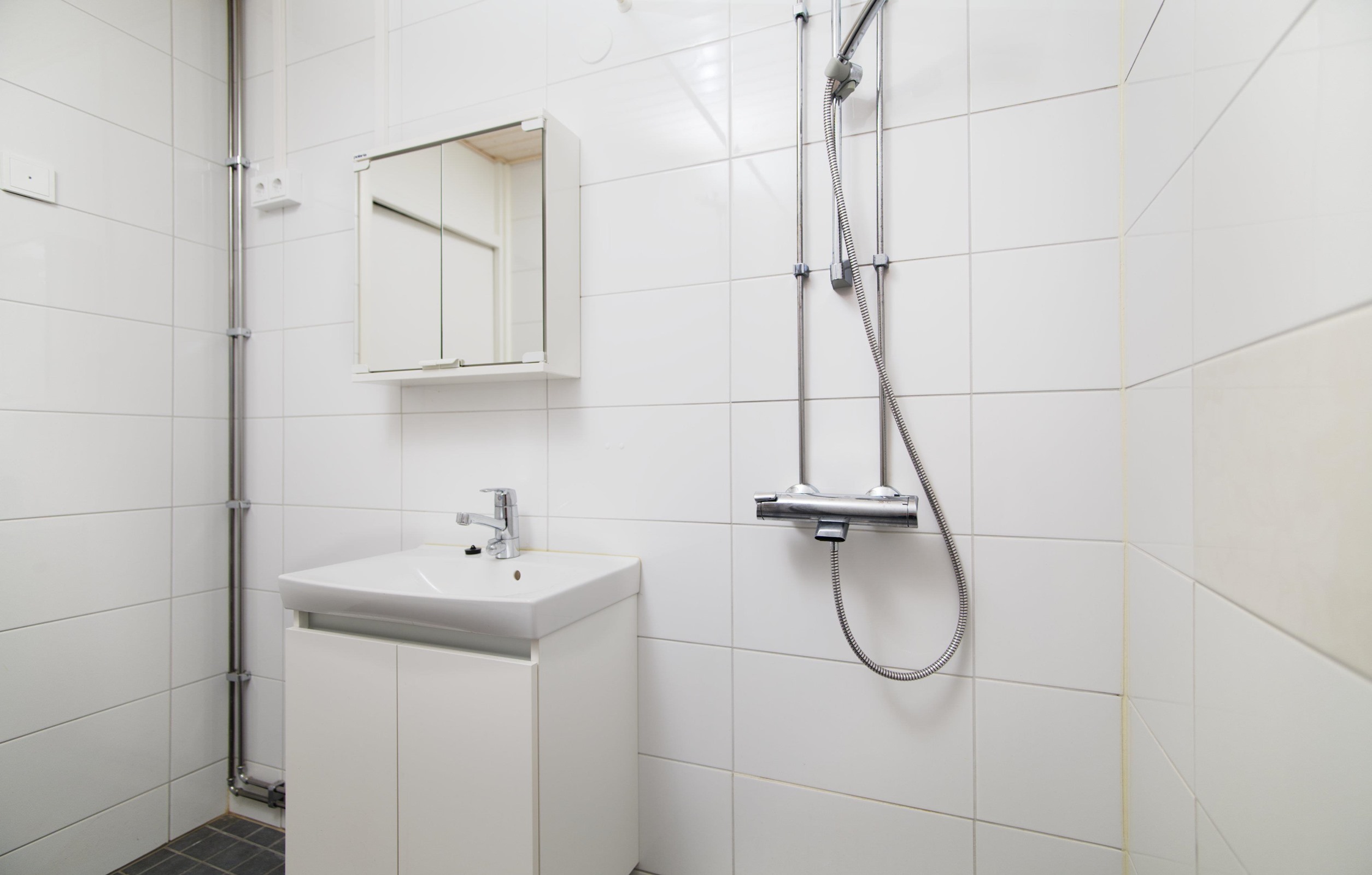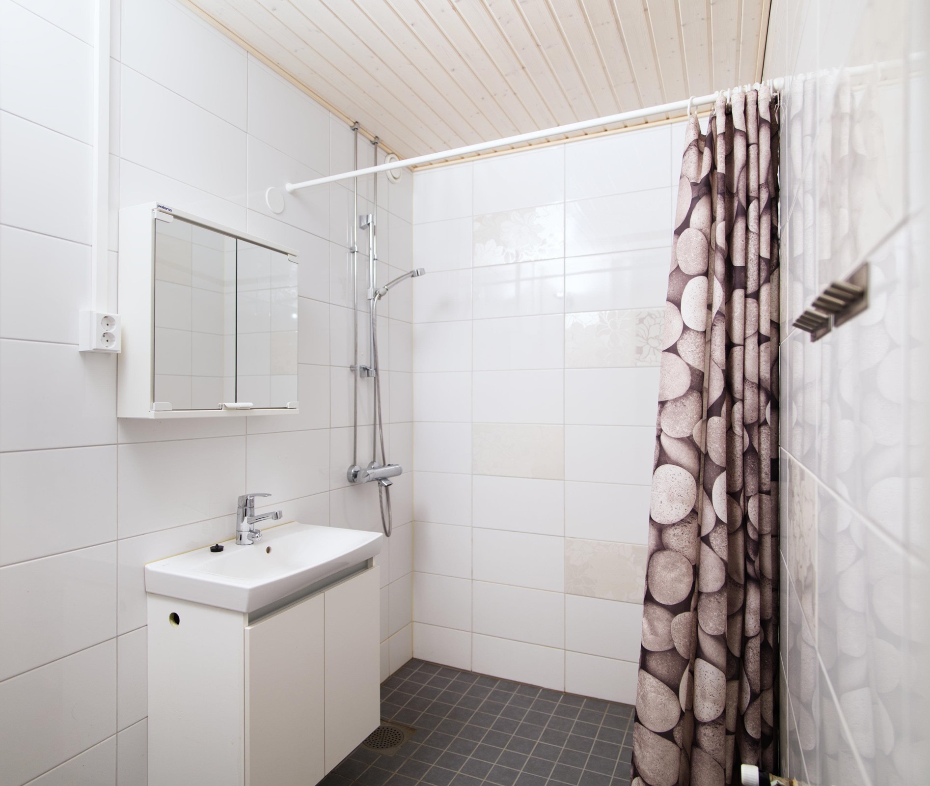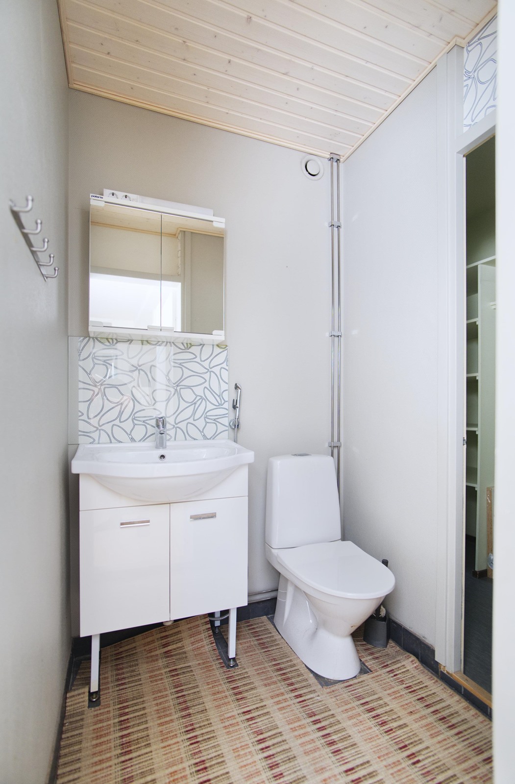 - Kylpyhuone, erillinen wc, suihku, peilit, pesukoneliitäntä. Kylpyhuoneessa ja wc:ssä ei ole lattialämmitystä.