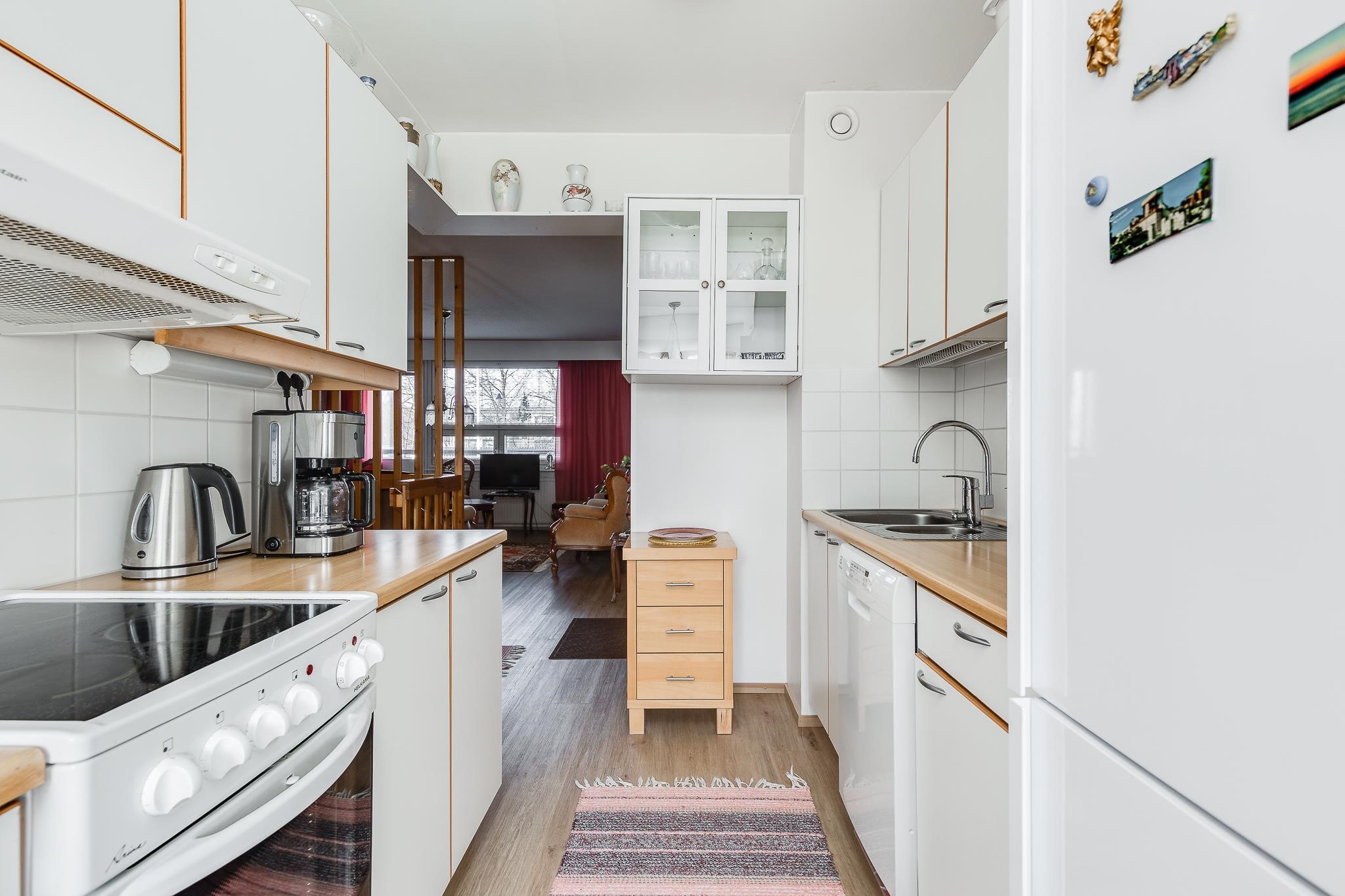 - Jääkaappipakastin, keraaminen liesi, liesituuletin, astianpesukone 45 cm leveä, kaapistot osa kaapistoista uusittu 2023.