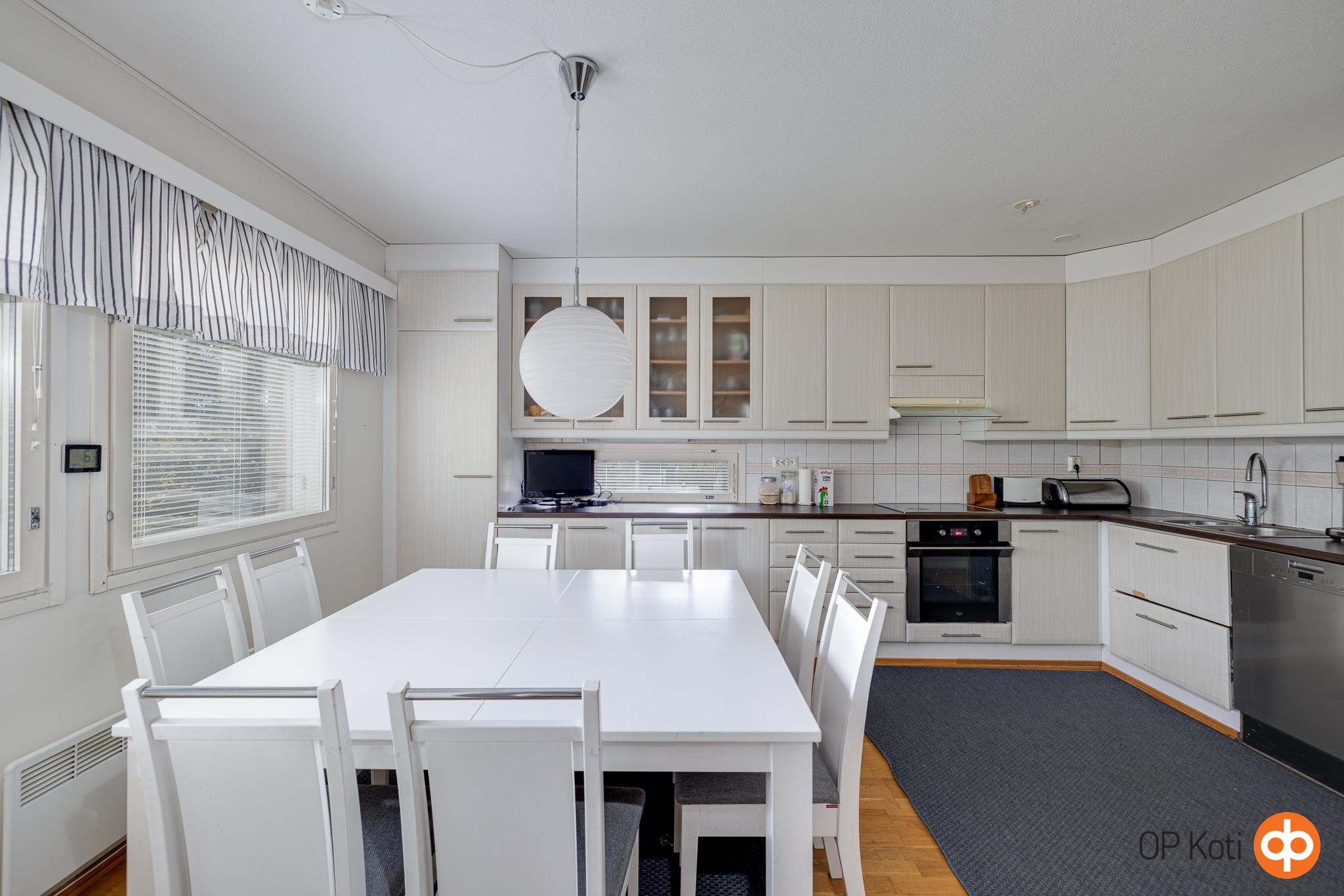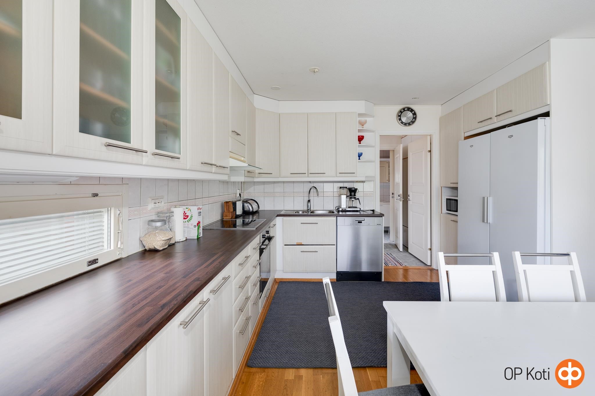 - Jääkaappi (2024), pakastekaappi (2024), erillisuuni (2013), induktioliesi (2013), liesituuletin, astianpesukone (2023), kaapistot, kiinteät valaisimet. Keittiö remontoitu 2013 (välitilan laatta on alkuperäinen)