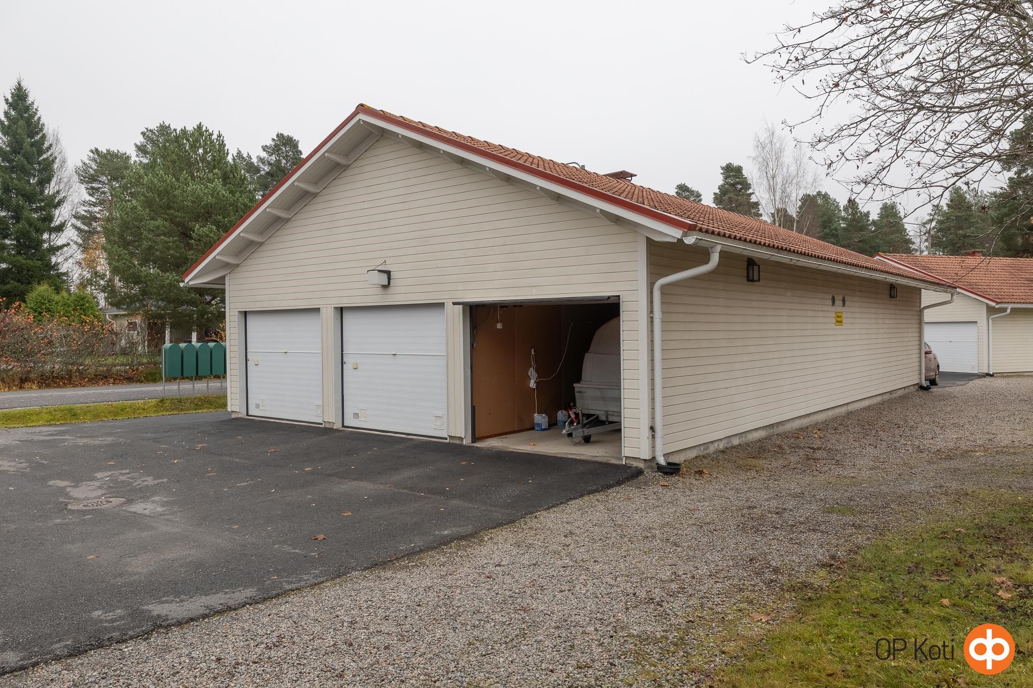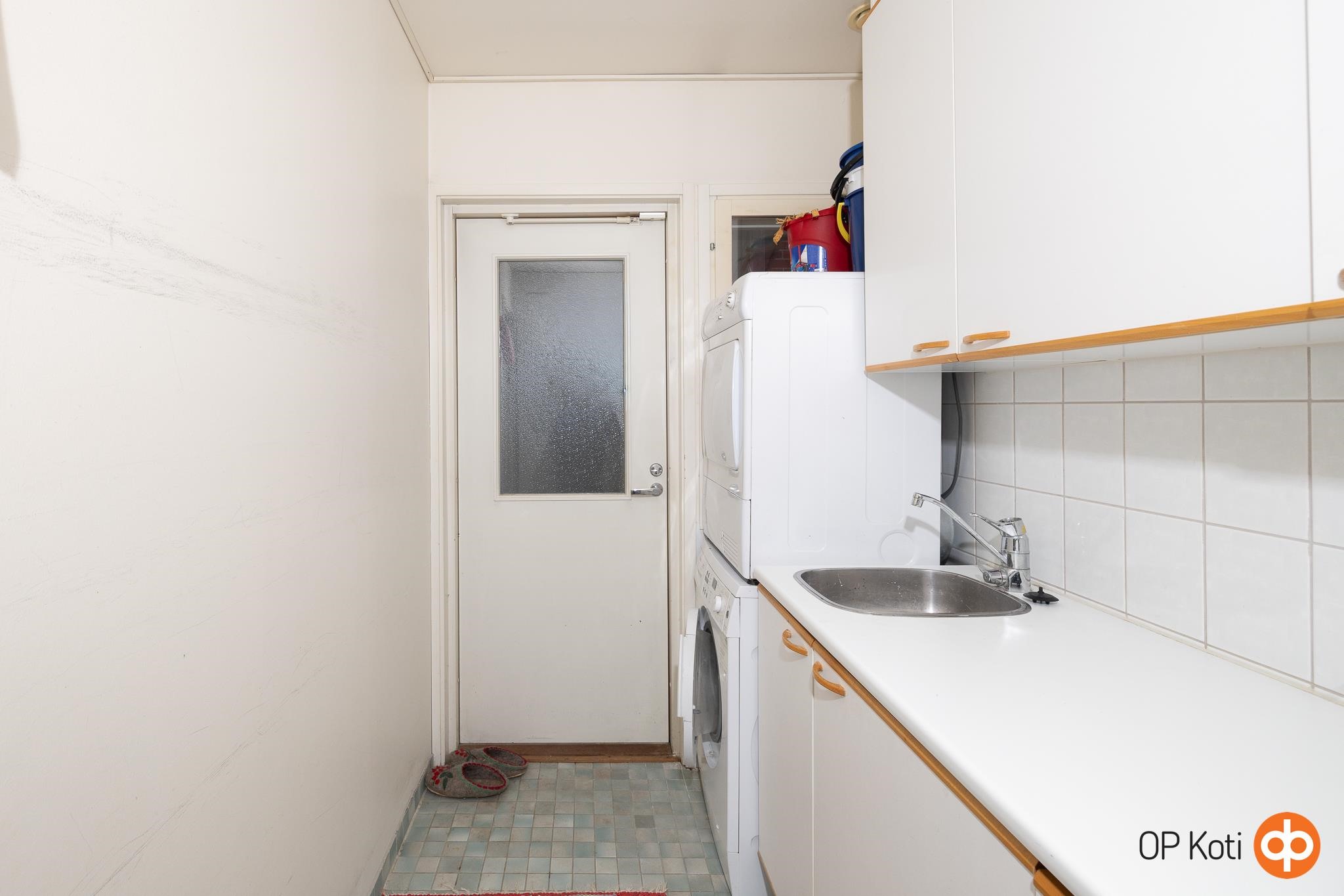 Käytännöllinen kodinhoitohuone helpottaa arjen askareita, ja asunnon yhteydessä oleva ulkovarasto tarjoaa kätevää säilytystilaa. Omalla piha-alueella pääset nauttimaan ulkoilmasta. Kylmä autotalli kuuluu asuntoon.