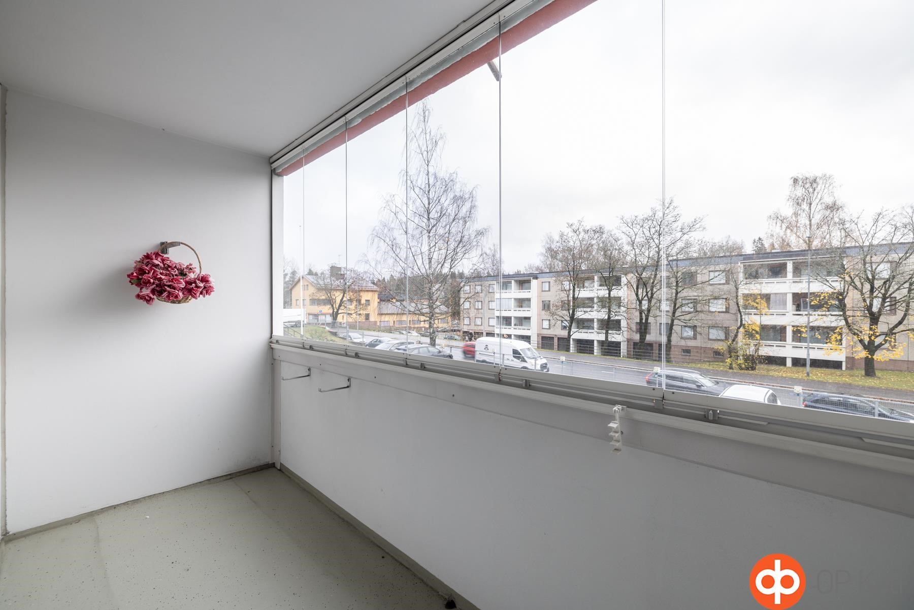 Asunnon tilava lasitettu parveke tuo mukavasti lisätilaa arkeen ja mahdollisuuden nauttia ulkoilmasta aikaisin keväästä myöhään syksyyn.