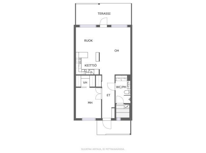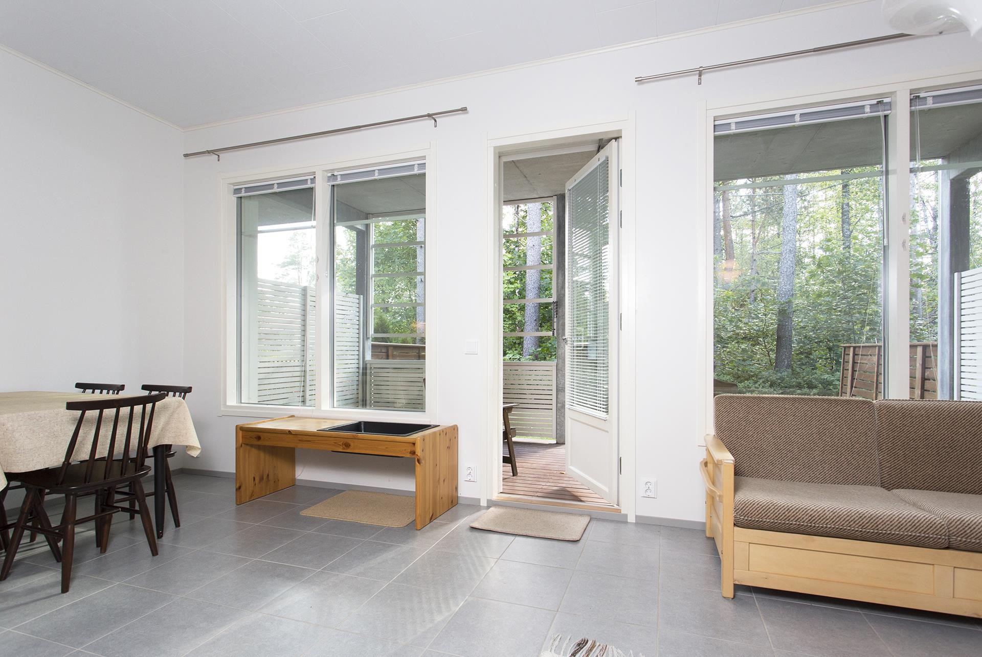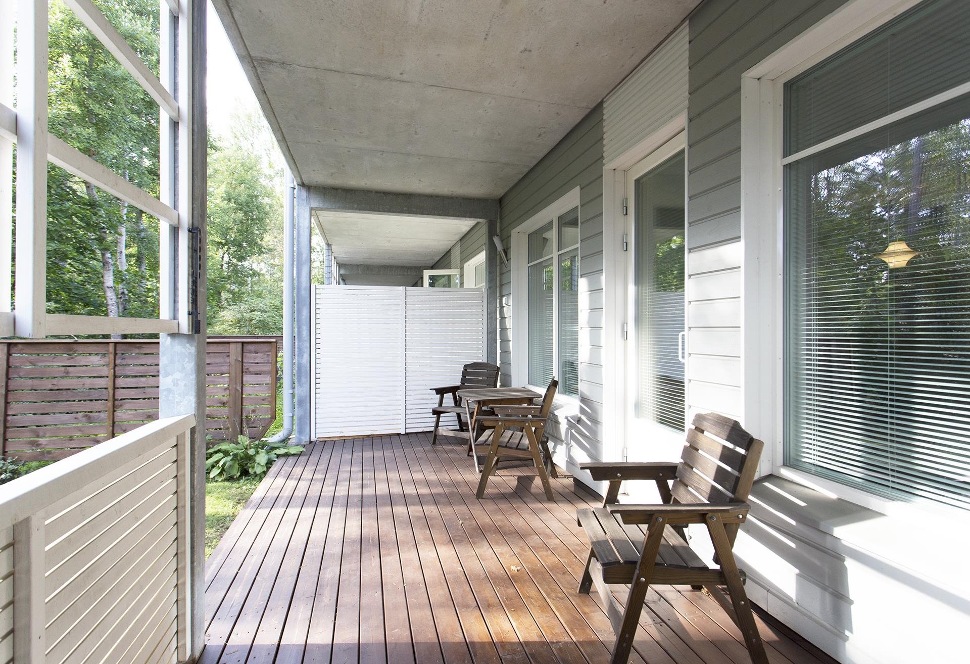 - Läpitalon huoneisto, terassi ilta-auringon suuntaan