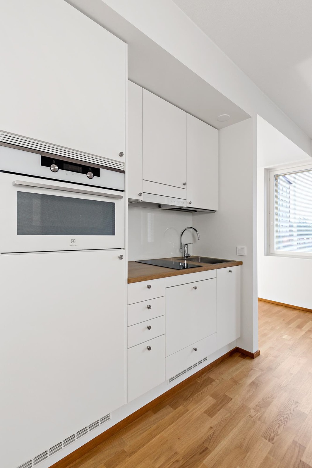 - Jääkaappi, erillisuuni, liesitaso, induktioliesi, mikroaaltouuni, astianpesukone, kaapistot, kiinteät valaisimet. Uuni yhdistelmäuuni (kiertoilma- mikro-)
