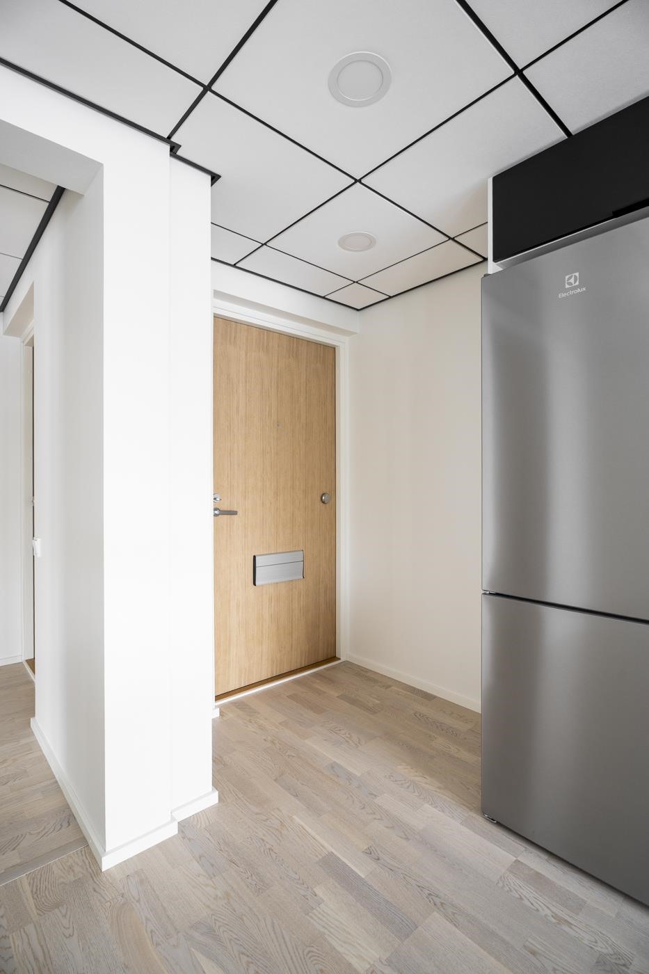 - Asunnossa on lämmön talteenotolla varustettu asuntokohtainen koneellinen tulo-poistoilmanvaihtojärjestelmä. Asunnon ilmanvaihtoa voi tehostaa liesikuvusta.