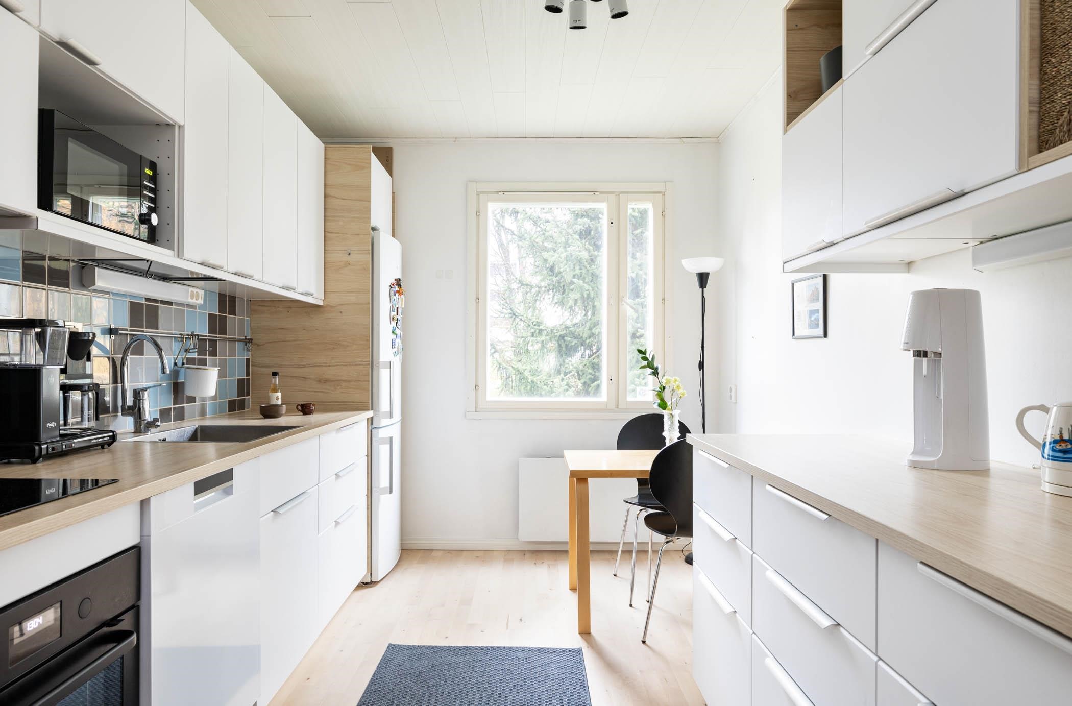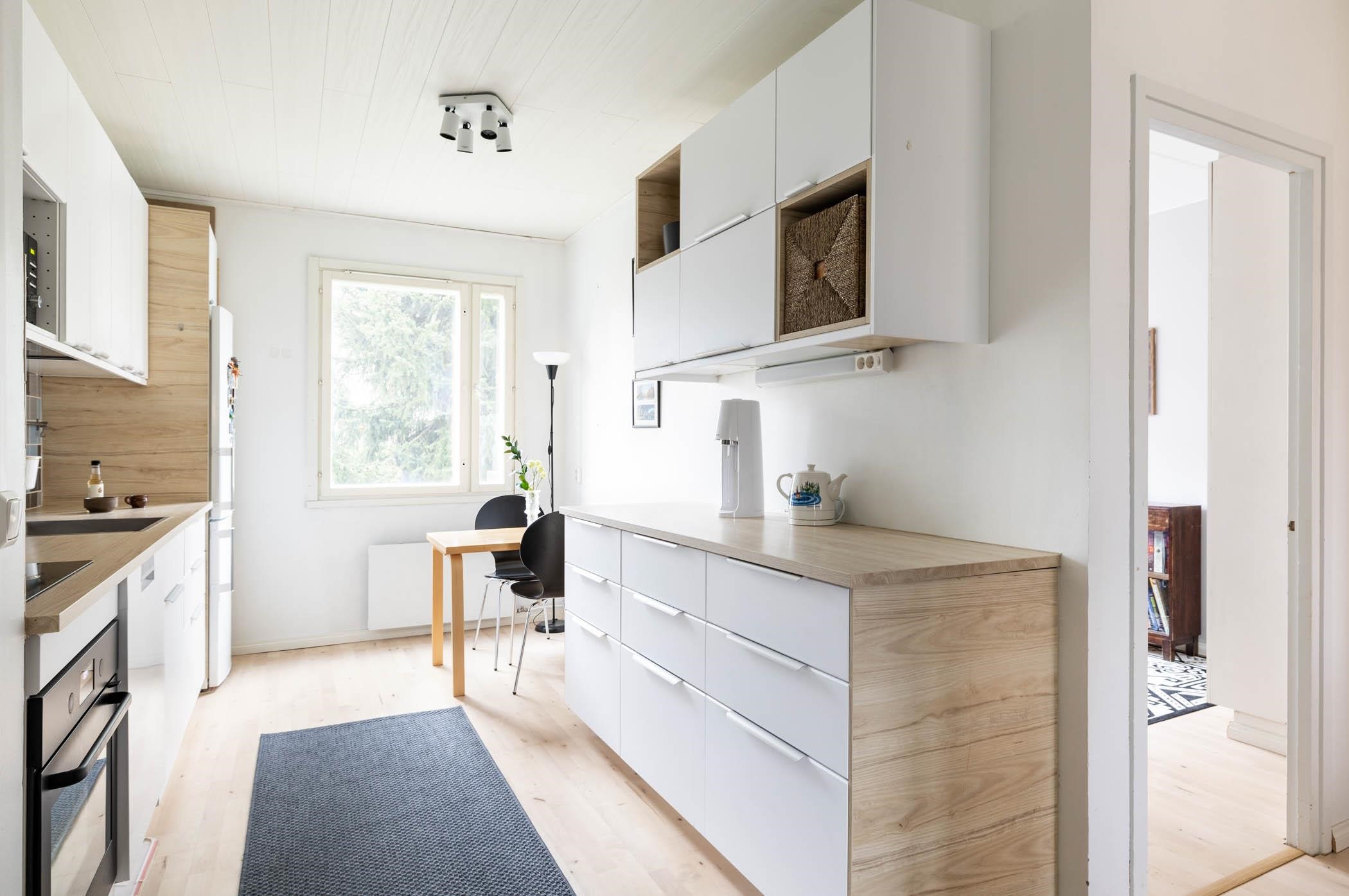 - Kodin keittiö on remontoitu vuonna 2020. Keittiön varusteisiin kuuluvat jääkaappipakastin, erillisuuni, induktioliesitaso, liesituuletin, astianpesukone, kaapistot ja kiinteät valaisimet.