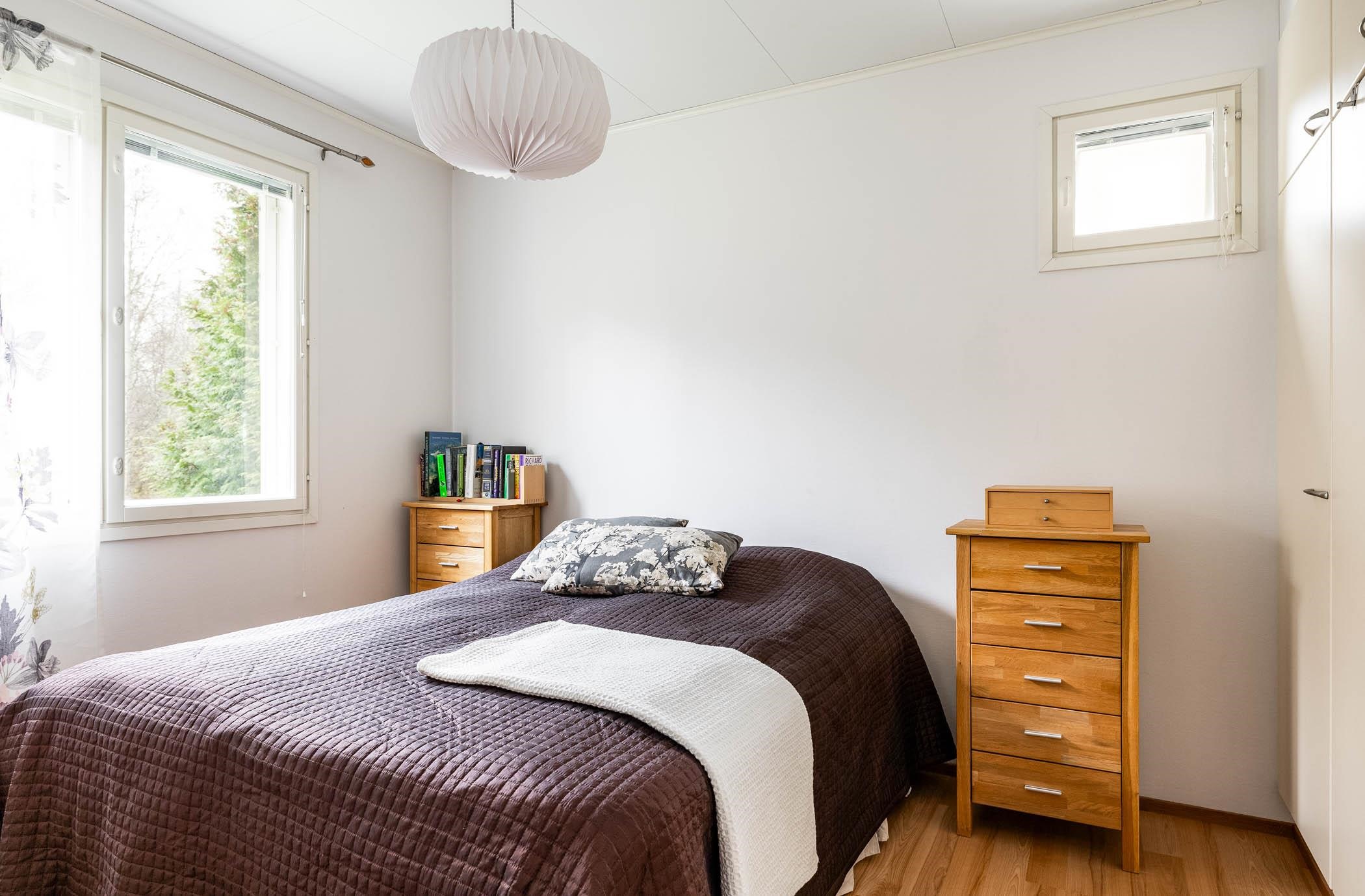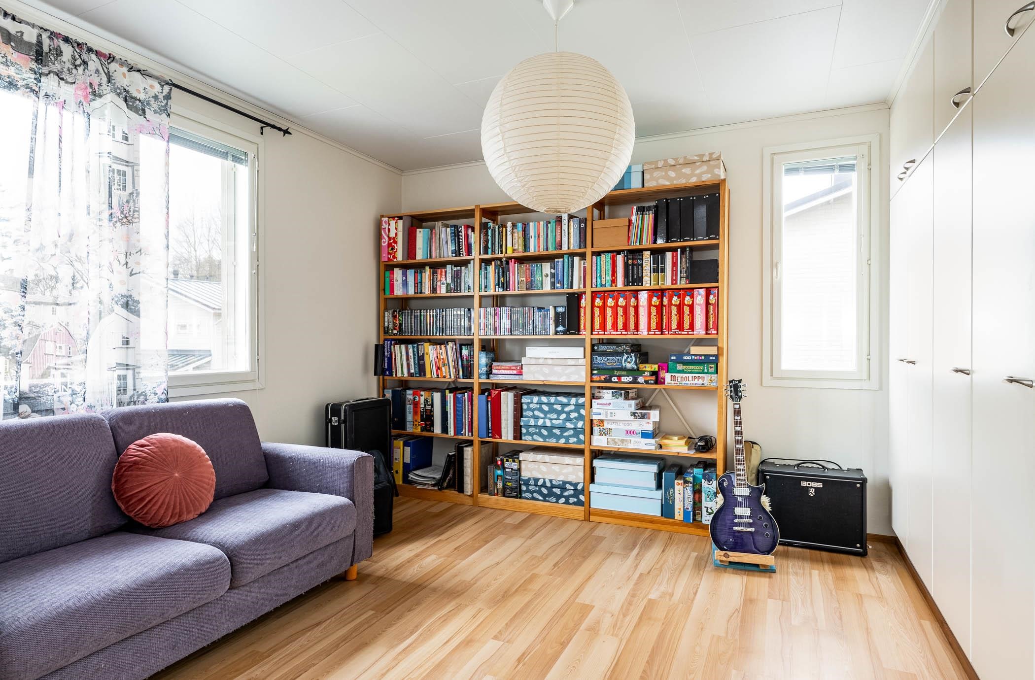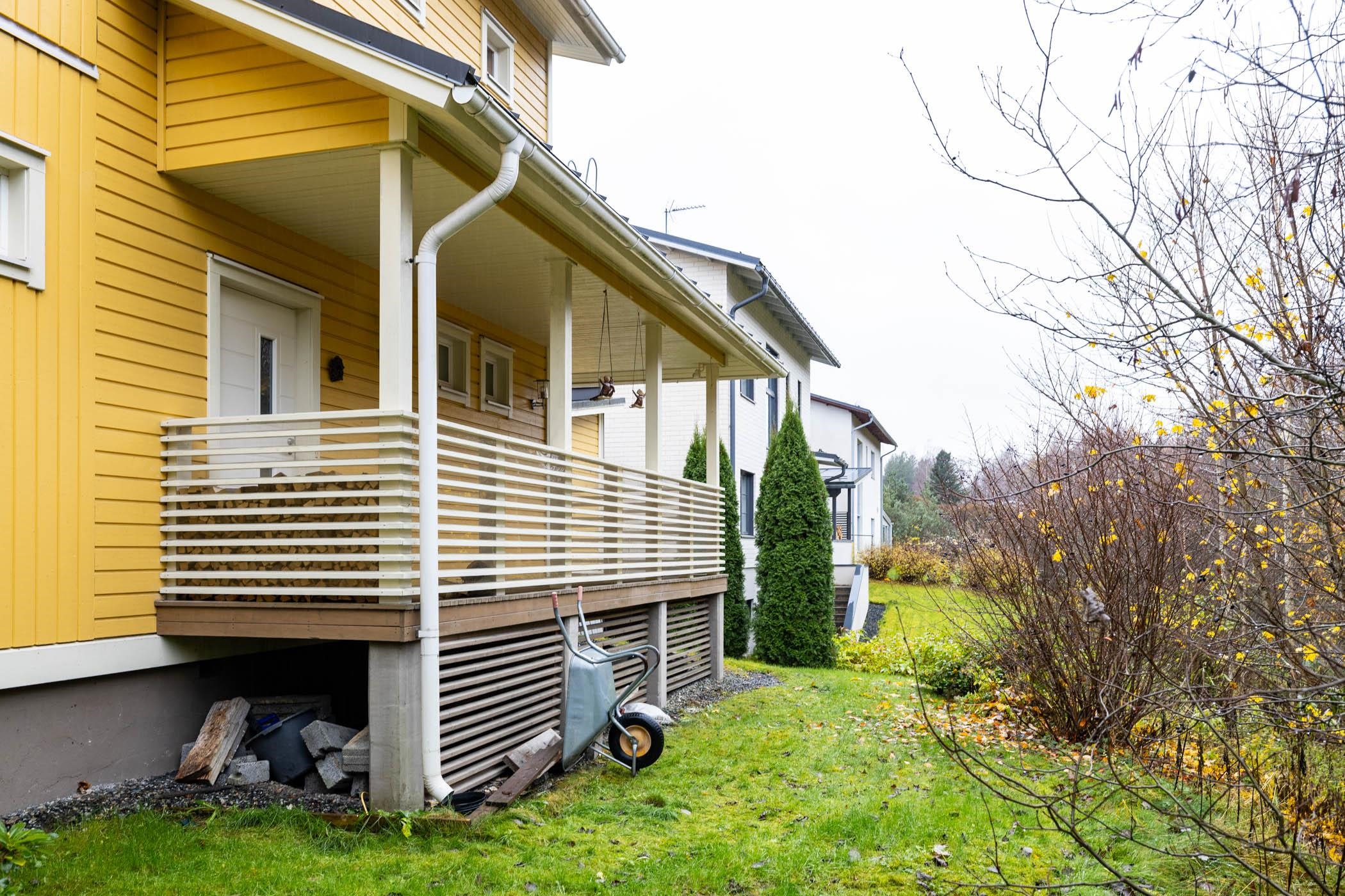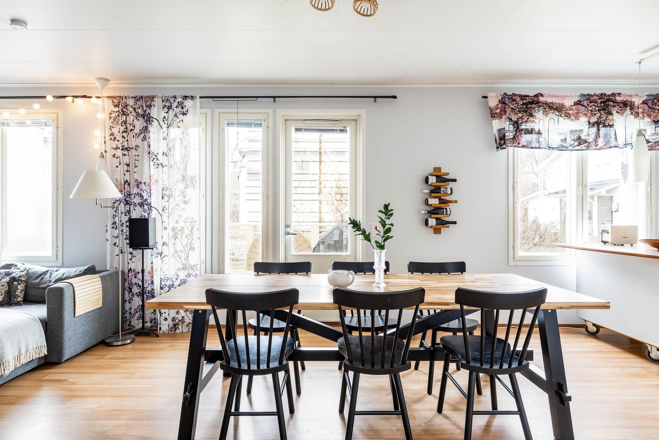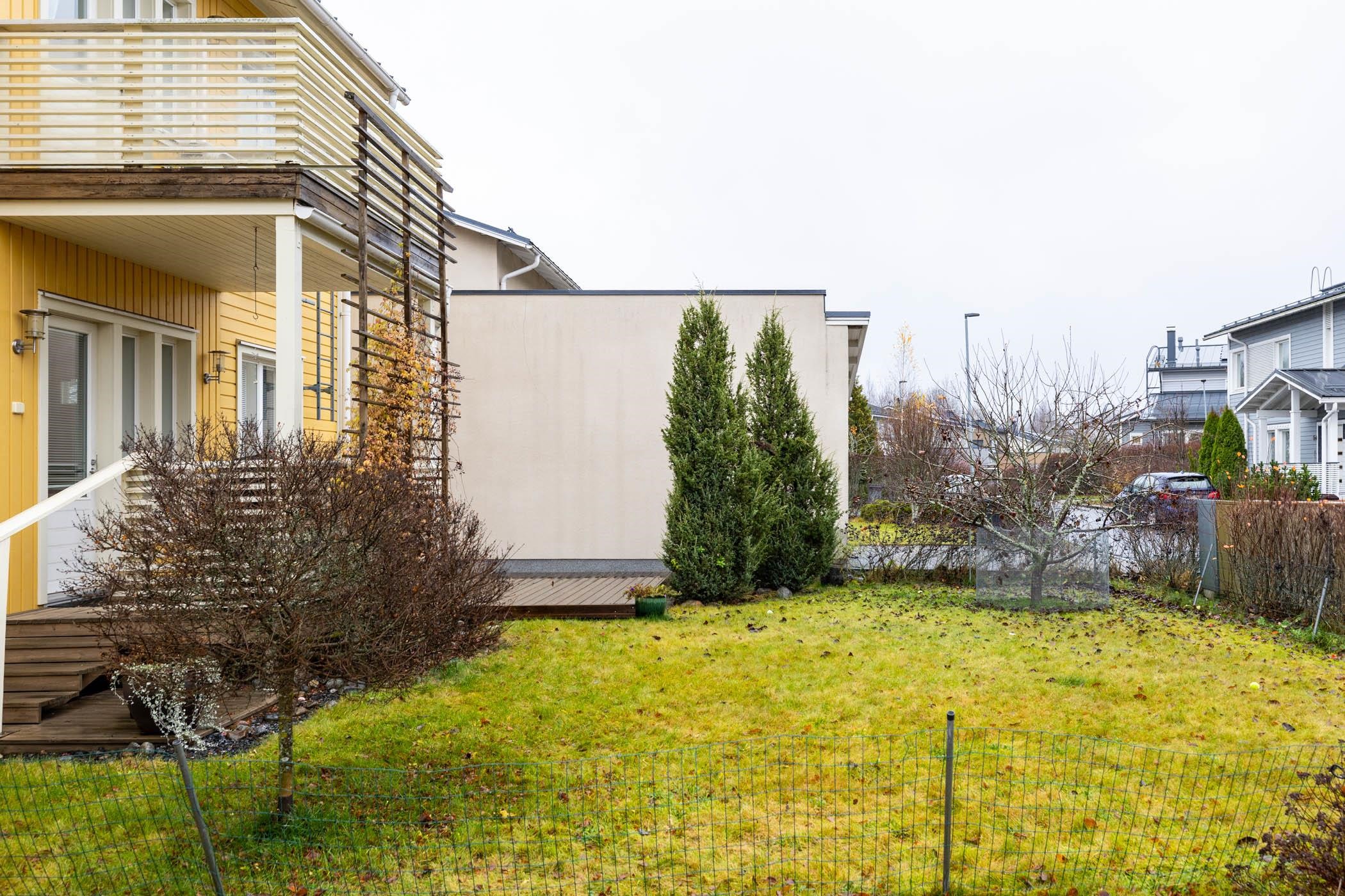 Omakotitalo puiston laidalla jossa tilaa, rauhaa ja toimivuutta Finninmäessä Tämä vuonna 2008 valmistunut omakotitalo sijaitsee Tampereen Finninmäessä, rauhallisella ja luonnonläheisellä alueella, jossa arki soljuu mukavasti kaupunkielämän ja metsänrauhan rajapinnassa. Tontti rajoittuu takapihan osalta puistoon, mikä tekee pihapiiristä erityisen suojaisan ja vehreän. Kodin tilaratkaisut on suunniteltu arjen sujuvuutta ajatellen. Alakerrassa avautuu valoisa olohuone, jonka yhteydessä on ruokailutila ja toimiva keittiö. Lisäksi löytyy yksi makuuhuone, wc/suihku sekä tilava eteinen. Yläkerrassa sijaitsee kolme makuuhuonetta, aulatila ja toinen wc, minkä lisäksi lämmin varasto ja tekninen tila tuovat käytännöllisyyttä asumiseen. Kokonaispinta-ala on 149,2 m², josta asuintilojen osuus on 144 m². Viiden huoneen kokonaisuus tarjoaa runsaasti tilaa niin perheelle kuin etätyöskentelyyn tai harrastuksiin. Kodin tunnelma, tilavuus ja sijainti tekevät tästä kohteesta harvinaisen yhdistelmän, täällä voit todella viihtyä. Tule tutustumaan ja ihastu Finninmäen rauhaan ja tämän kodin monipuolisiin mahdollisuuksiin!