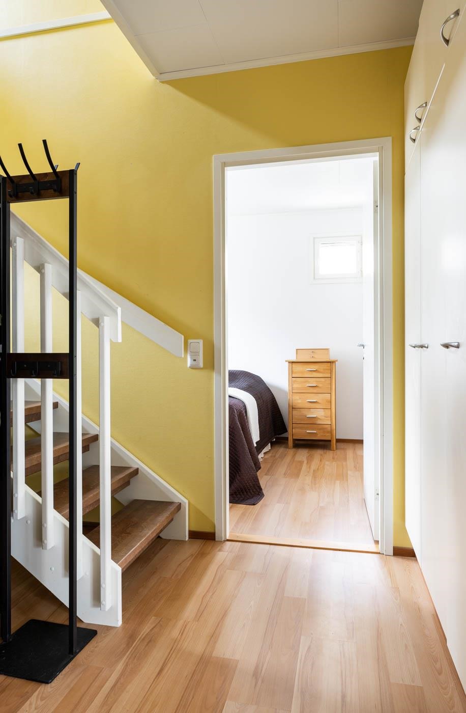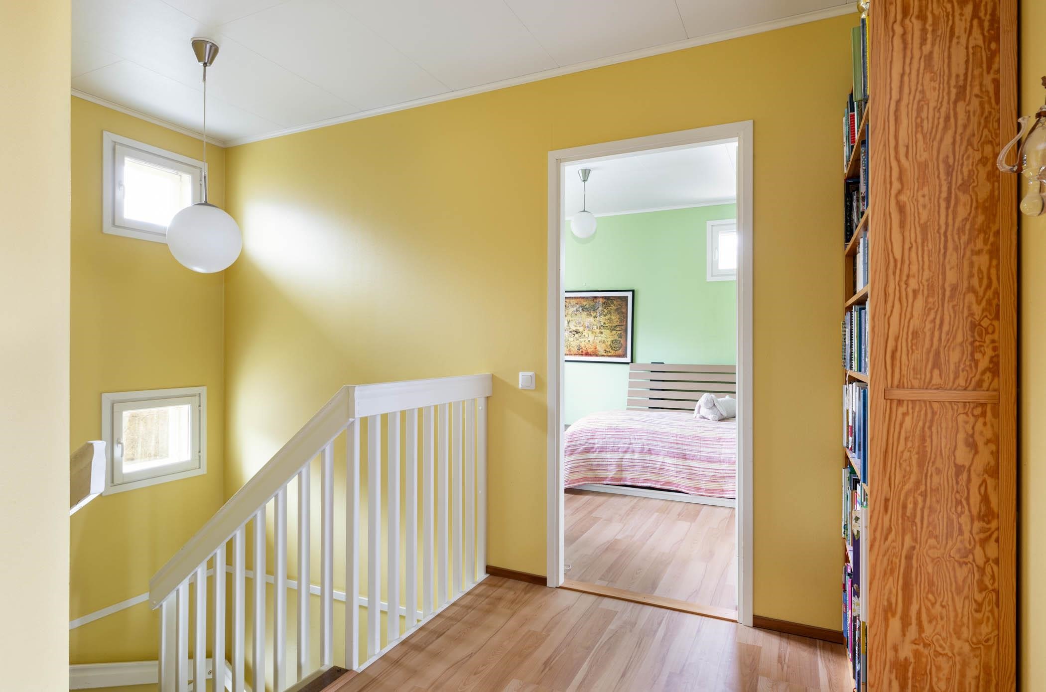 - Keittiö: Lattia laminaatti, seinä maalattu lasik tapetti. Olohuone: Lattia laminaatti, seinä maalattu lasik tapetti. Makuuhuone 1: Lattia laminaatti, seinä maalattu lasik tapetti. Makuuhuone 2: Lattia laminaatti, seinä maalattu lasik tapetti. Makuuhuone 3: ja 4 Lattia laminaatti, seinä maalattu lasik tapetti. Kodinhoitohuone: Lattiassa laatta, seinä lasik tapetti. Sauna: Lattia laatta, seinä paneli. Kylpyhuone: Lattapinnoin. Eteinen: Lattia laminaatti, seinä maalattu lasik tapetti. Wc: Laattapinnoin. Alakerta kph: Lattia ja seinät laattaa.