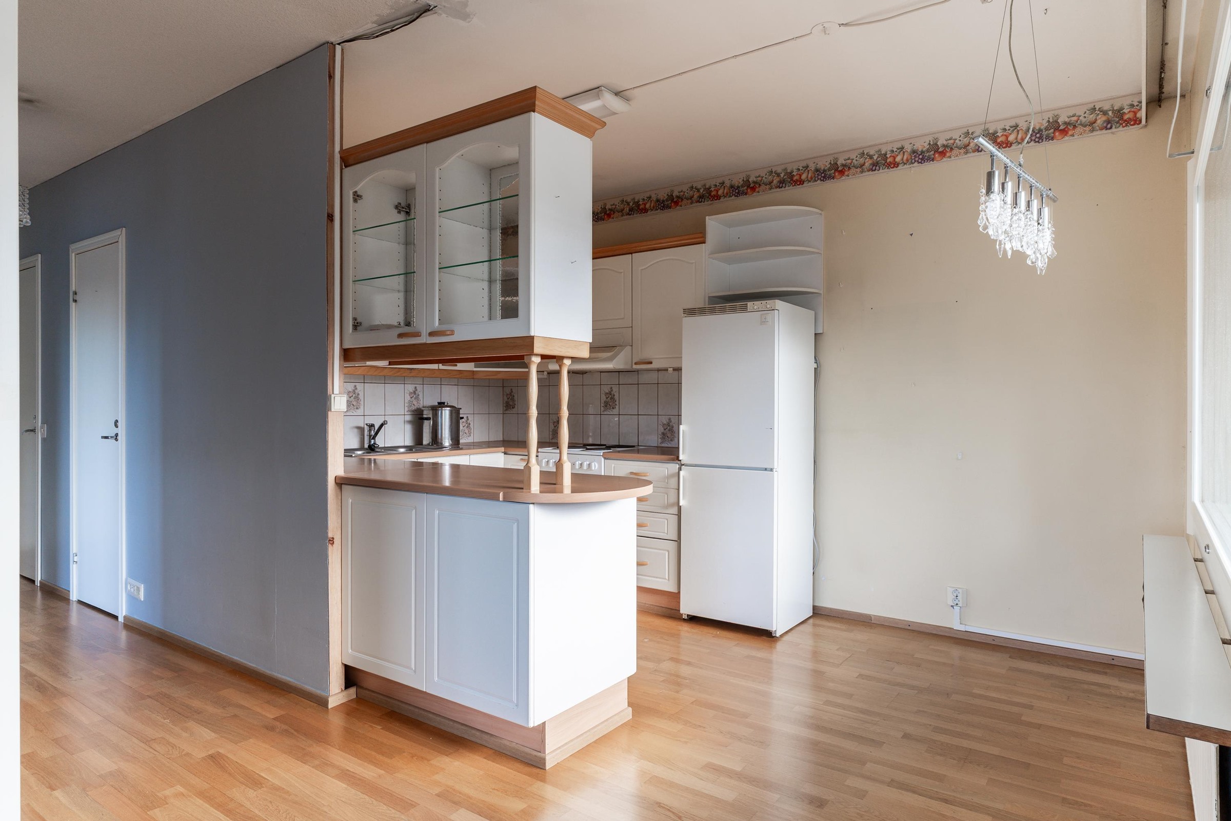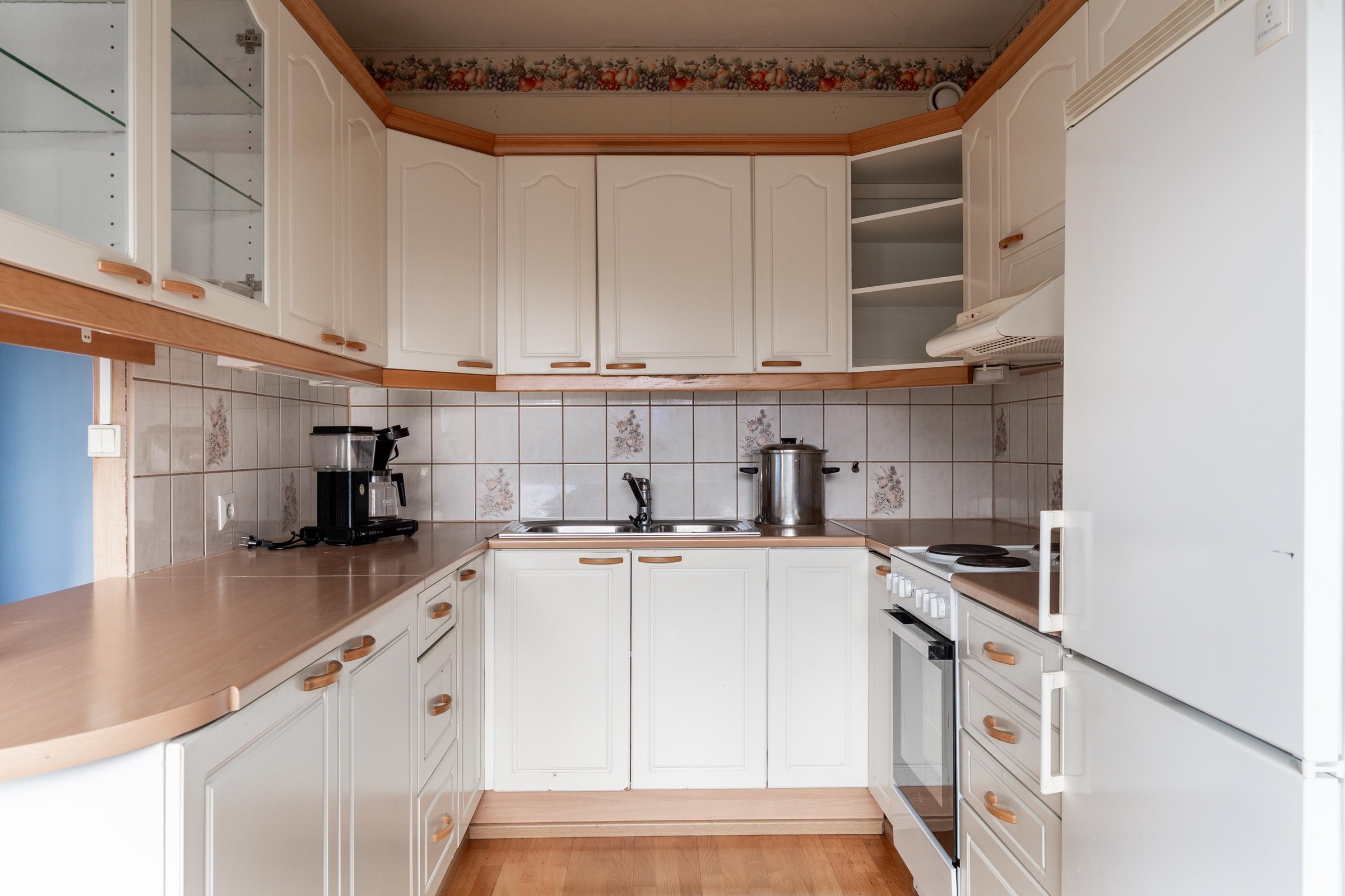 - Jääkaappipakastin, lattialiesi, liesituuletin, kaapistot.