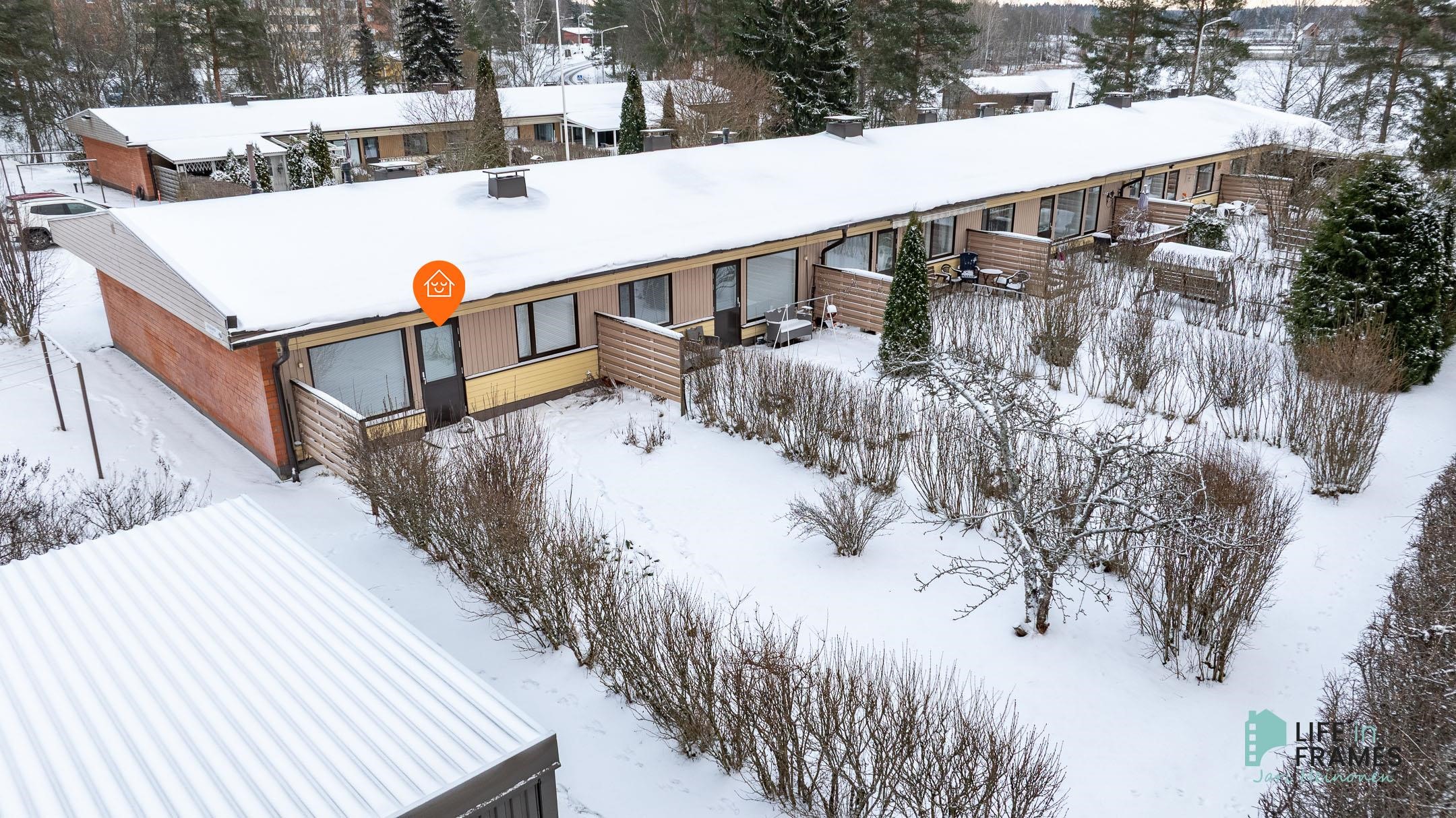 Vuonna 1978 valmistunut rivitalon päätyhuoneisto upeista jokimaisemista Sastamalan Äetsästä. Toimivapohjainen asunto, jossa asumismukavuutta lisäävänä tekijänä sauna sekä vaatehuone. Lisäksi takapiha on hyvänkokoinen ja suojaisa. Asunnolle kuuluu ulkovarasto sekä autolle sähköpistokepaikka. Kaukolämpö vesikiertoisilla pattereilla. Taloyhtiössä on vuosien 2002-2023 aikana toteutettu muun muassa ikkuna- ja oviremontti sekä käyttövesiputkiremontti. Lisäksi on uusittu bitumikate.