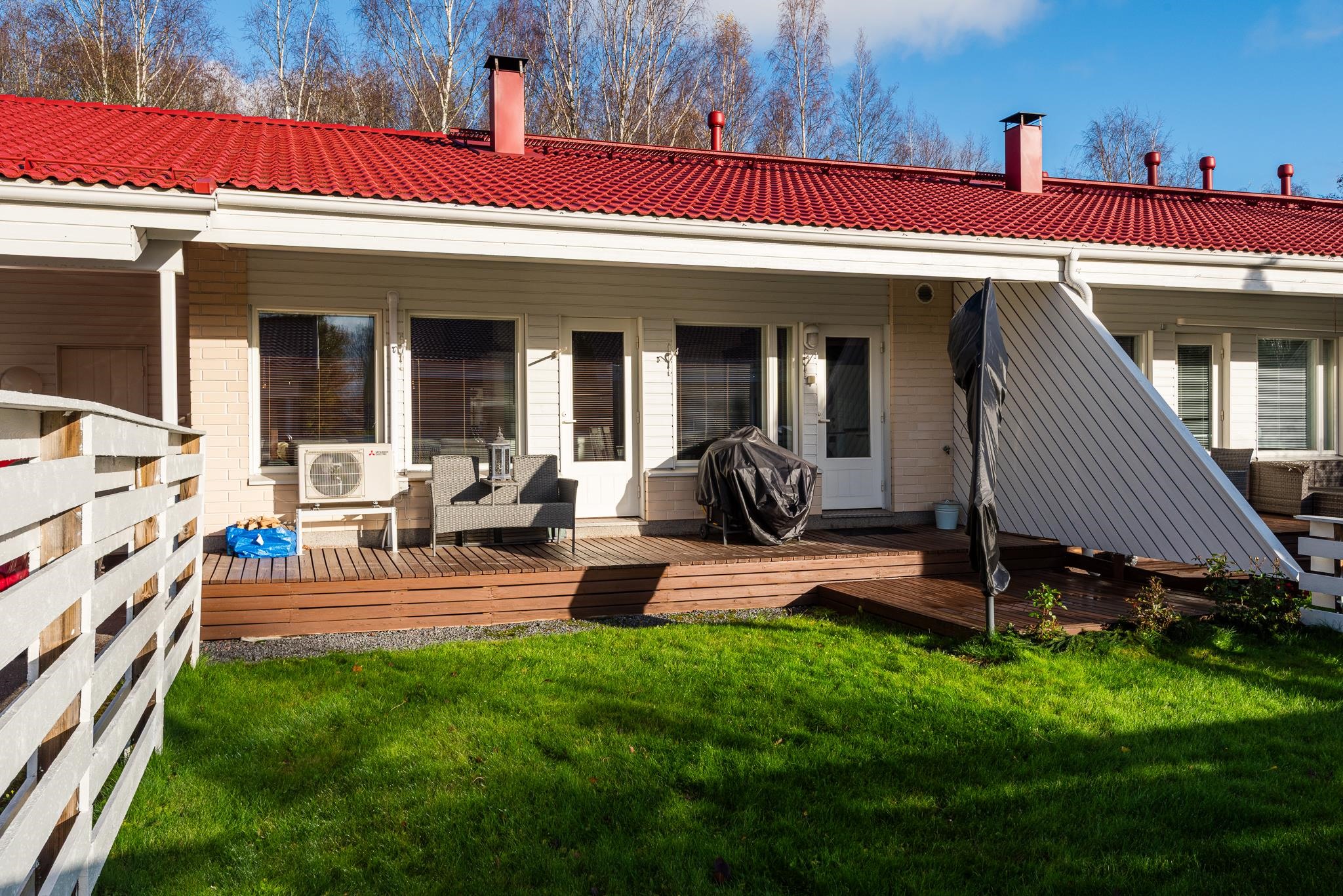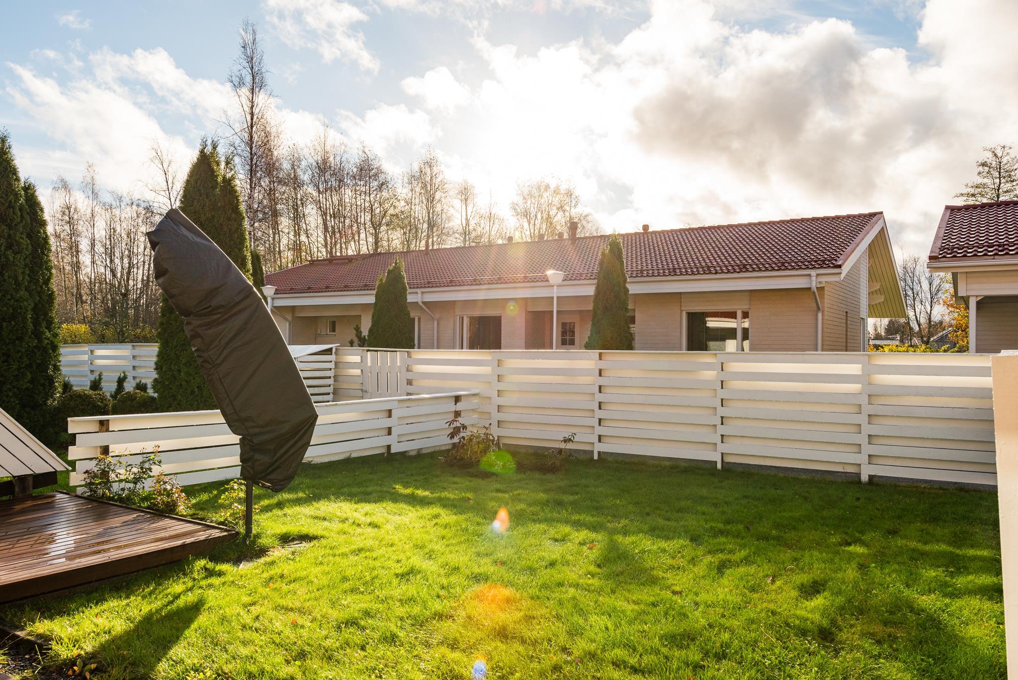 Tilava ja toimiva pohjaratkaisu tekee asumisesta helppoa ja mukavaa. Oma aidattu piha tarjoaa täydellisen paikan rentoutumiseen ja kesäpäivien viettoon.