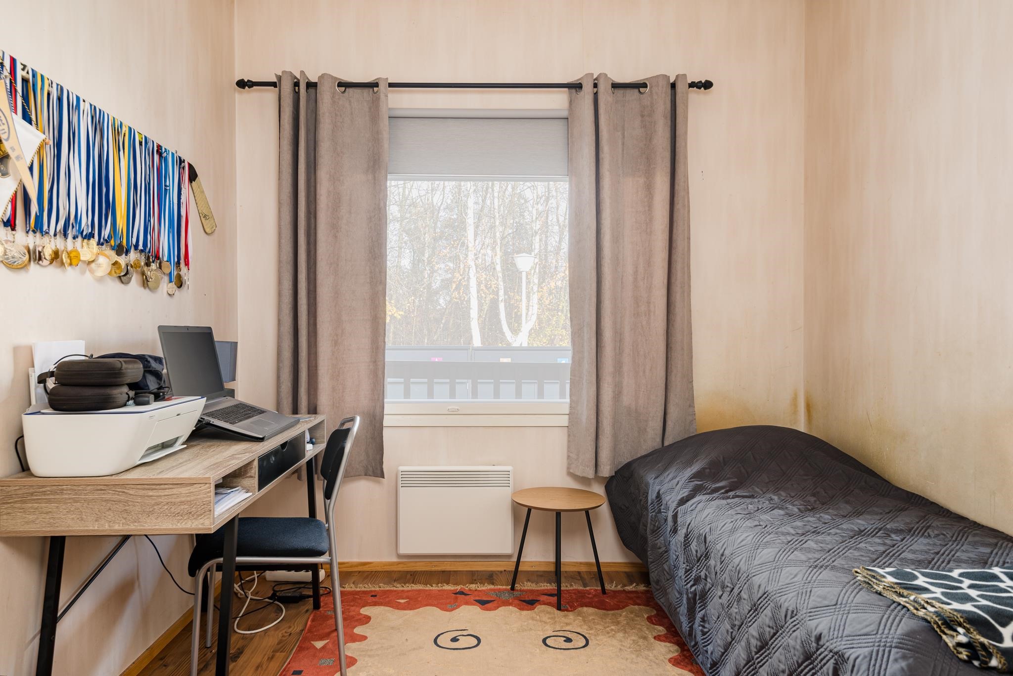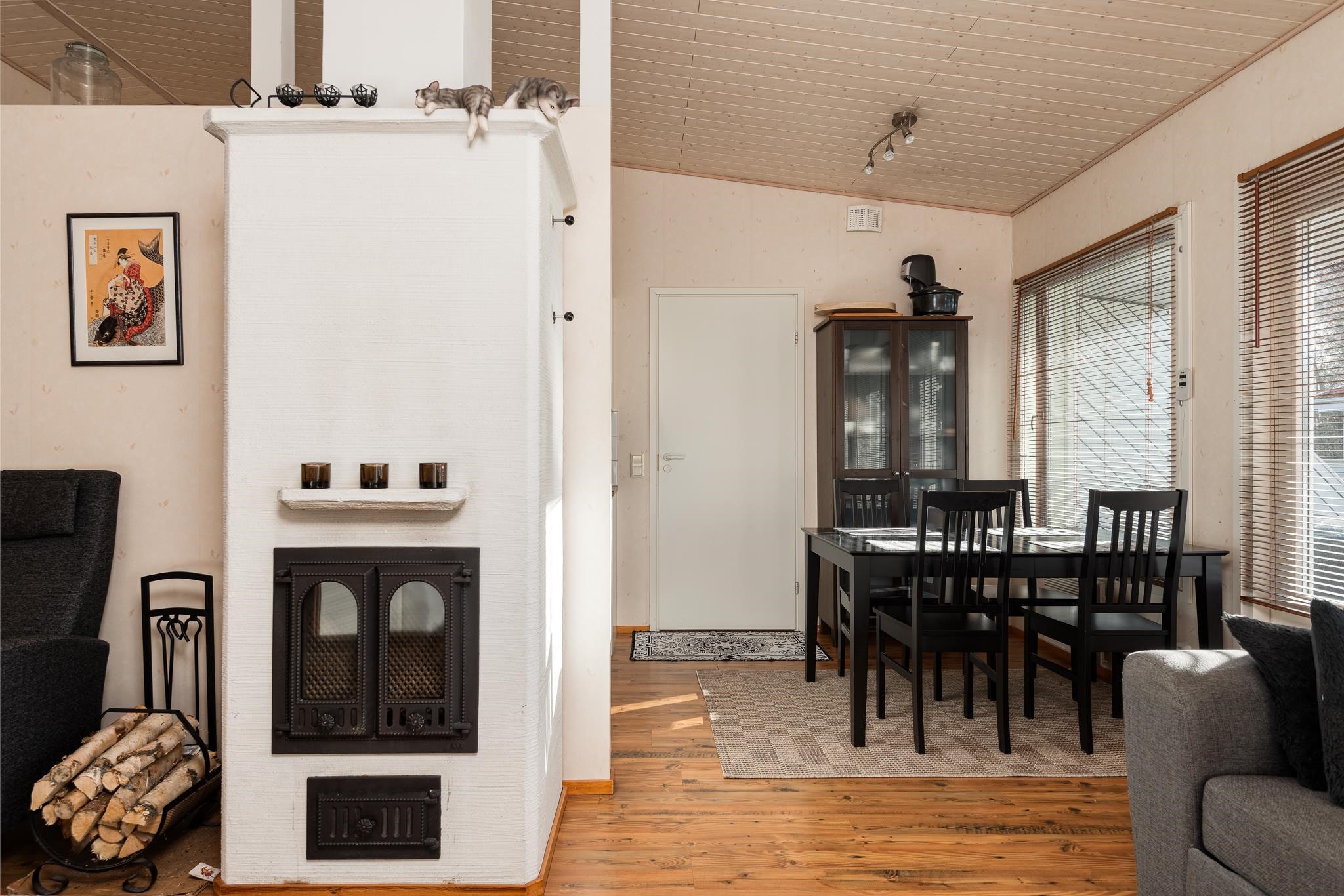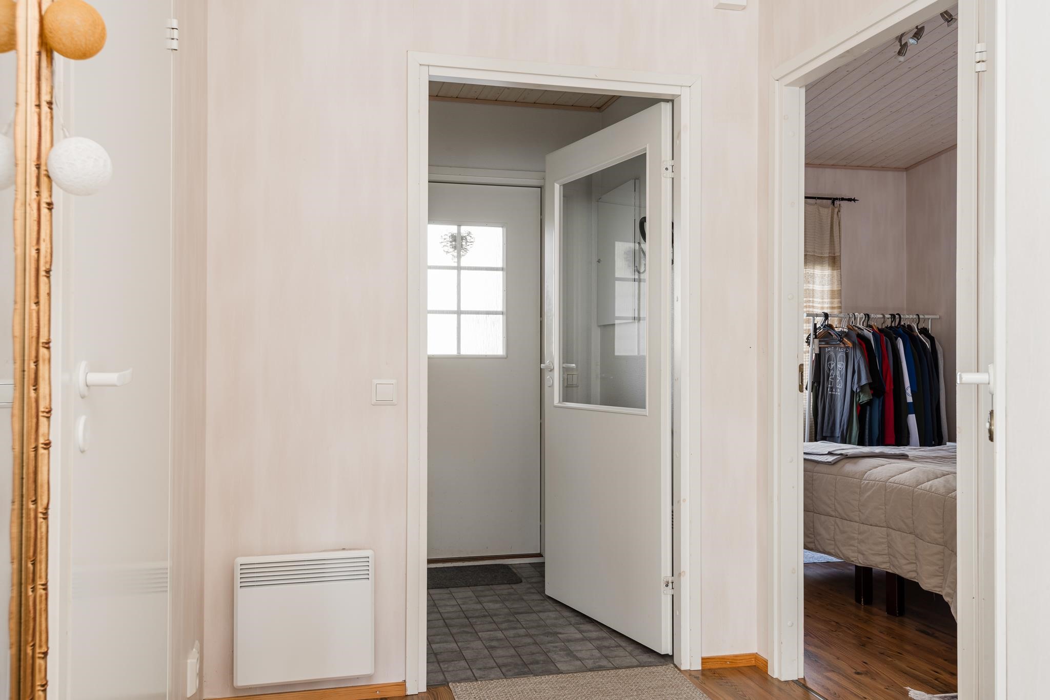 - Keittiö: Laminaatti. Olohuone: Laminaatti, tapetti. Makuuhuone 1: Laminaatti, tapetti. Makuuhuone 2: Laminaatti, tapetti. Kodinhoitohuone: Laatta, tapetti. Sauna: Laatta, paneeli. Kylpyhuone: Laatta, laatta. Eteinen: Laminaatti, tapetti. Wc: Laatta, laatta. Tuulikaappi: Laatta, tapetti.