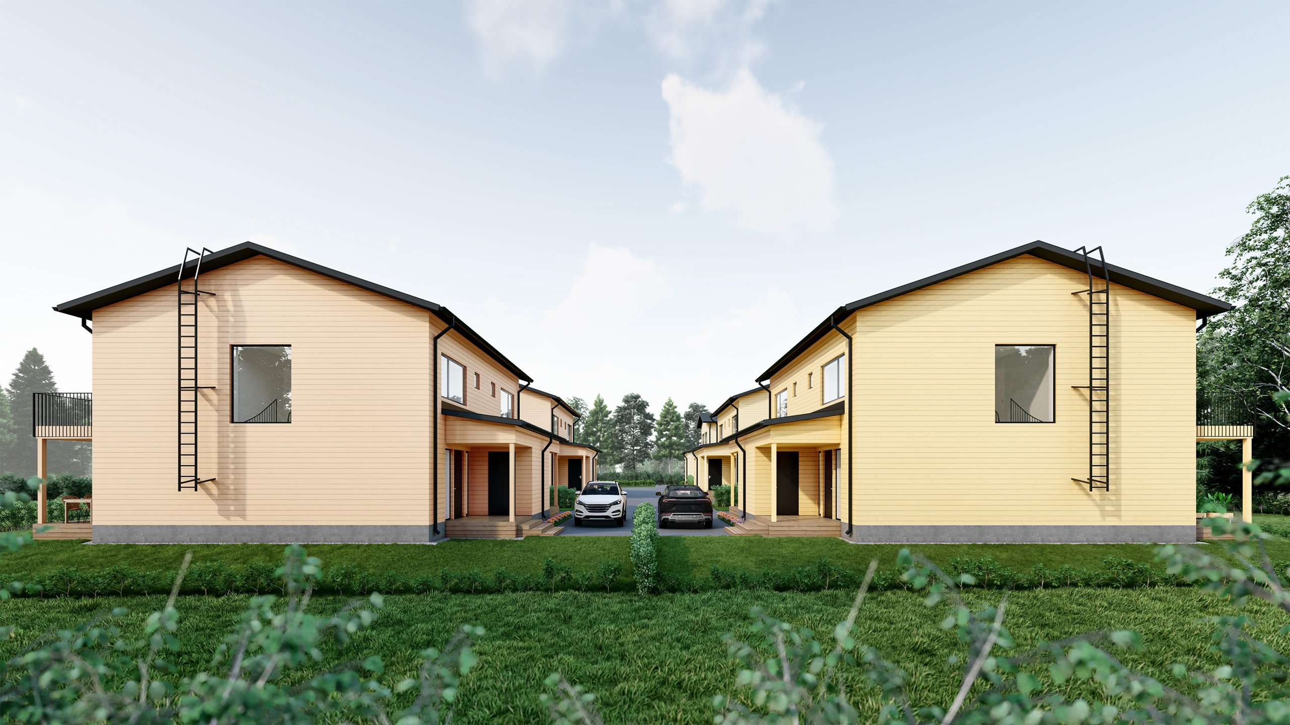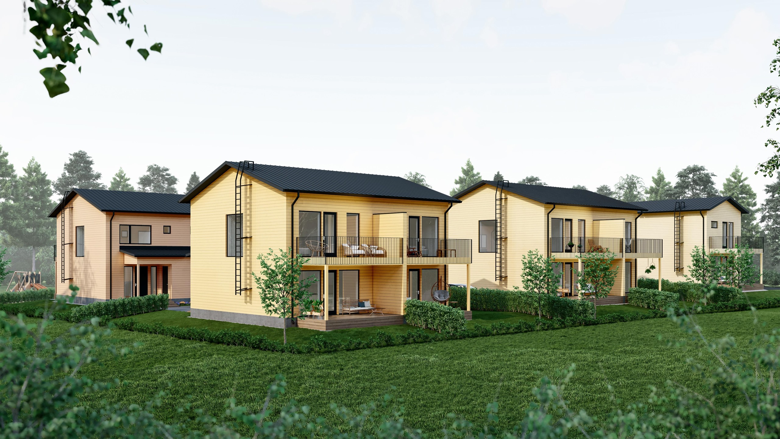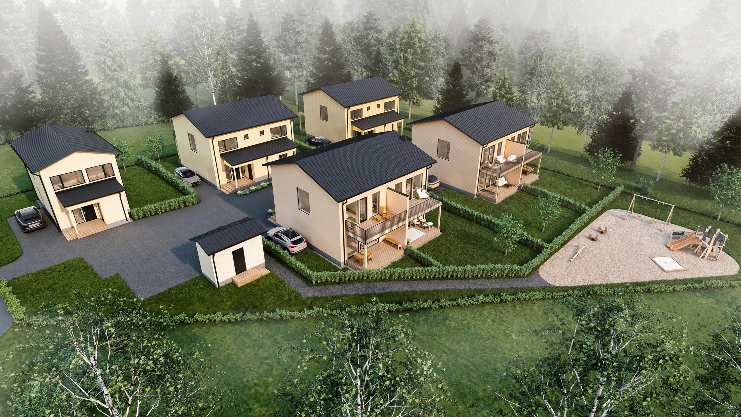 - Puu. Rakennukset toteutetaan maanvaraisella betoniperustuksella ja alapohjat maanvarainen valubetonilattia. Rakennusten ulkoseinät ovat lämpötaloudellisia puurakenneseiniä, joissa eristevahvuus on 250 mm. Julkisivut ovat puuverhoiltuja.