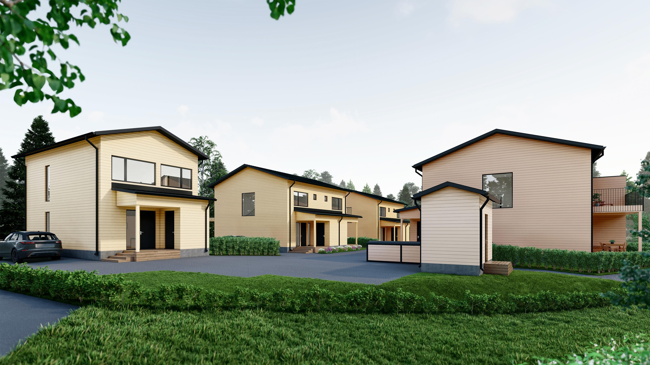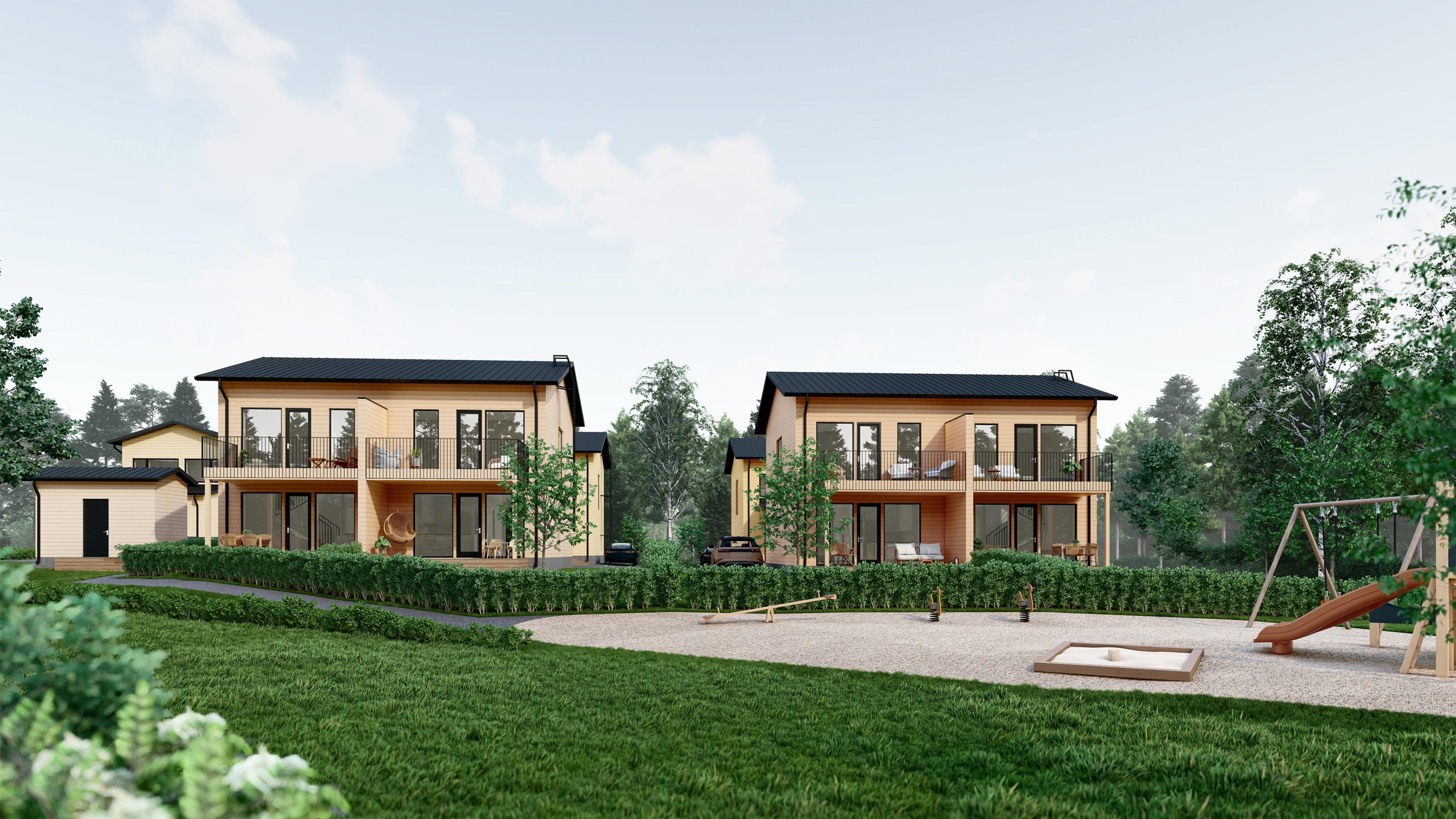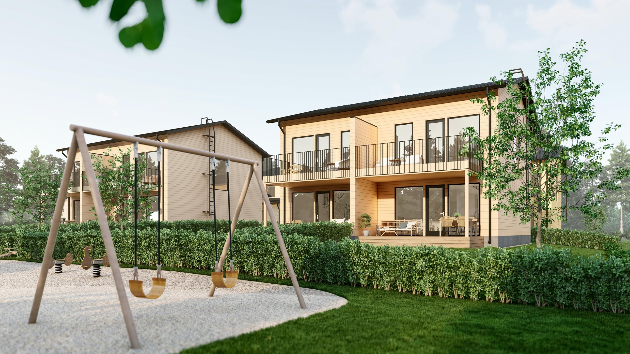 Jokaisella asunnolla on oma katettu terassi, parveke ja piha-alue. Terassin voi halutessaan lasittaa lisätyönä, jolloin siitä saa viihtyisän oleskelutilan varhaisesta keväästä pitkälle syksyyn. Lisäksi jokaiseen asuntoon kuuluu kaksi piha-autopaikkaa ja varaus sähköauton latauspisteelle. Sisäänkäynnin yhteydessä on oma ulkovarasto, ja taloyhtiön yhteiselle pihalle rakennetaan leikkipaikka perheen pienimmille.