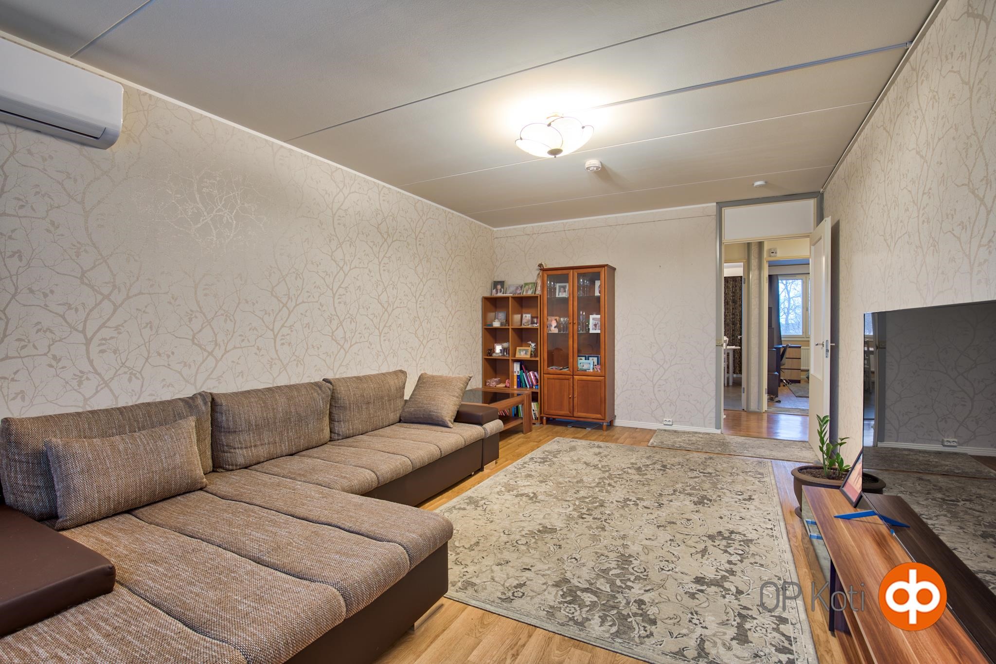 Läpitalon asunto kätkee sisälleen järkevän pohjaratkaisun. Sisään astutaan tilavaan eteiseen, josta löytyy kiinteää kaappitilaa ja naulakkoa takeille ja kengille. Keittiö on oma tilansa. Valkoiset kaapistot kiertävät kahdella seinälle ja ruokapöytä sijoittuu luontevasti ikkunan alle. Olohuone on sekä hyvänmallinen että kokoinen. Tila on helppo sisustaa oman maun mukaiseksi, täältä löytyy lisäksi viilentävä ilmalämpöpumppu asumismukavuutta lisäämään. Olohuoneen kautta käy kulku lasitetulle parvekkeelle, joka on ehdottomasti yksi kodin parhaita puolia. Sinne mahtuu loistavasti oleskeluryhmä, jossa voi istua rauhassa aamukahvia siemaillen. Makuuhuoneita on kaksin kappalein. Kylpyhuone on remontoitu laattapinnoin.