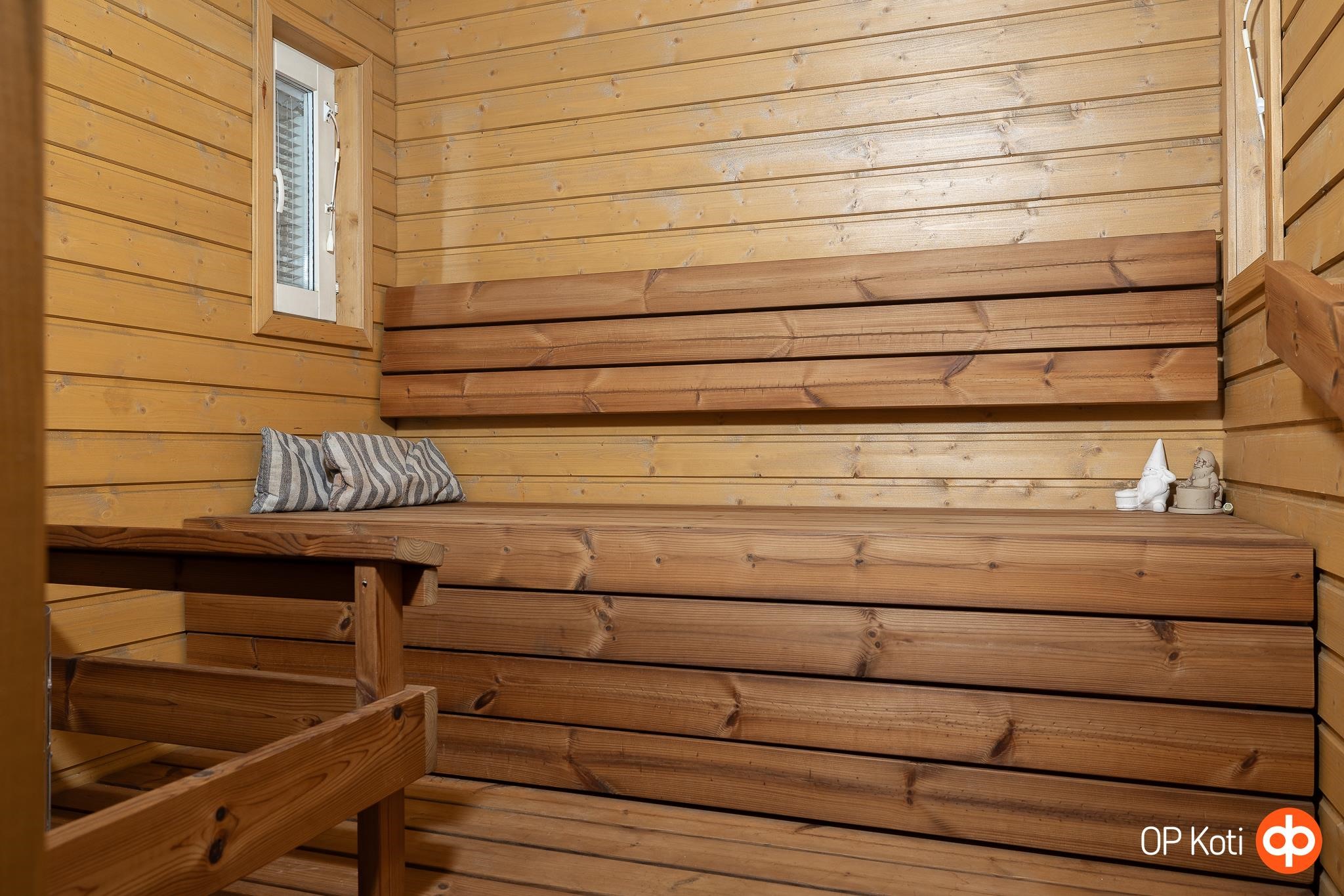 - Sauna, sähkökiuas, kylpyhuone, erillinen wc, suihku, suihkuseinä, peilit, peilikaappi pesuhuoneessa, kaapit, allaskaappi, pesukoneliitäntä, lattialämmitys, kiinteät valaisimet. kph:ssa wc-istuin