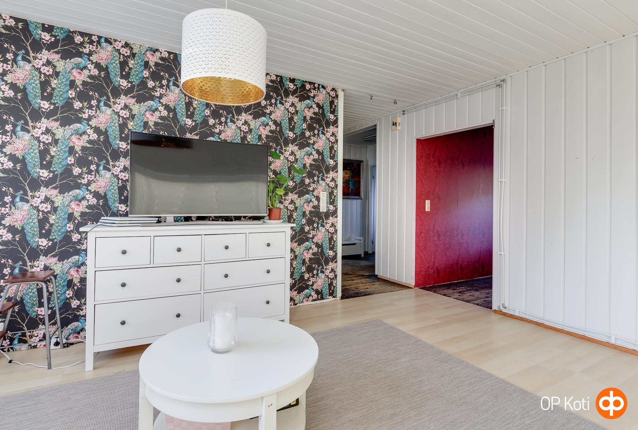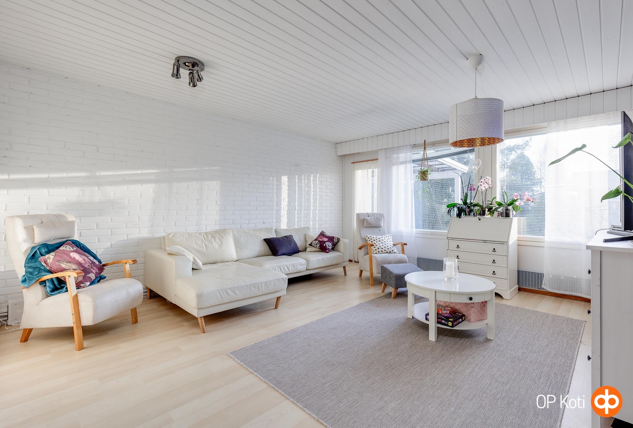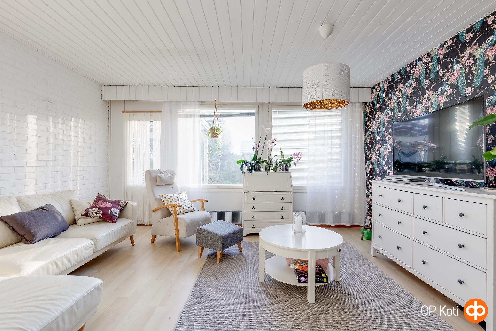 Kodin pohjaratkaisu on suunniteltu järkevästi, ja tilavat huoneet luovat puitteet viihtyisälle elämälle. Erilliseen keittiöön mahtuu ruokailemaan ja ison olohuoneen uusittu lattia tuo lämpöä ja tyylikkyyttä tilaan. Vuonna 2017 remontoidut kylpyhuone ja sauna tarjoavat rentouttavat puitteet arjen kiireiden keskellä. Saunan pukuhuoneessa on myös takka tuomassa tunnelmaa ja lämpöä.