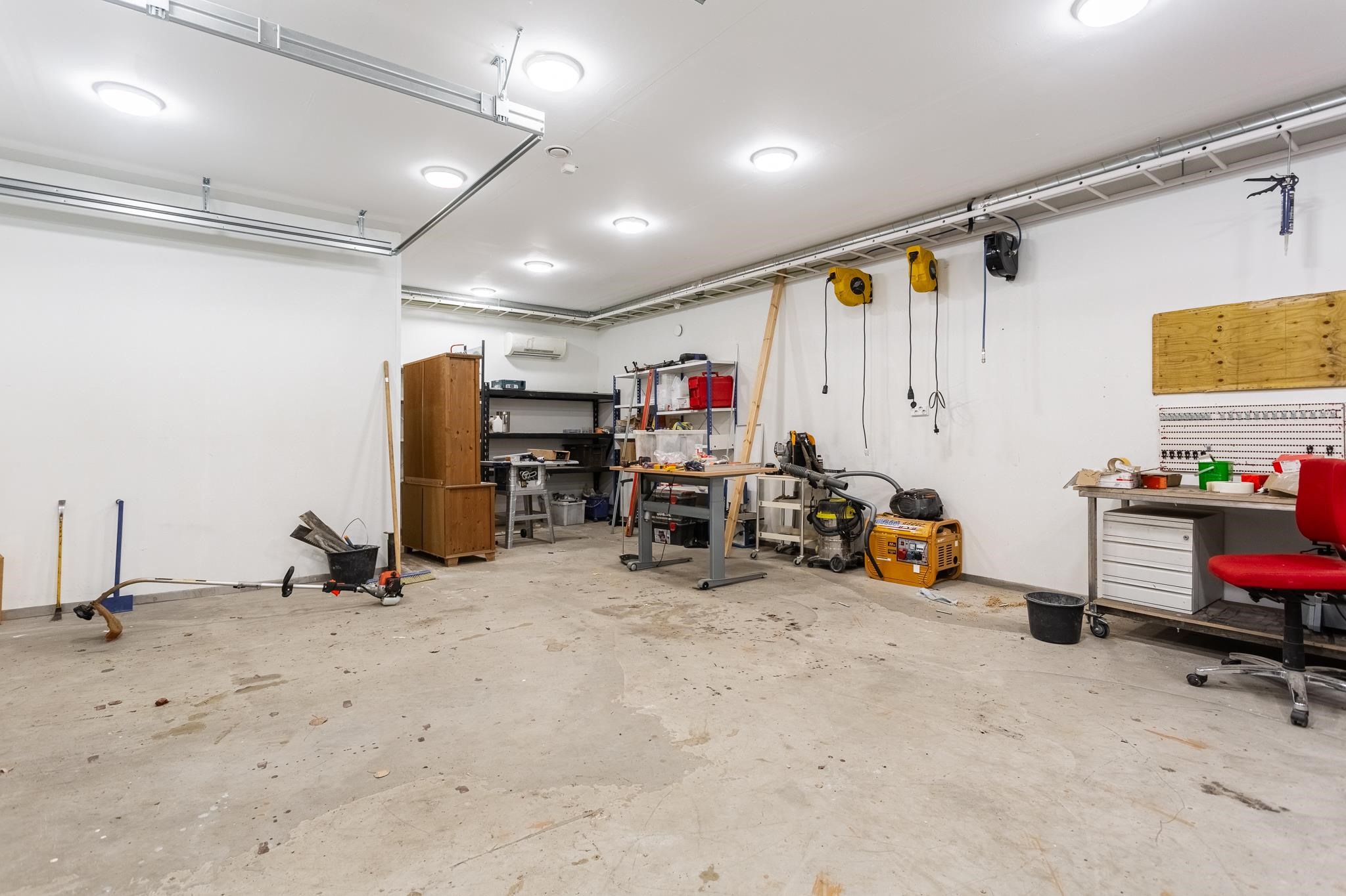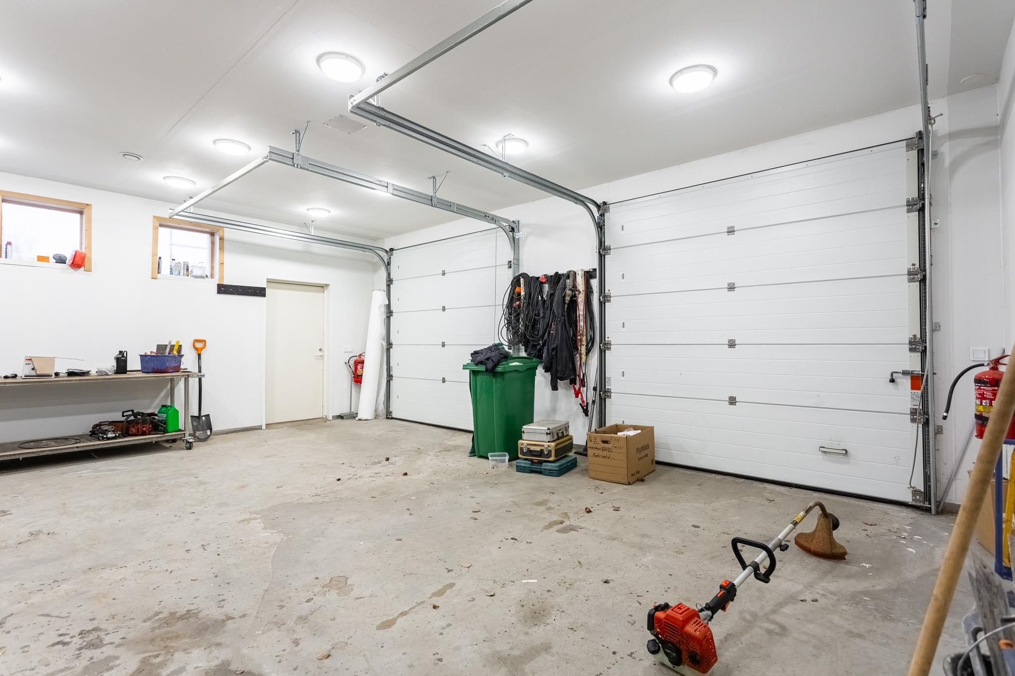 Rakennus koostuu avoimesta hallitilasta kahdella nosto-ovella ja erillisestä pienestä varastotilasta. Hallitilaan myös erillinen kulku sivuoven kautta.