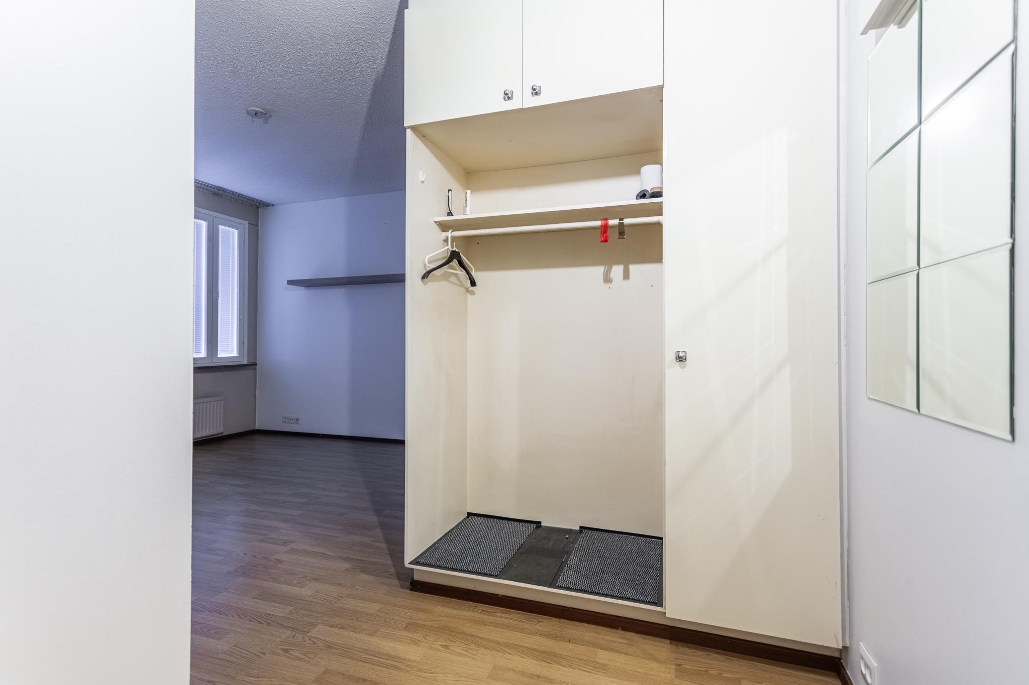 Perussiisti toisen kerroksen valoisa yksiö. Asunnossa oleskelutila alkovilla, keittiö, pesuhuone ja vaatehuone.