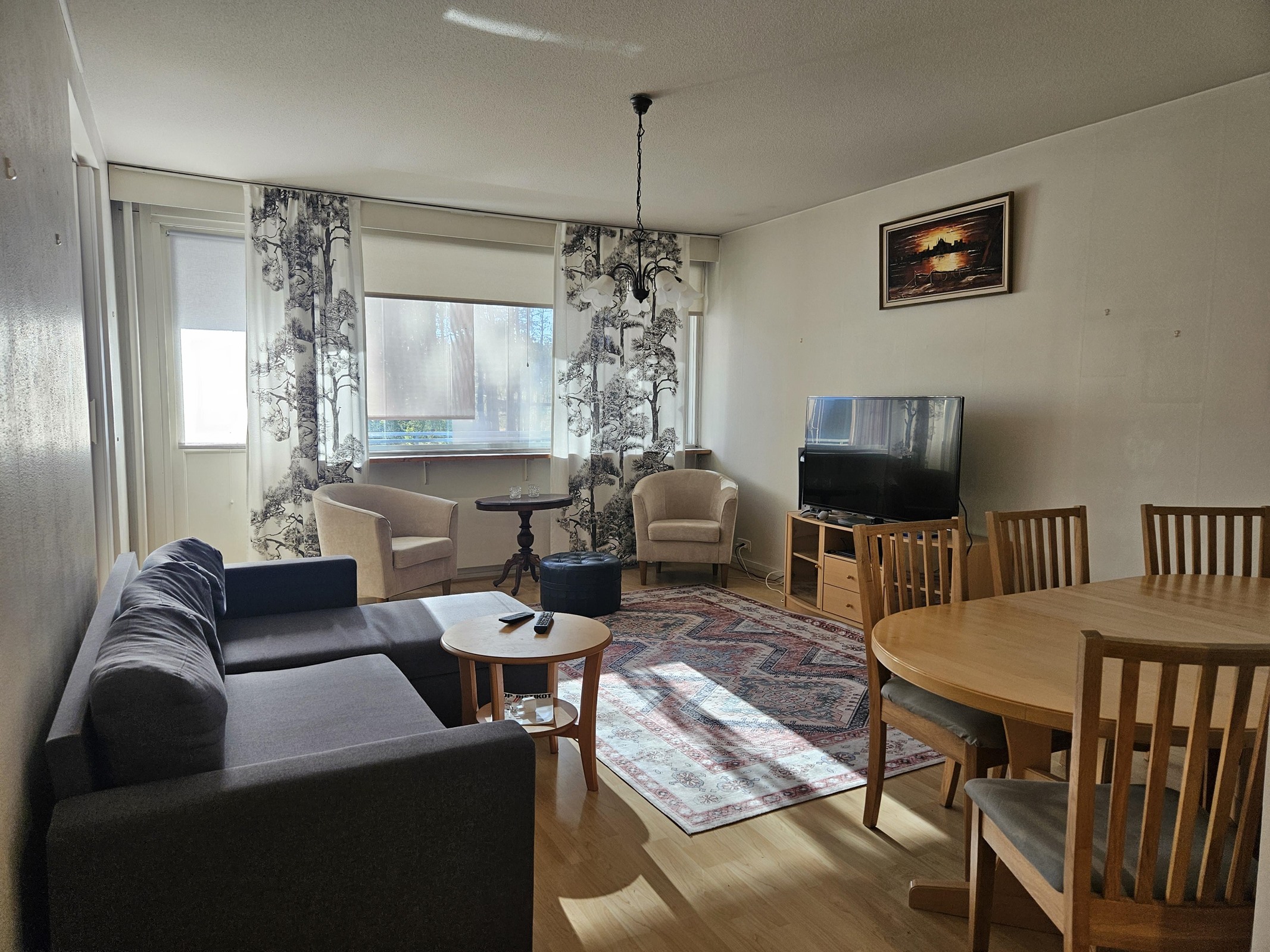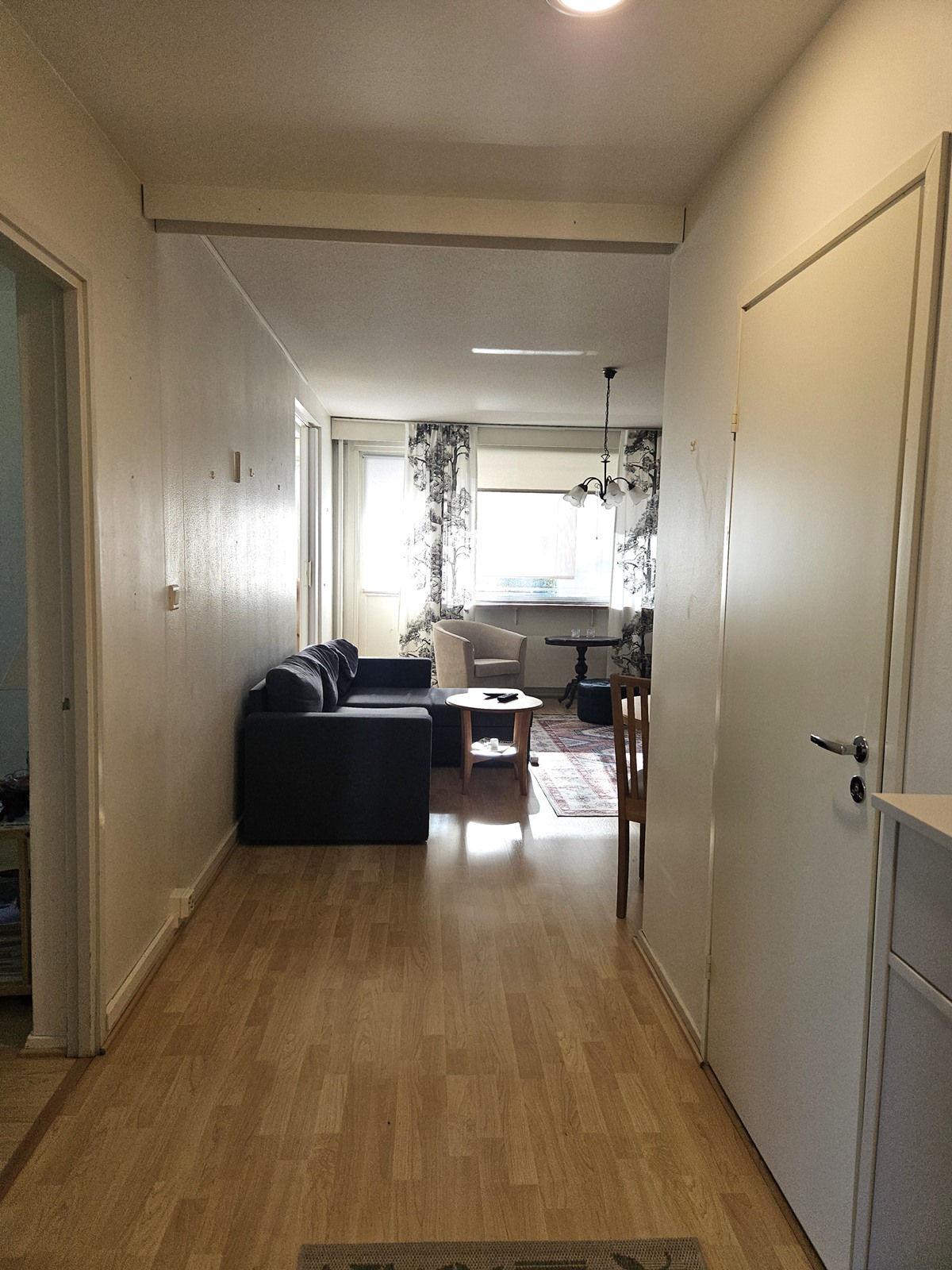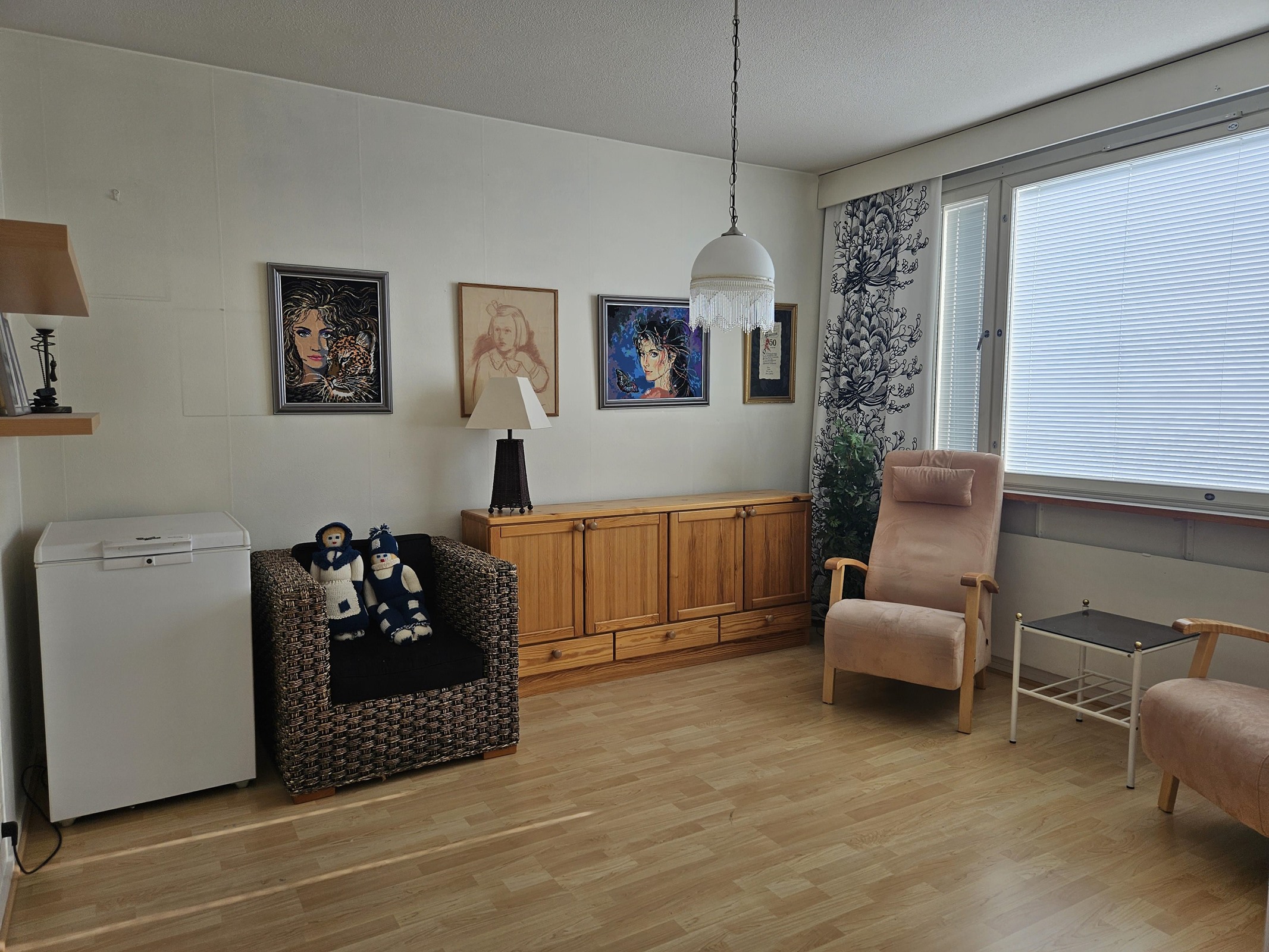 Keittiö: parketti, maali. Olohuone: parketti, maali. Makuuhuone 1: parketti, maali. Makuuhuone 2: parketti, maali. Kylpyhuone: laatoitettu. Eteinen: parketti, maali.
