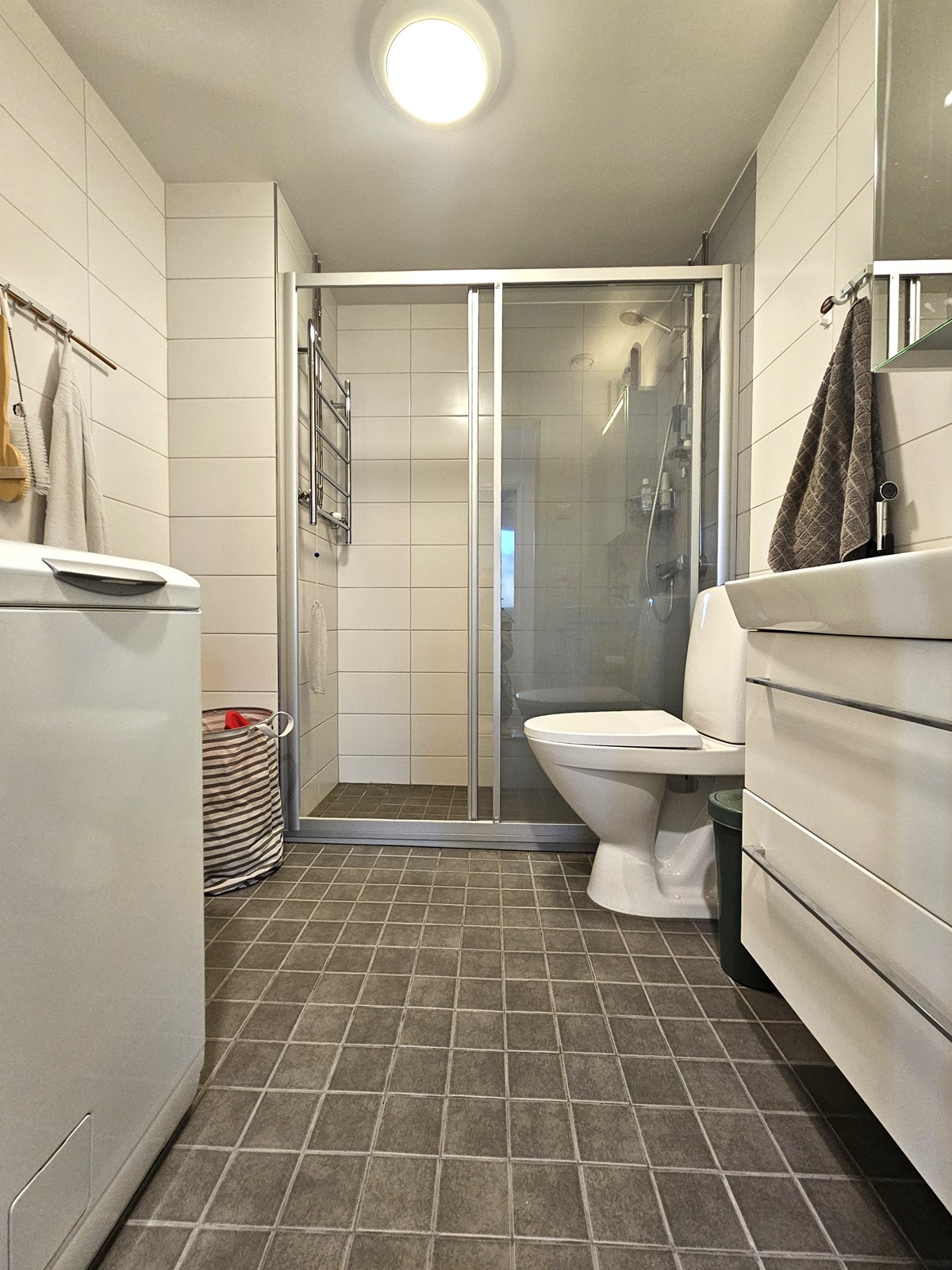 - Kylpyhuone, suihku, suihkuseinä, peilikaappi, allaskaappi, pesukoneliitäntä, lattialämmitys. kylpyhuone saneerattu putkiremontin yhteydessä
