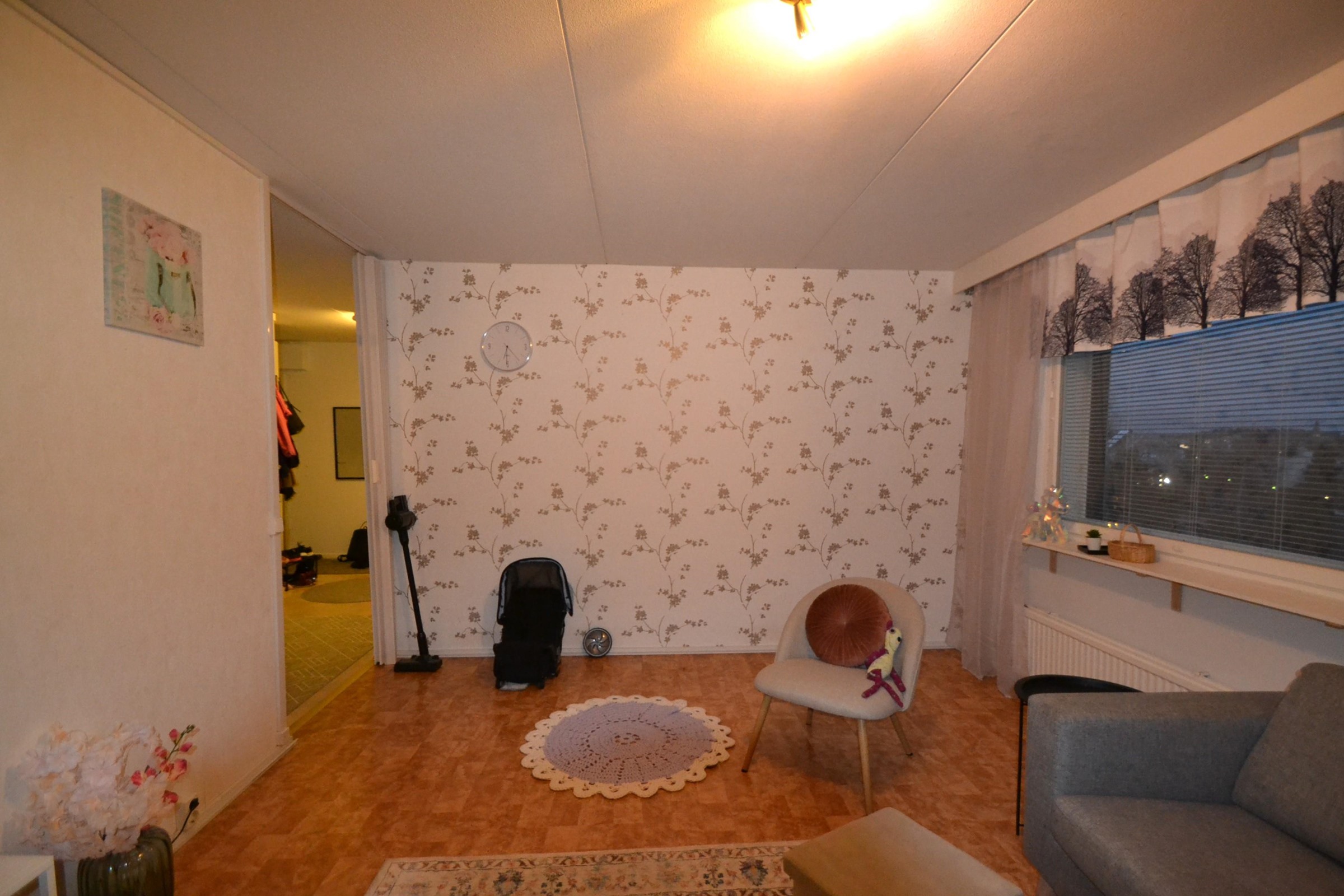 Huoneisto: Muovimatto, maali, tapetti. Kylpyhuone: Laatta, laatta.
