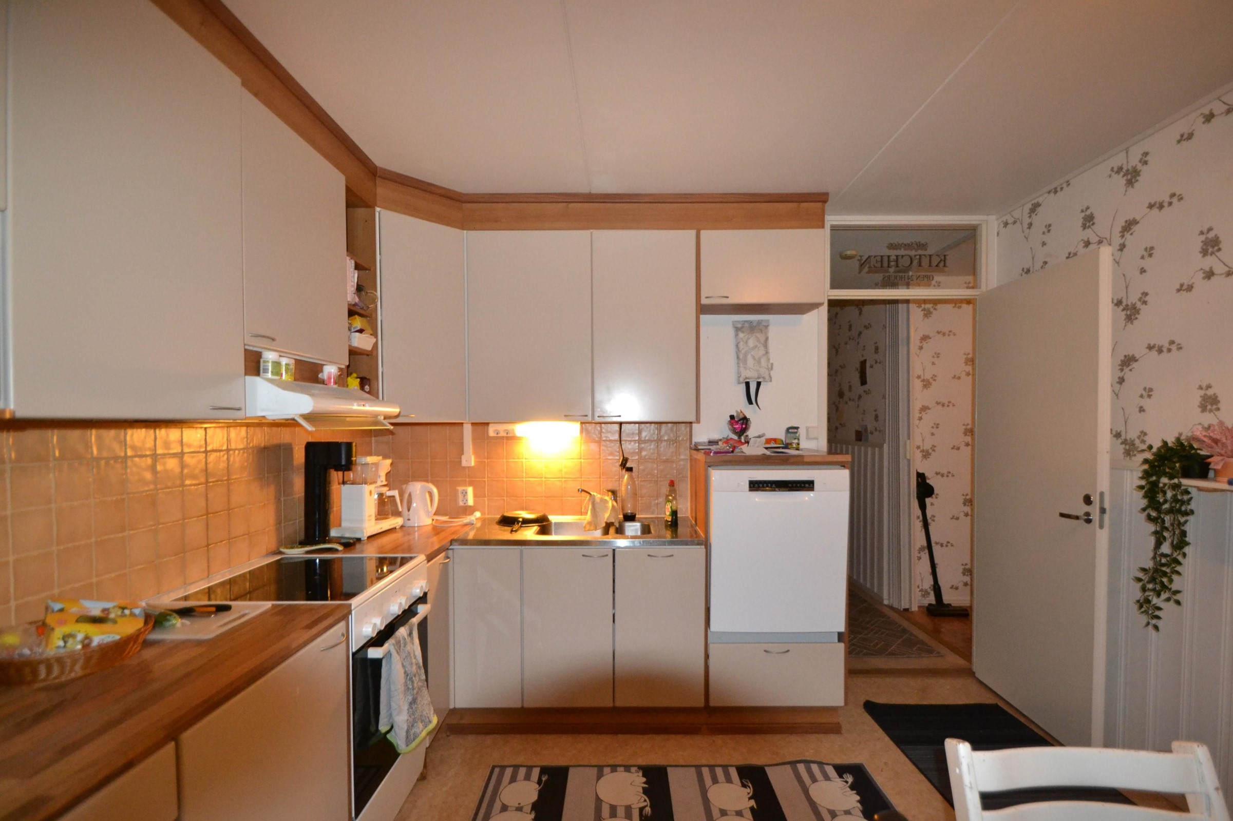 - Jääkaappipakastin, keraaminen liesi, liesituuletin, mikroaaltouuni, astianpesukone, kaapistot.