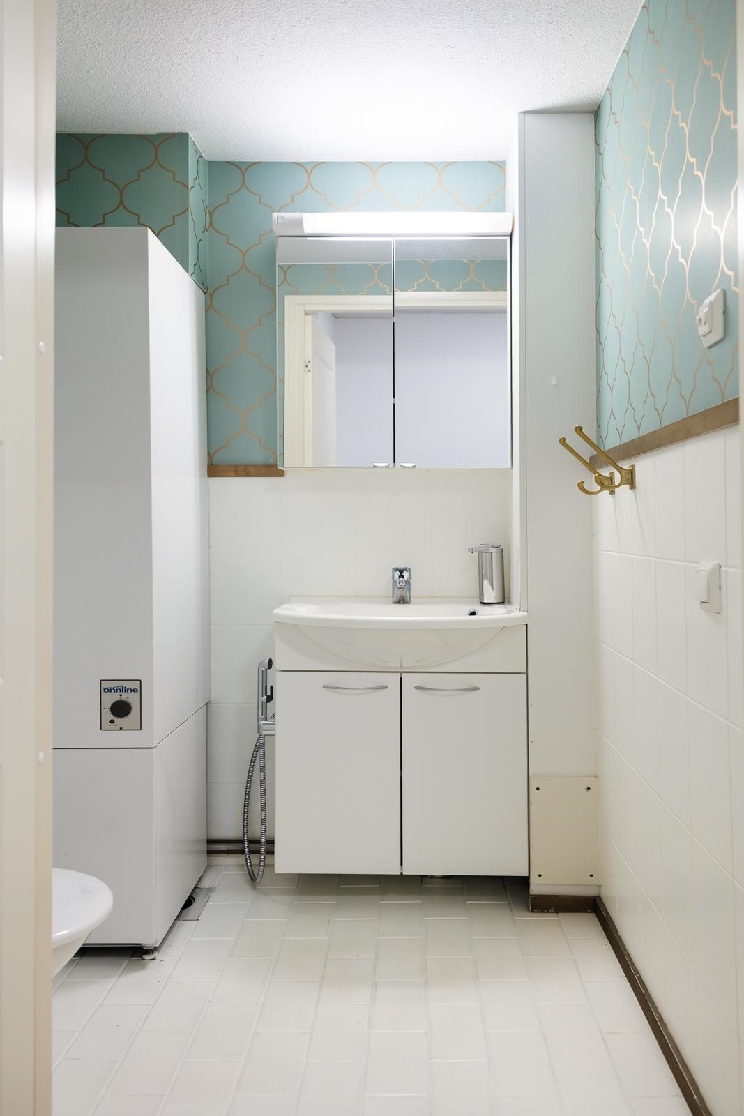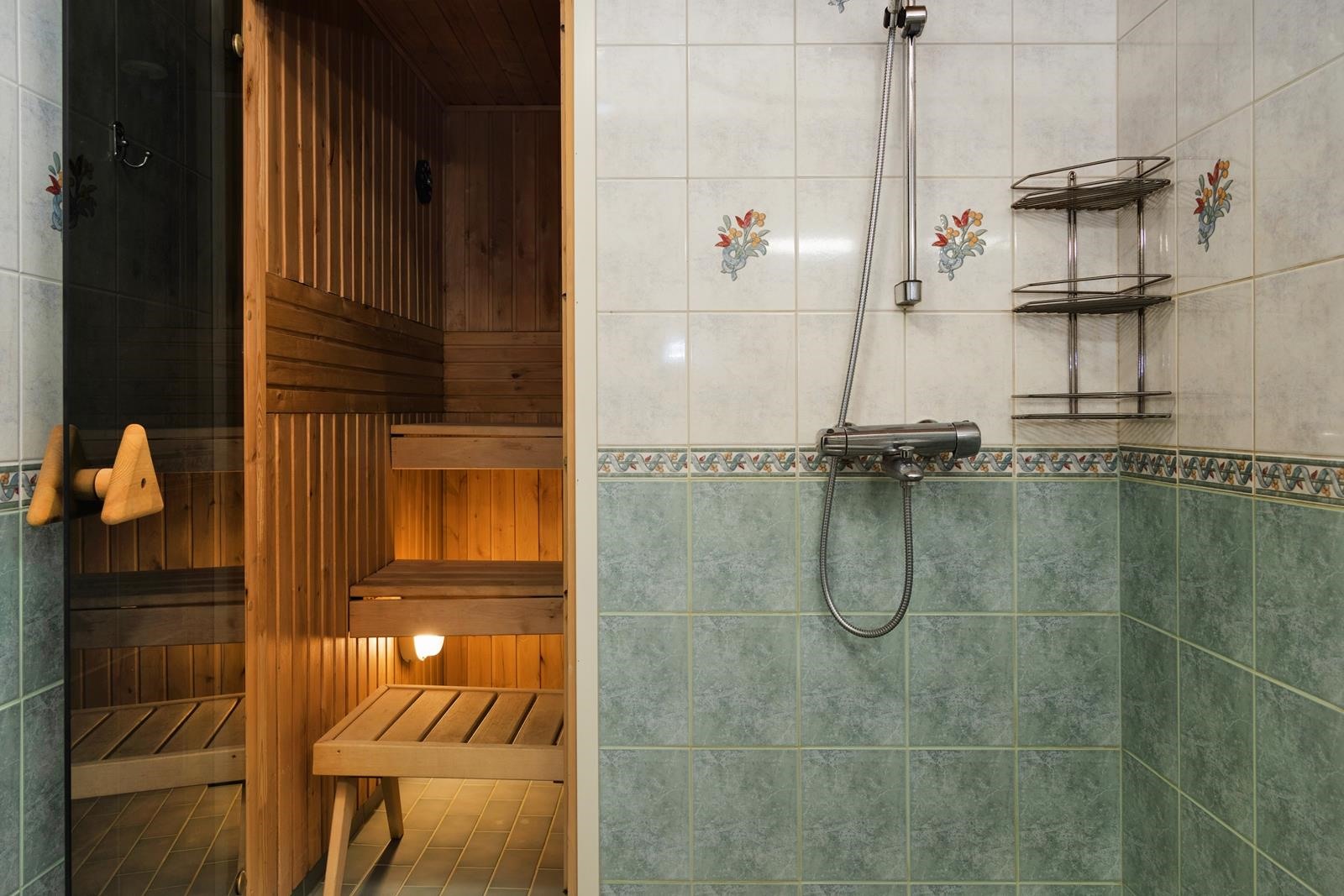 - Sauna, sähkökiuas, kylpyhuone, erillinen wc, suihku, peilikaappi, allaskaappi, pesukoneliitäntä, lattialämmitys, kiinteät valaisimet.