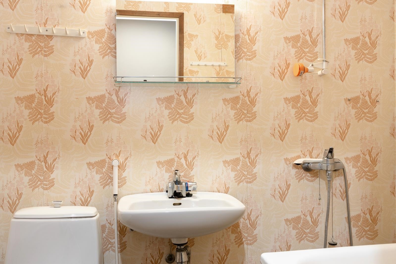 - Kylpyhuone, suihku, amme, peilit, pesukoneliitäntä, kiinteät valaisimet.