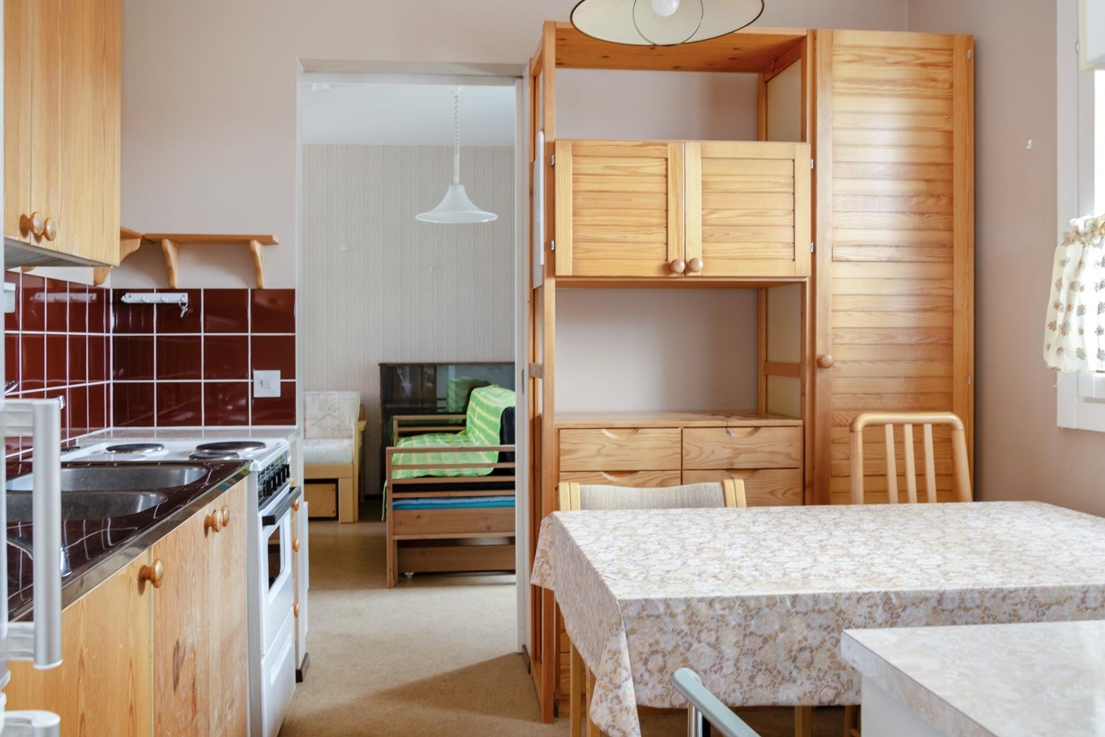 - Jääkaappipakastin, lattialiesi uunilla, kaapistot, irralliset kaapistot, kiinteät valaisimet. Kattovalaisin