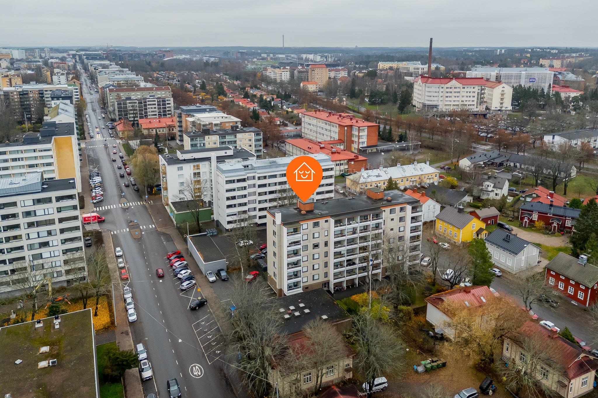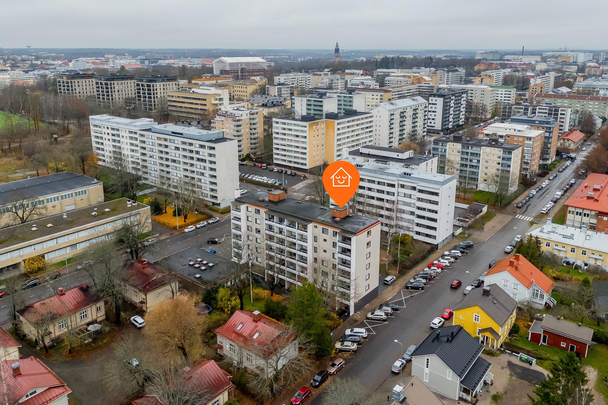 Lyhyellä etäisyydellä myös Aurajokiranta, korkeakoulut, Turun Amk Kupittaan kampus, Kupittaanpuisto ja Citymarket.