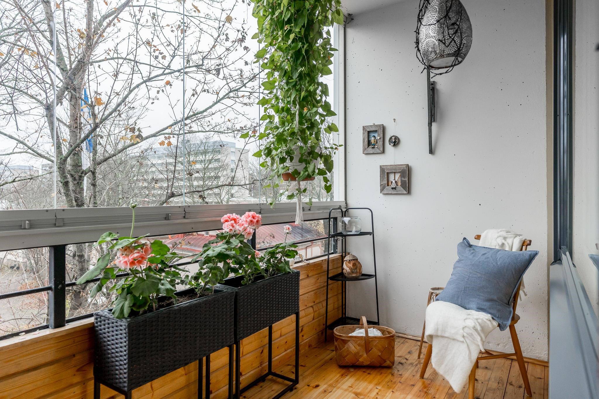 - Parveke kaakkoon, makuuhuone ja keittiö luoteeseen.