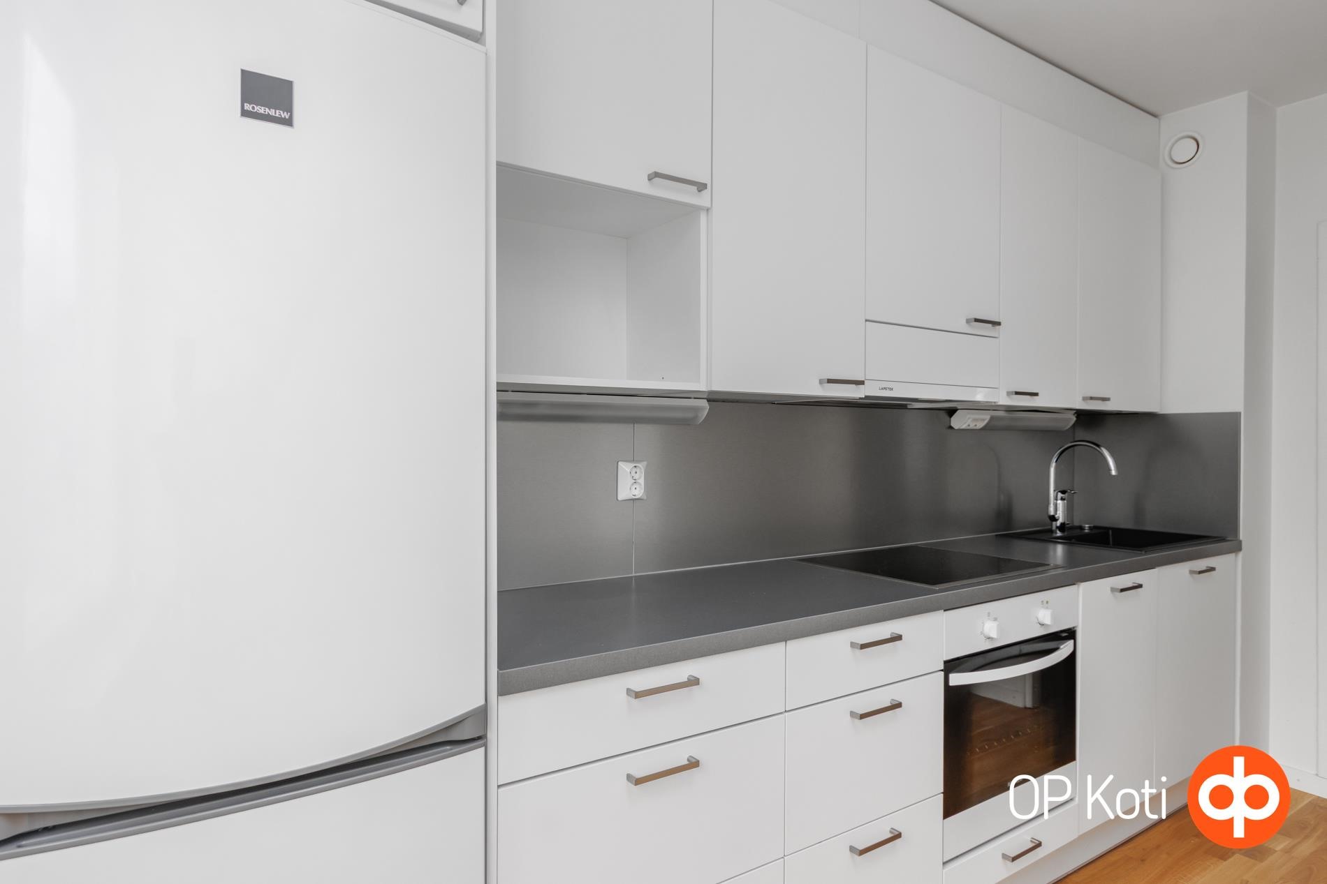 - Jääkaappipakastin, erillisuuni, liesitaso induktiotaso, liesituuletin, astianpesukone, kaapistot, kiinteät valaisimet. Keittiö remontoitu v. 2015