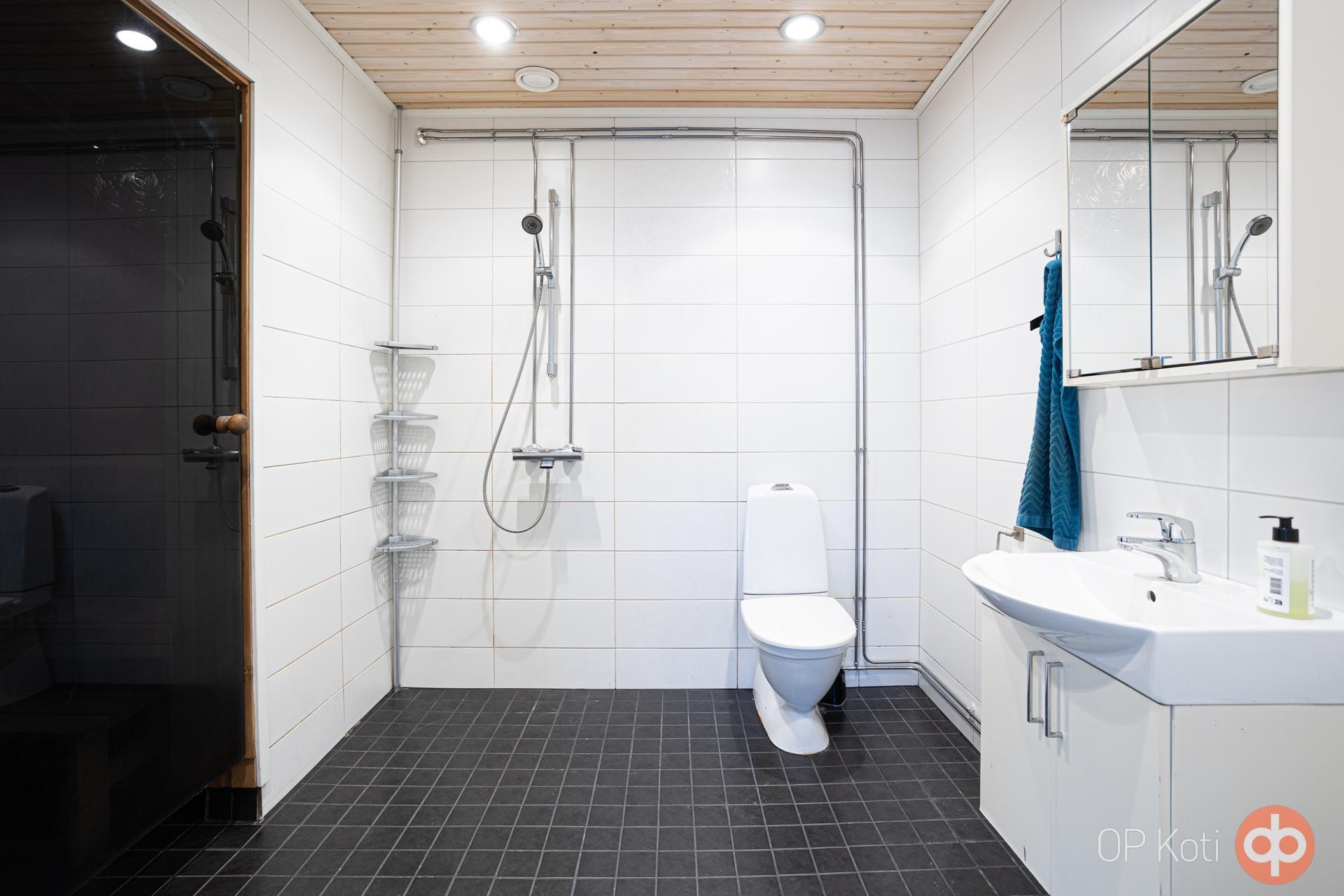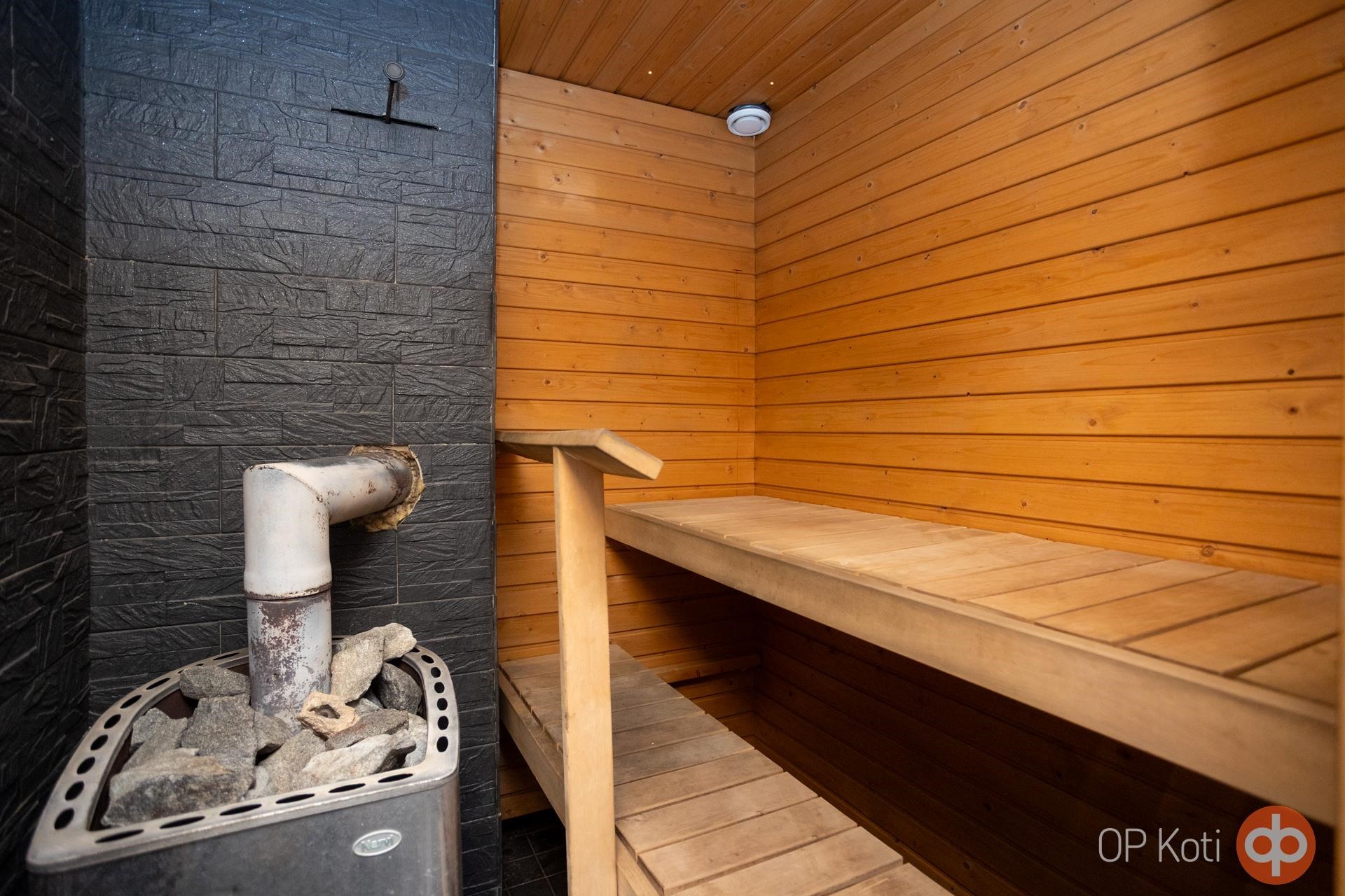 - Sauna, puukiuas, erillinen wc + kylpyhuoneessa wc -istuin, suihku, peilikaappi wc:ssä ja kylpyhuoneessa, allaskaappi, pesukoneliitäntä, lattialämmitys, kiinteät valaisimet.