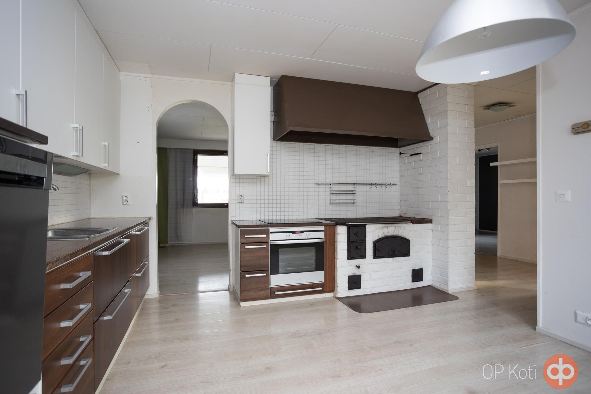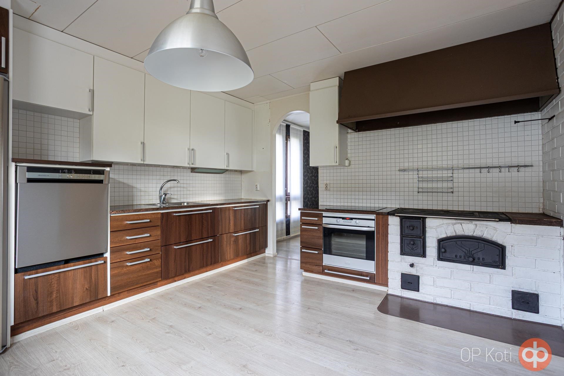 - Jääkaappi, erillisuuni, induktioliesi, liesikupu, leivinuuni, astianpesukone, kaapistot, kiinteät valaisimet.