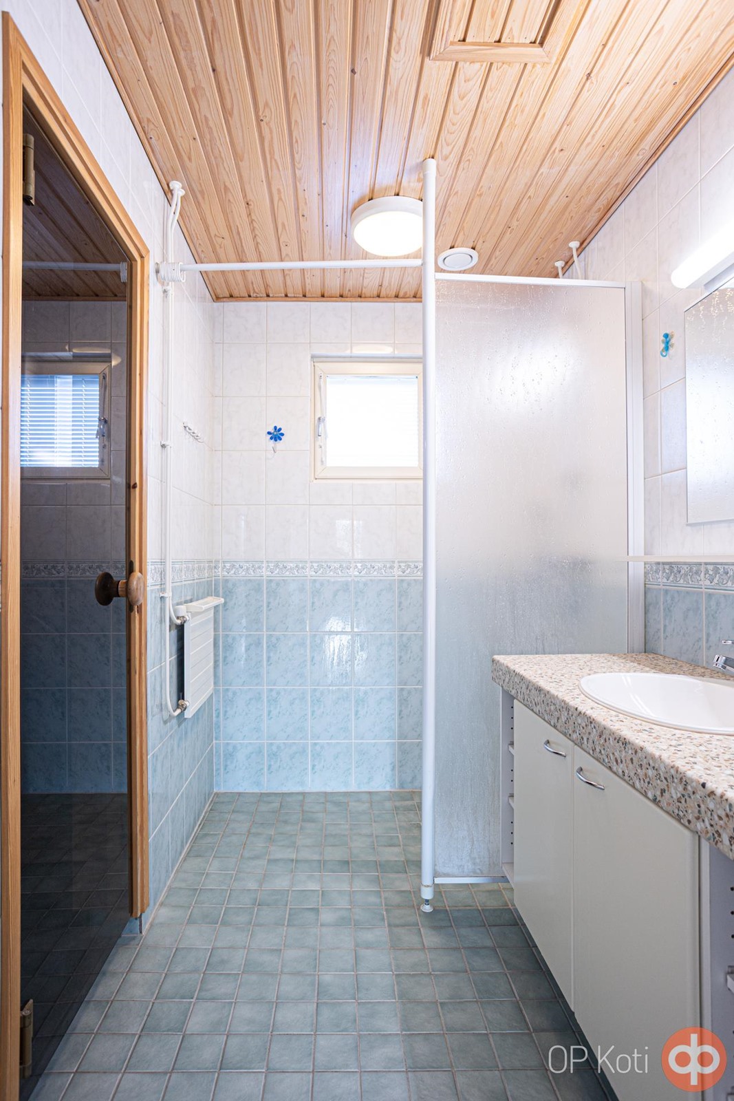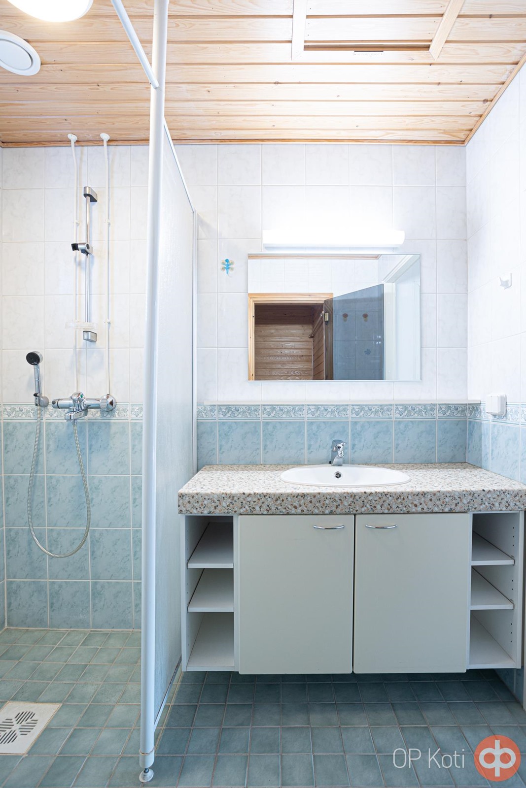- Sauna, sähkökiuas, kylpyhuone,suihkuseinä erillinen wc, peilikaappi, kaapit, allaskaappi, pesukoneliitäntä, lattialämmitys, kiinteät valaisimet.